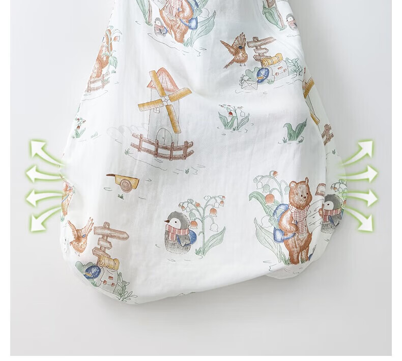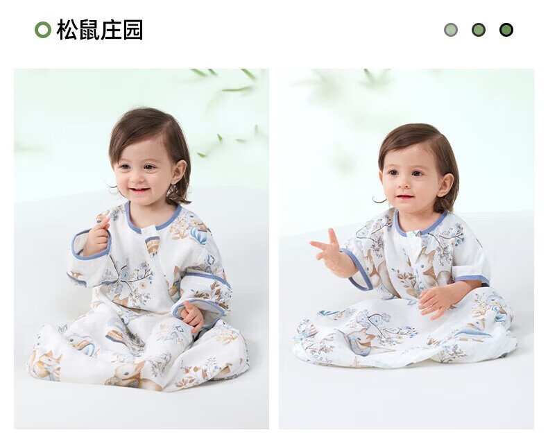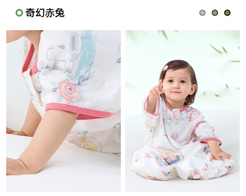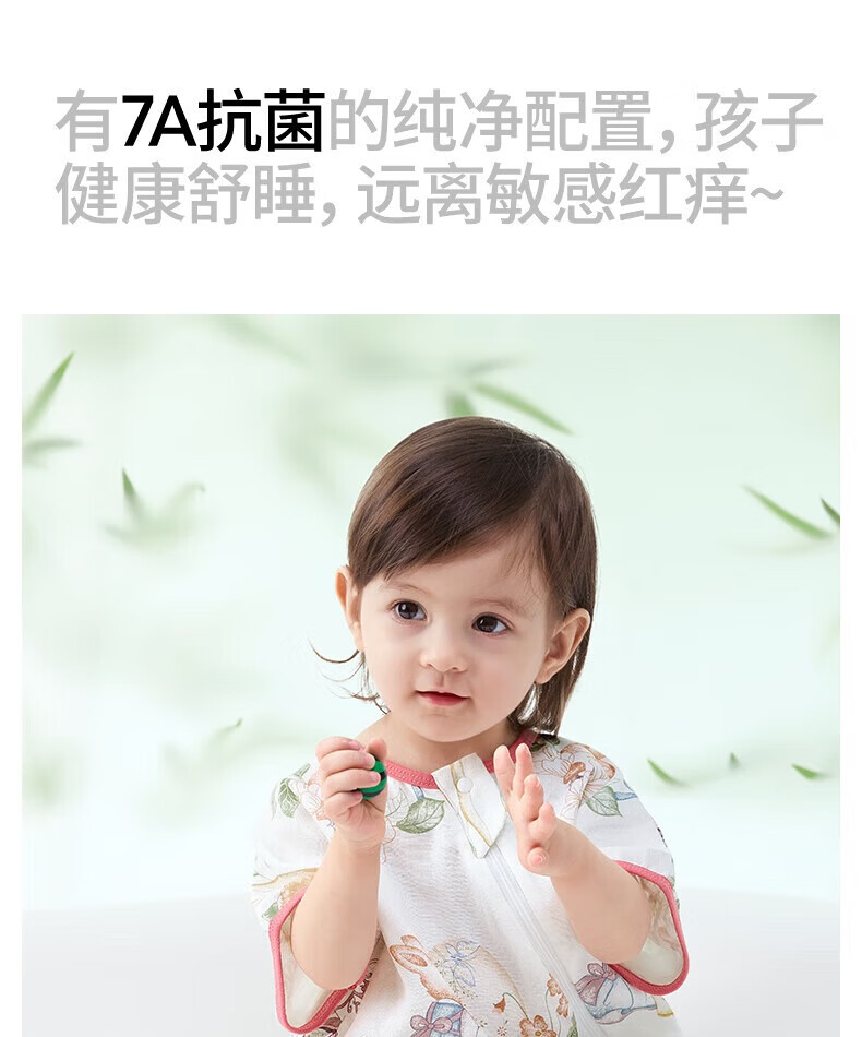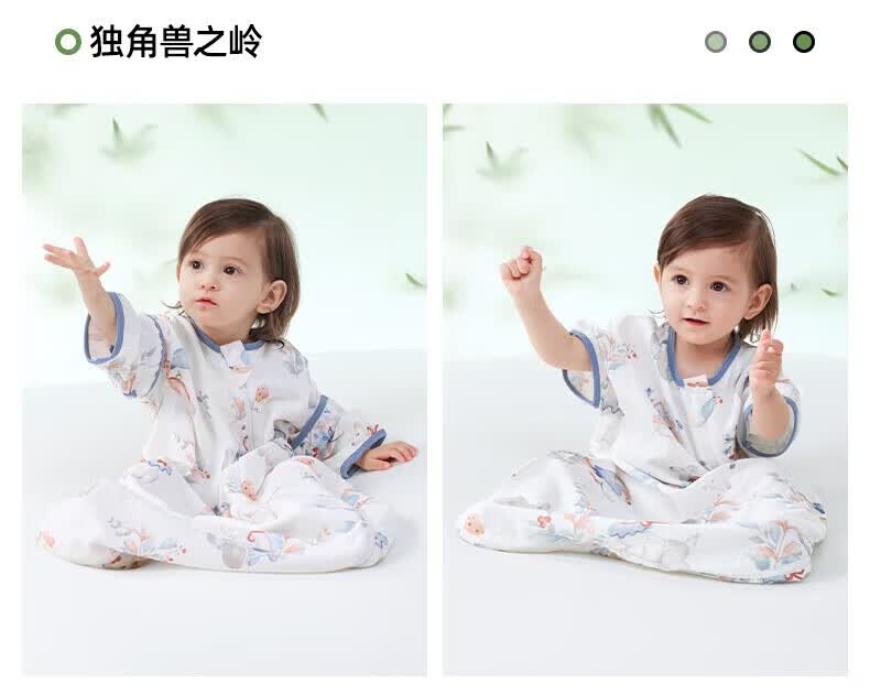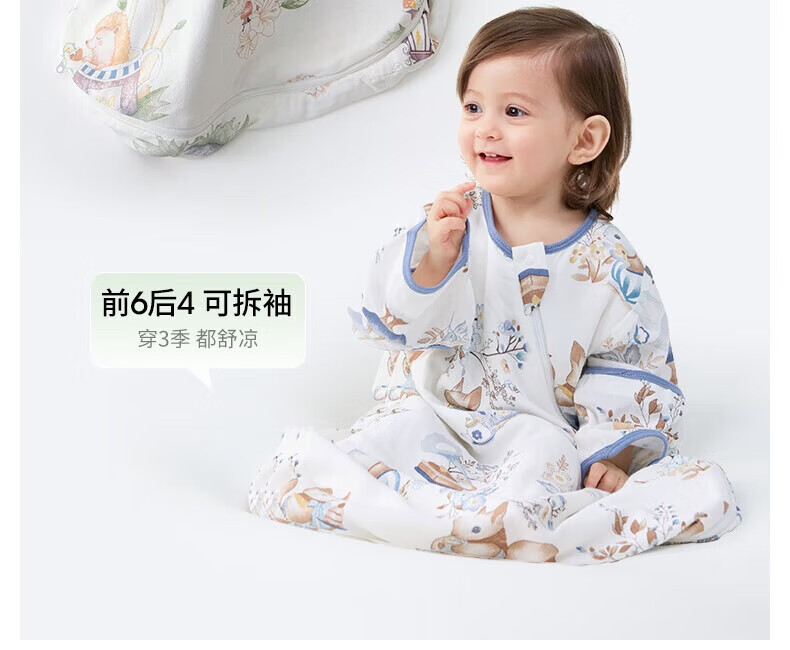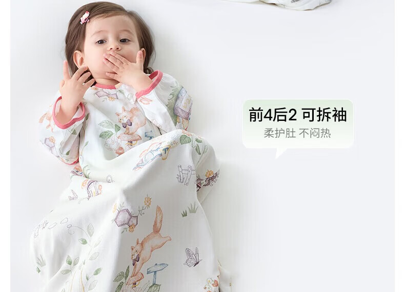 欧孕(OUYUN)【小冰心】婴儿睡袋春秋款竹纤维天丝纱布宝宝防踢被儿童分腿睡袋 菇菇兔-前六后四可拆袖 90/52【推荐身高80-95CM】