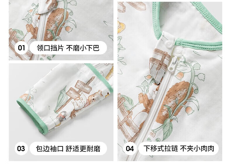 贝肽斯睡袋婴儿夏天空调房宝宝睡袋新生儿童一体防踢被幼儿防惊跳连体衣 【夏季】(前4后2 26℃+)灵鹿 M码 建议身高65-85cm