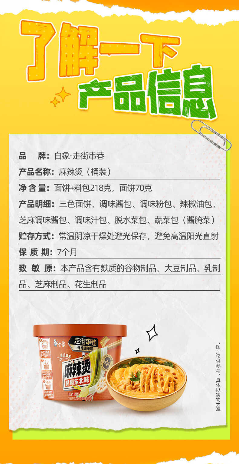 白象 麻辣烫 走街串巷非油炸免煮东北黏糊麻辣烫218g单桶 速食泡面