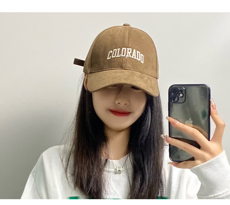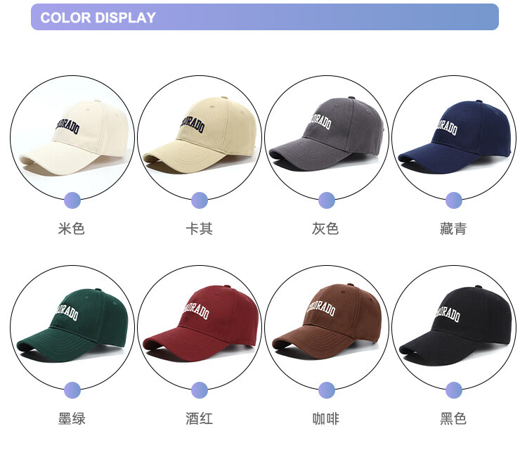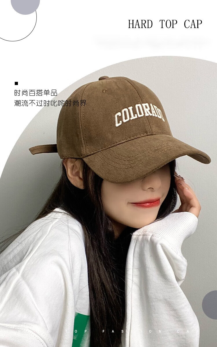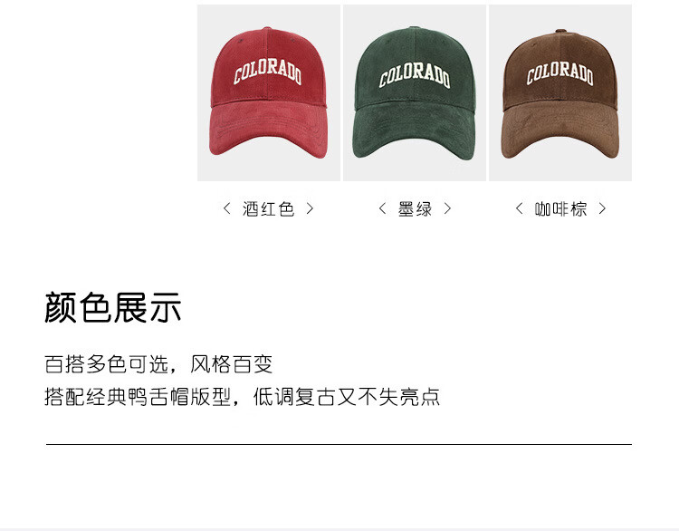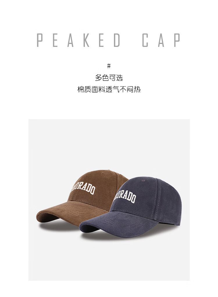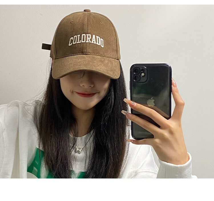 FOURDATRY女士帽子大头围棒球帽女四季通用百搭刺绣显脸小鸭舌帽子男 磨毛-黑色 均码 -可调节