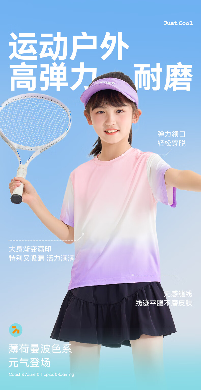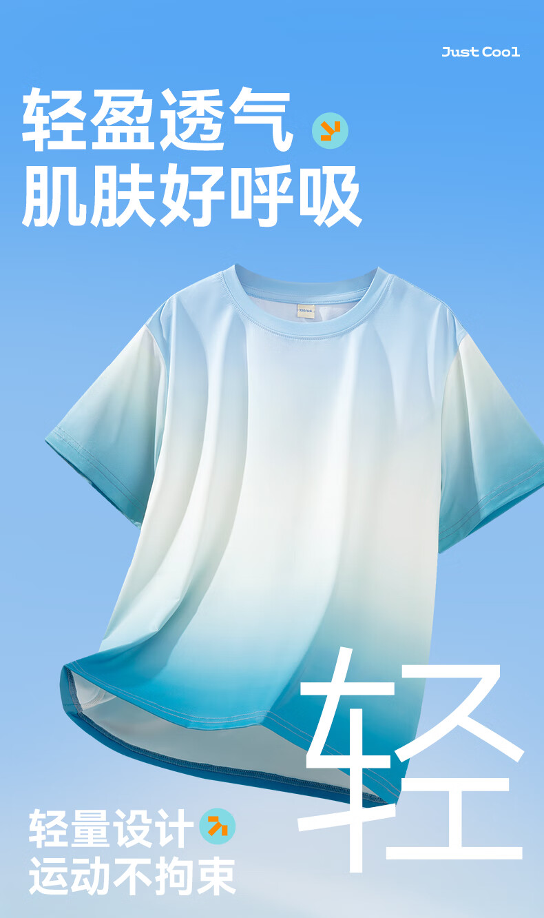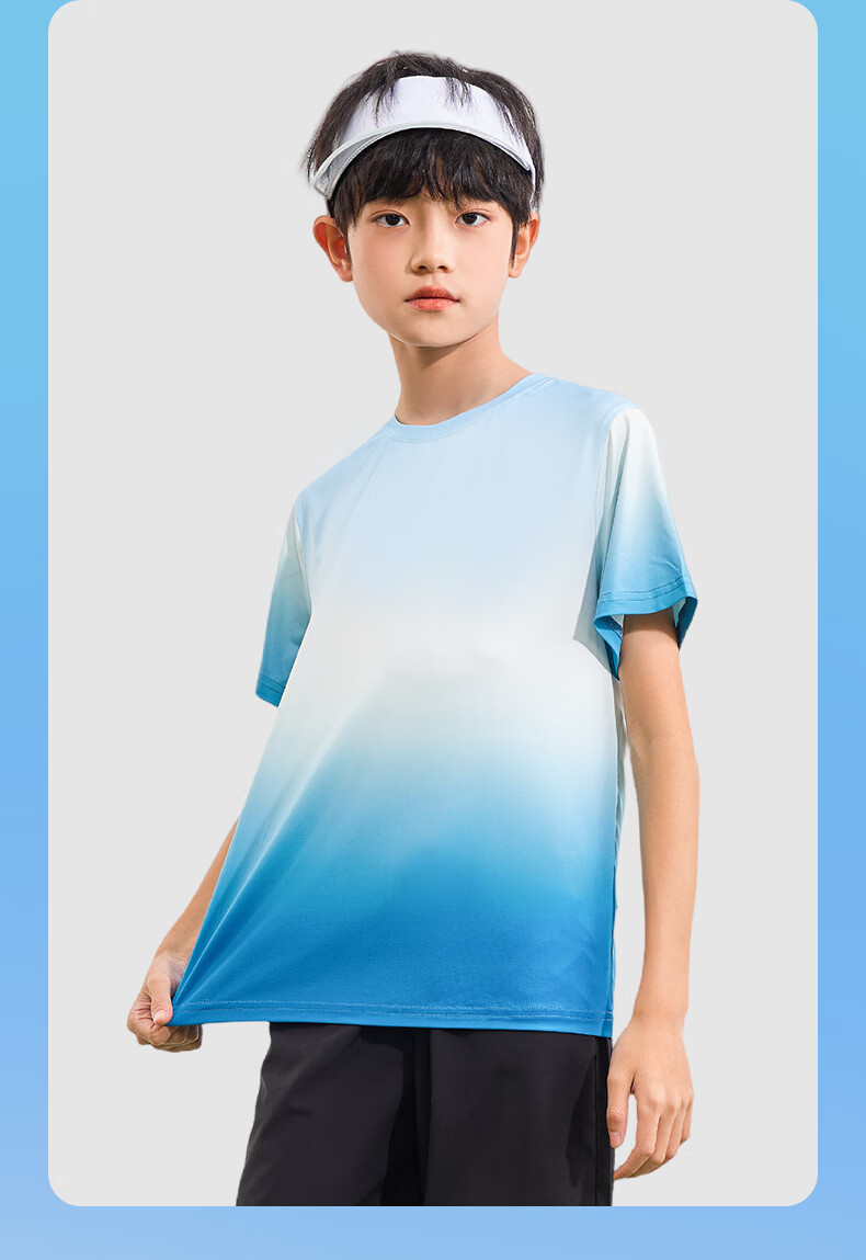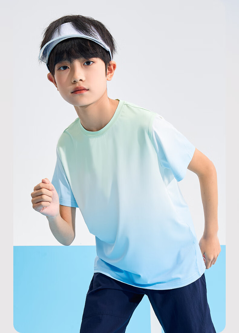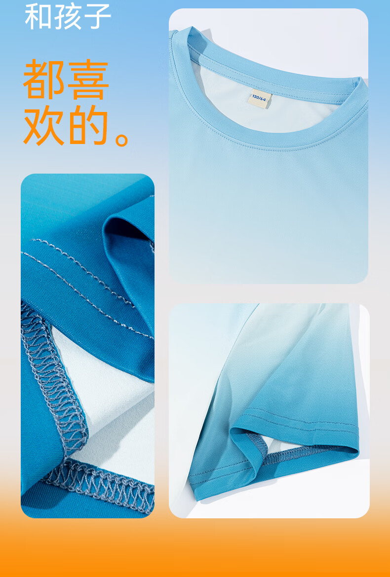 回力童装儿童运动套装2026新款男童凉感短袖T恤夏季女童UPF50+上衣潮 蓝/H白回力小K-黑/H白回力小K 150