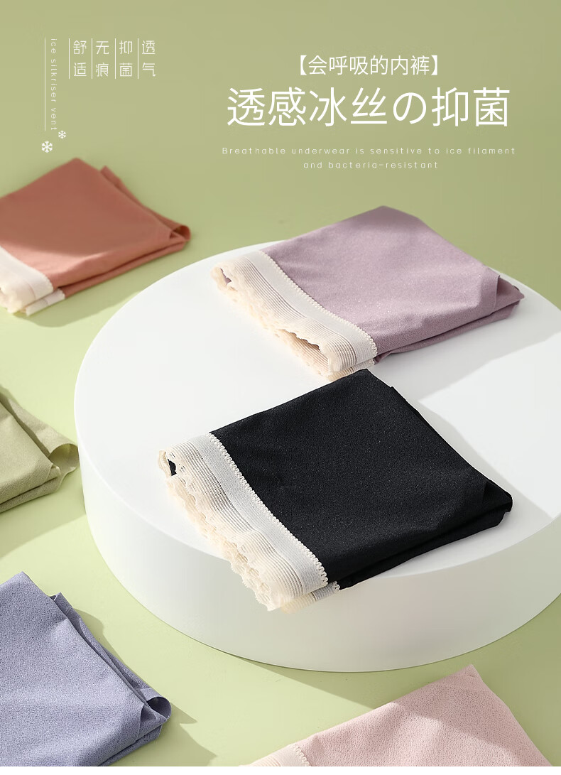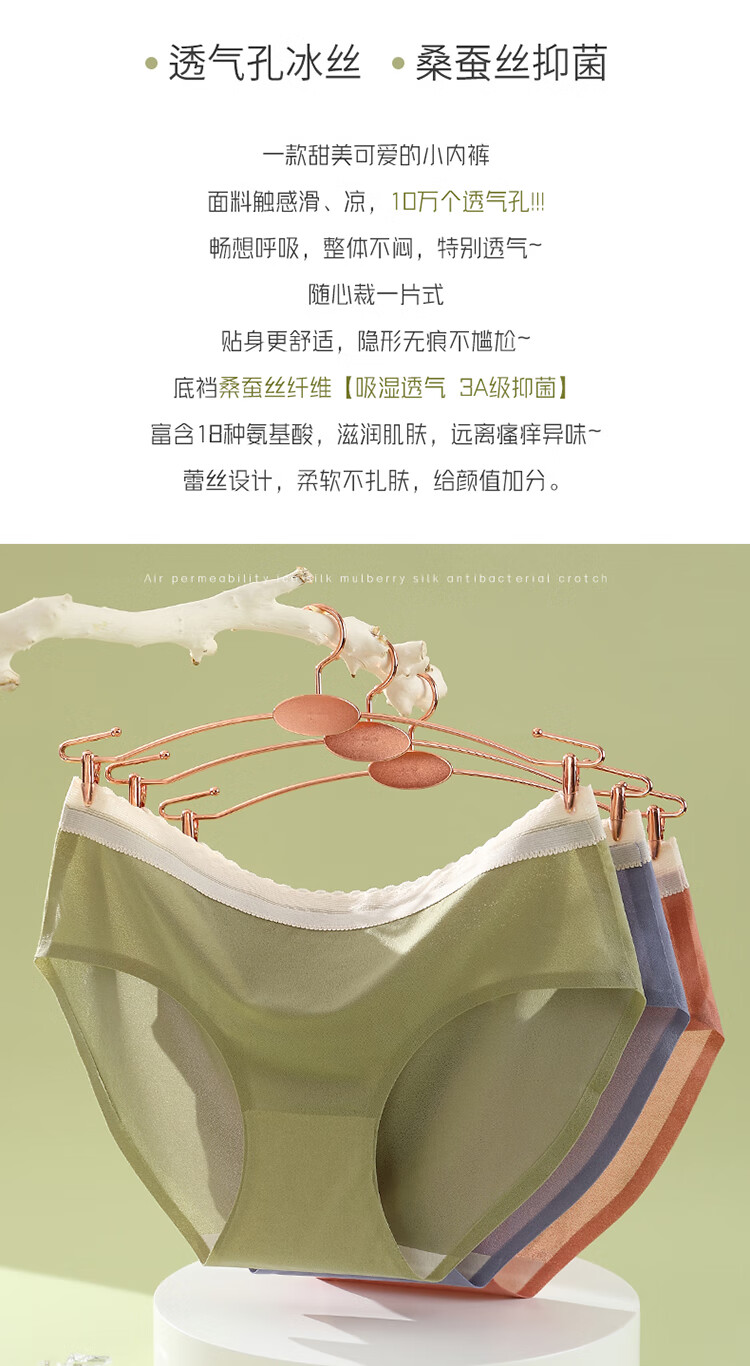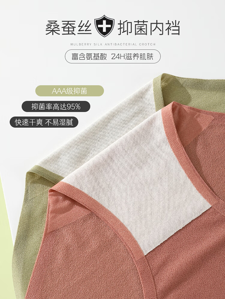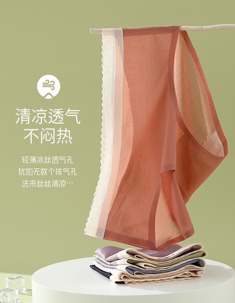 英莱仕女士内裤冰凉丝滑无痕薄款夏天桑蚕丝裆透气中低腰少女短裤三角裤 随机颜色4条装 L码(85-100斤)