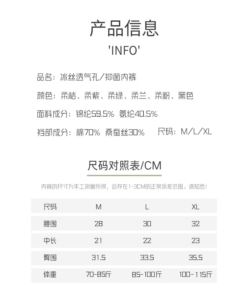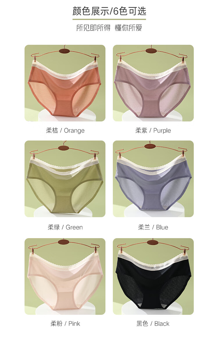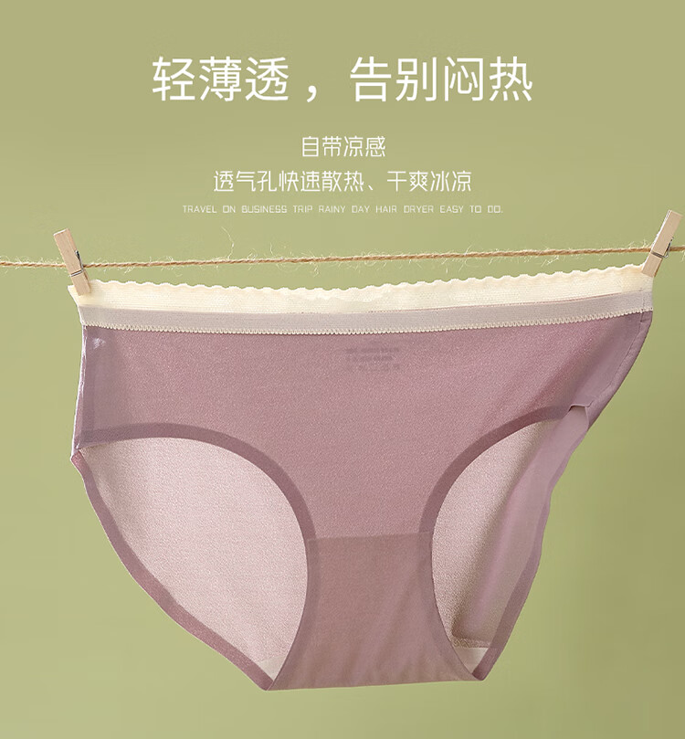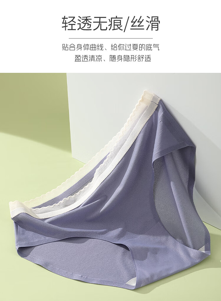 英莱仕女士内裤冰凉丝滑无痕薄款夏天桑蚕丝裆透气中低腰少女短裤三角裤 随机颜色4条装 L码(85-100斤)