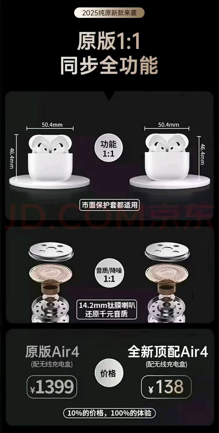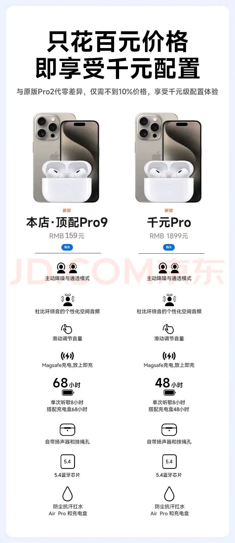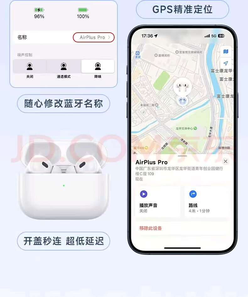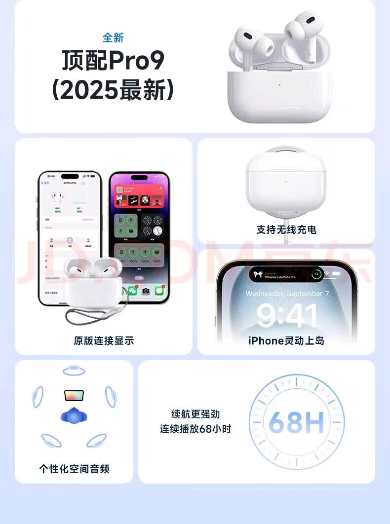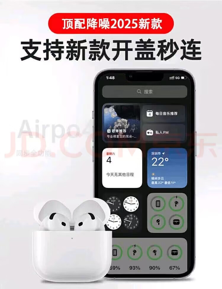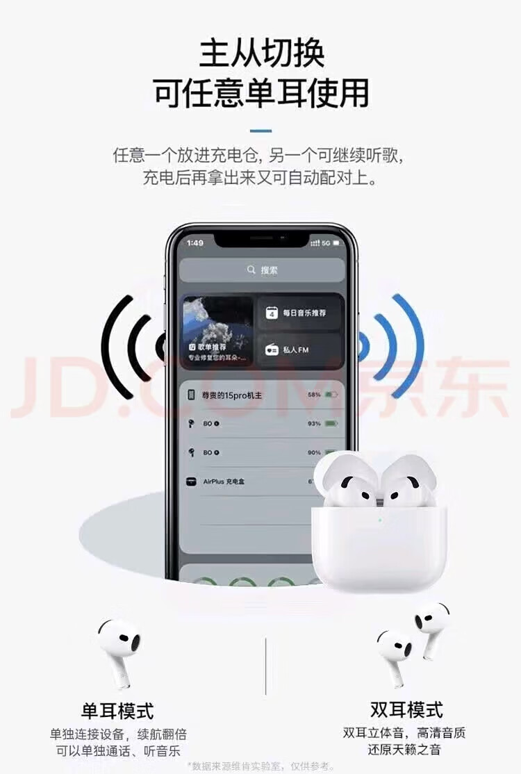 萨勒芬妮 蓝牙耳机真无线华强北AirPods3超长续航运动适用苹果安卓手机双耳降噪iphone17不入耳式排行前十 超长续航-HIFi音效