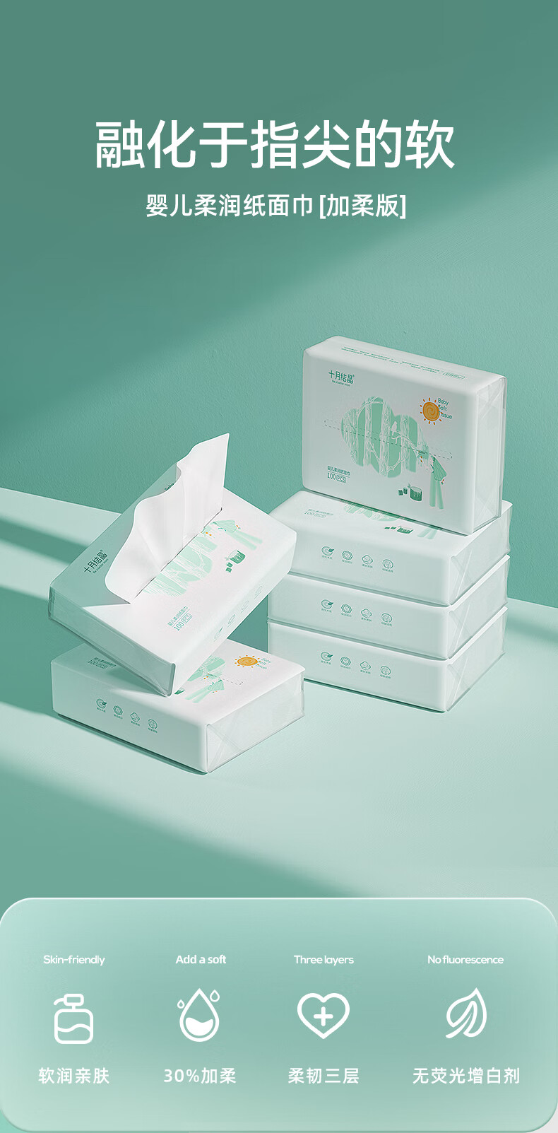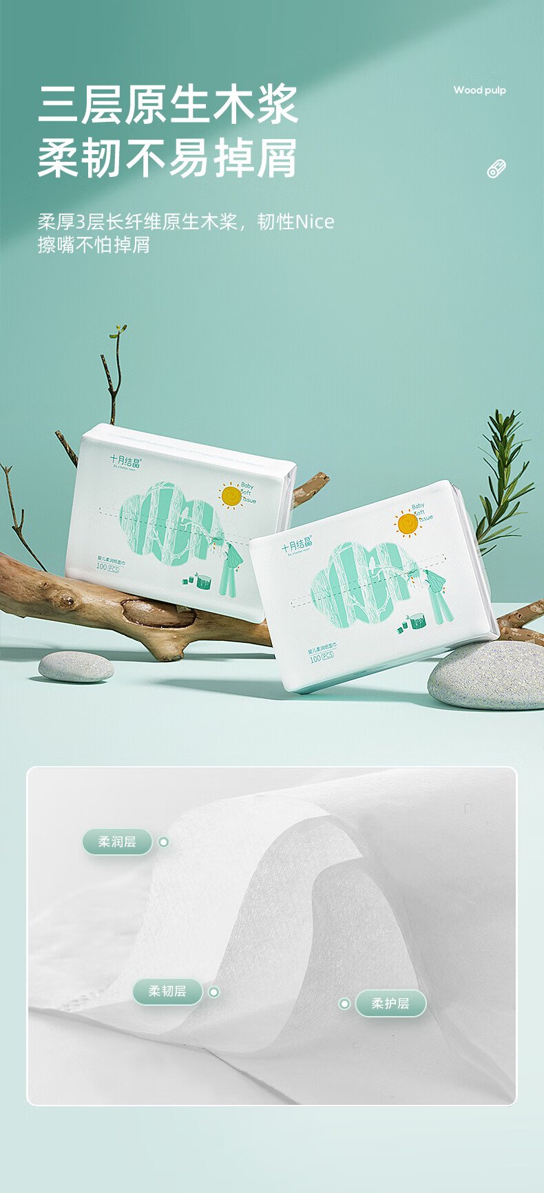 十月结晶婴儿专用软抽纸面巾手口专用乳霜纸100抽*30包