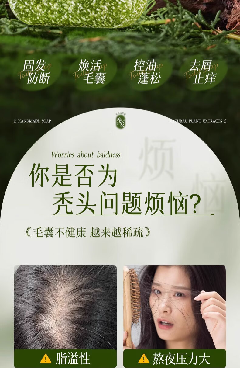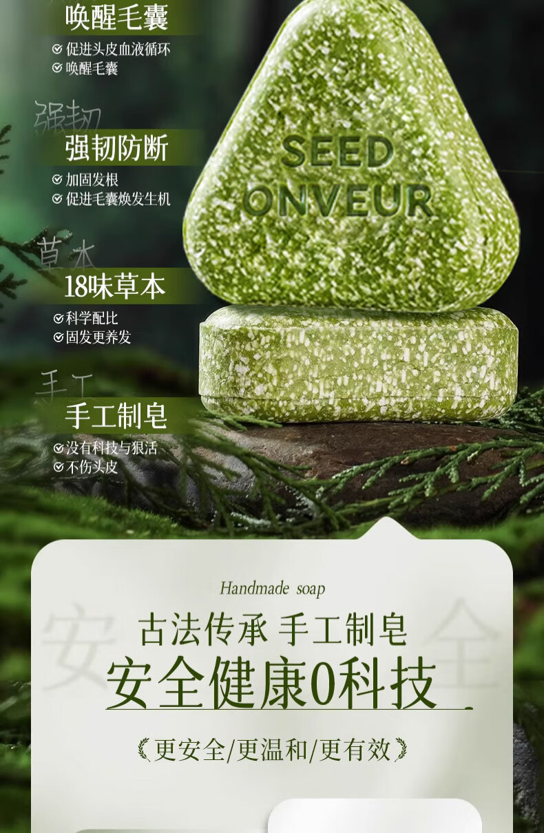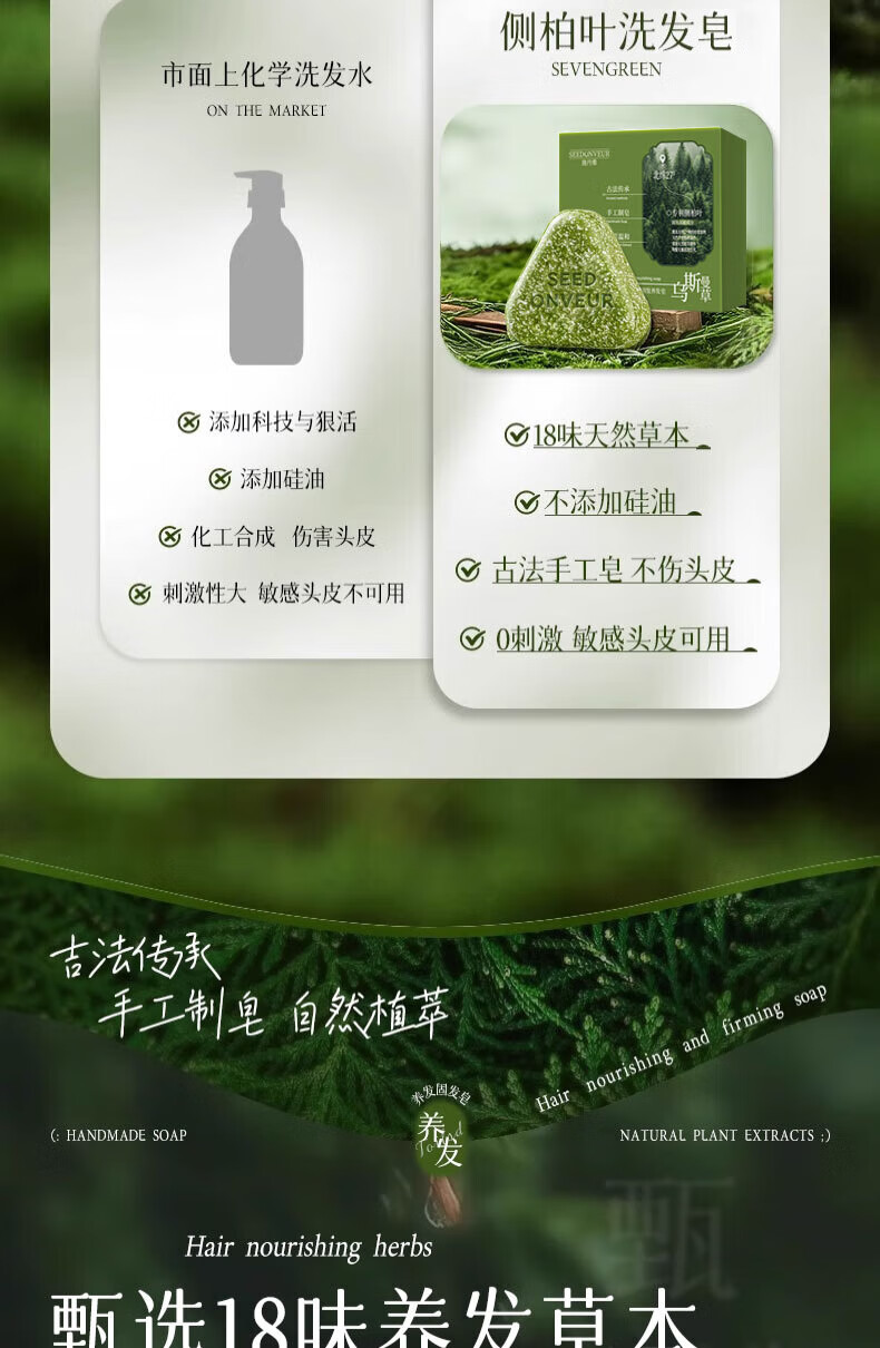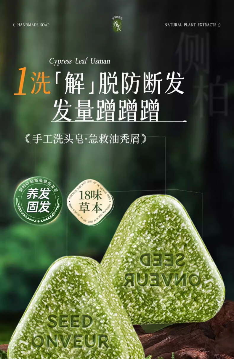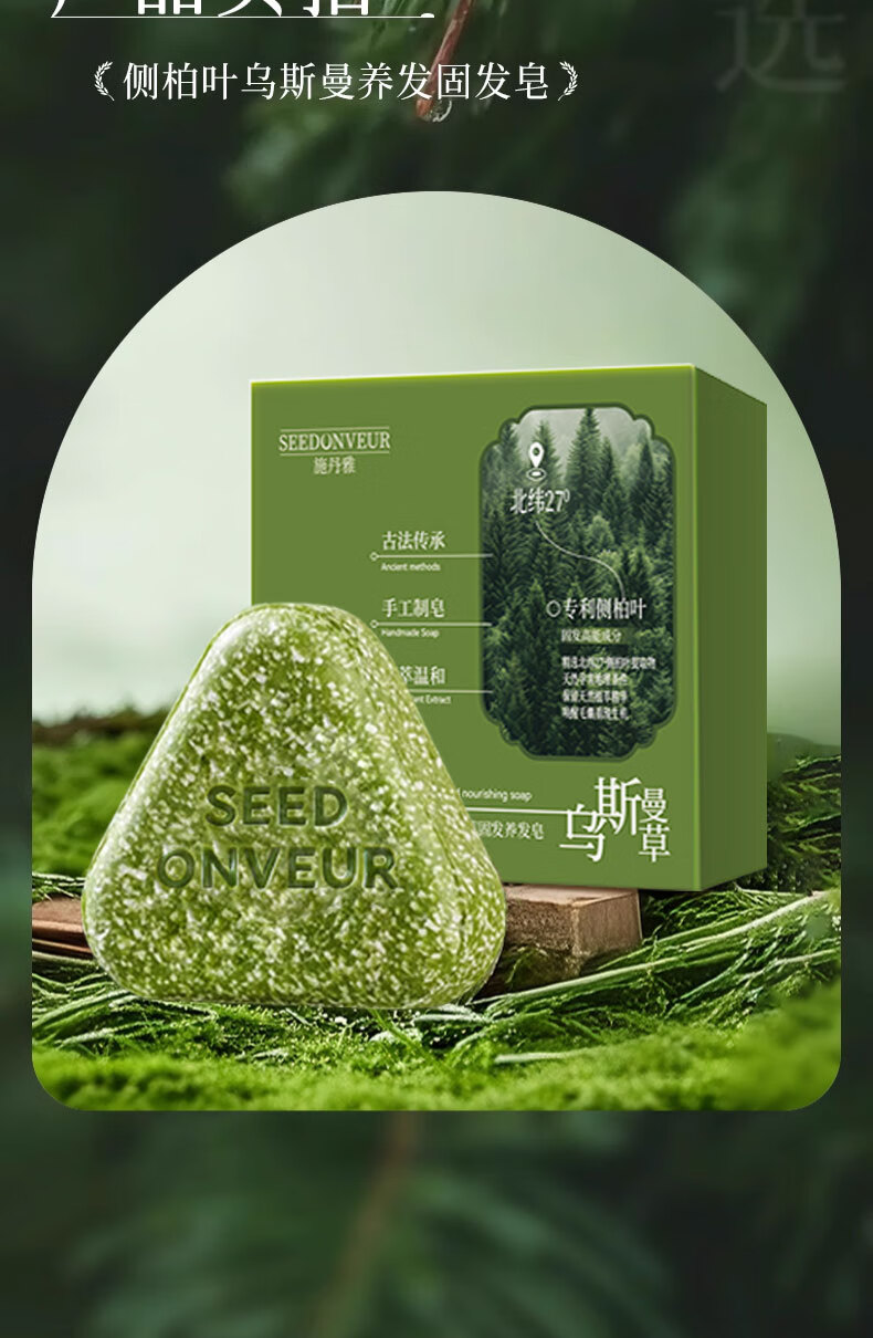 SEEDONVEUR 施丹雅洗发皂侧柏叶乌斯曼洗发水手工皂中药防断脱固养发天然植萃2盒装