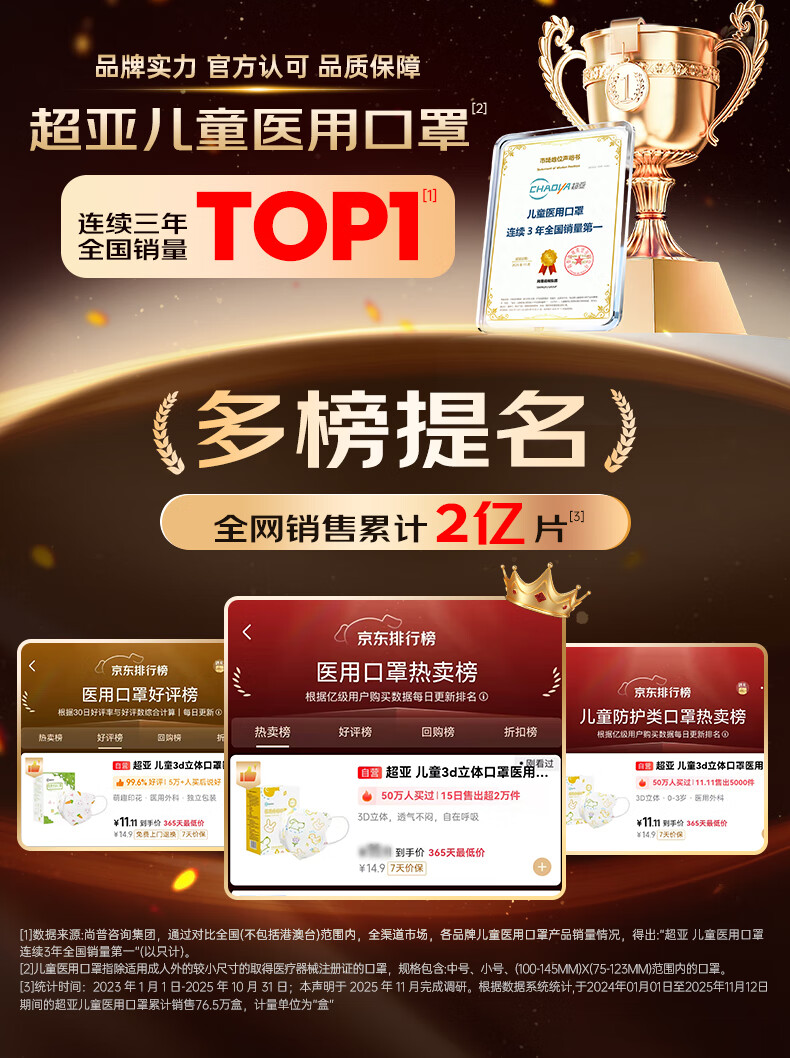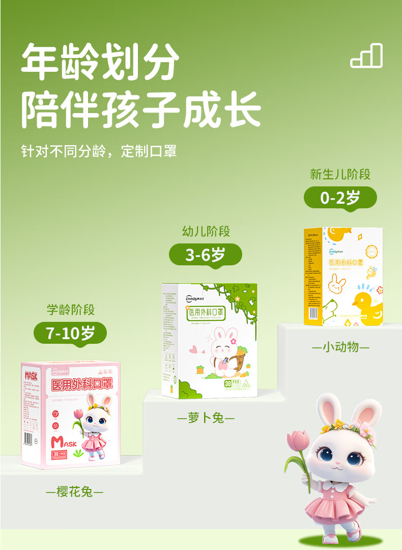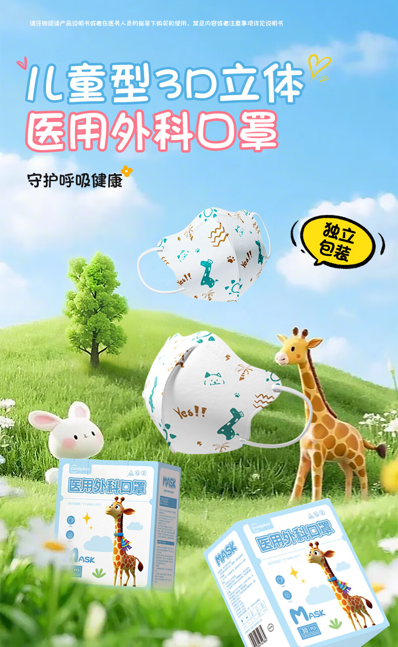 超亚儿童3d立体口罩医用外科儿童口罩6-12岁透气秋冬防花粉过敏60只