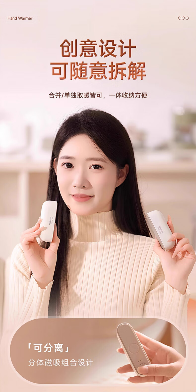 AILUKI日本暖手宝2025新款充电式磁吸分体二合一女士手握暖宝宝自热防爆 团购 磁吸式暖手宝