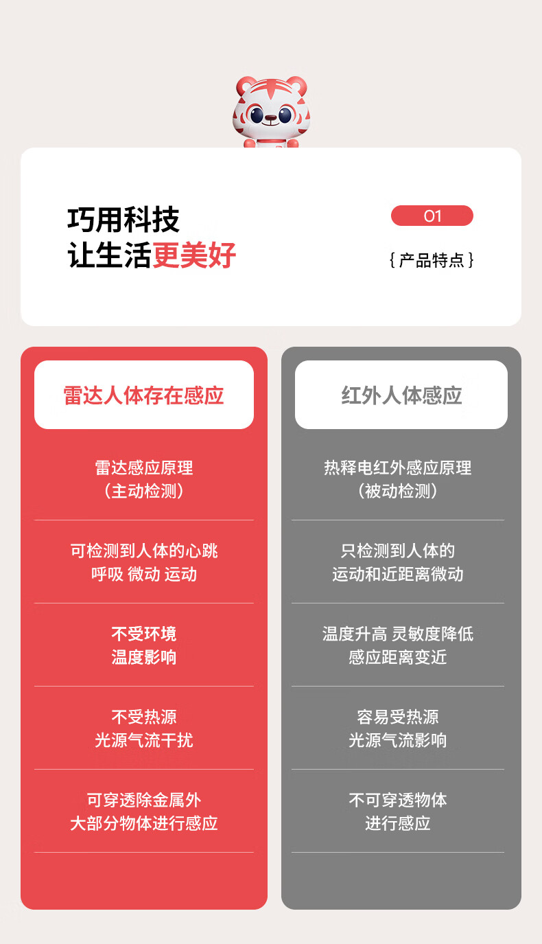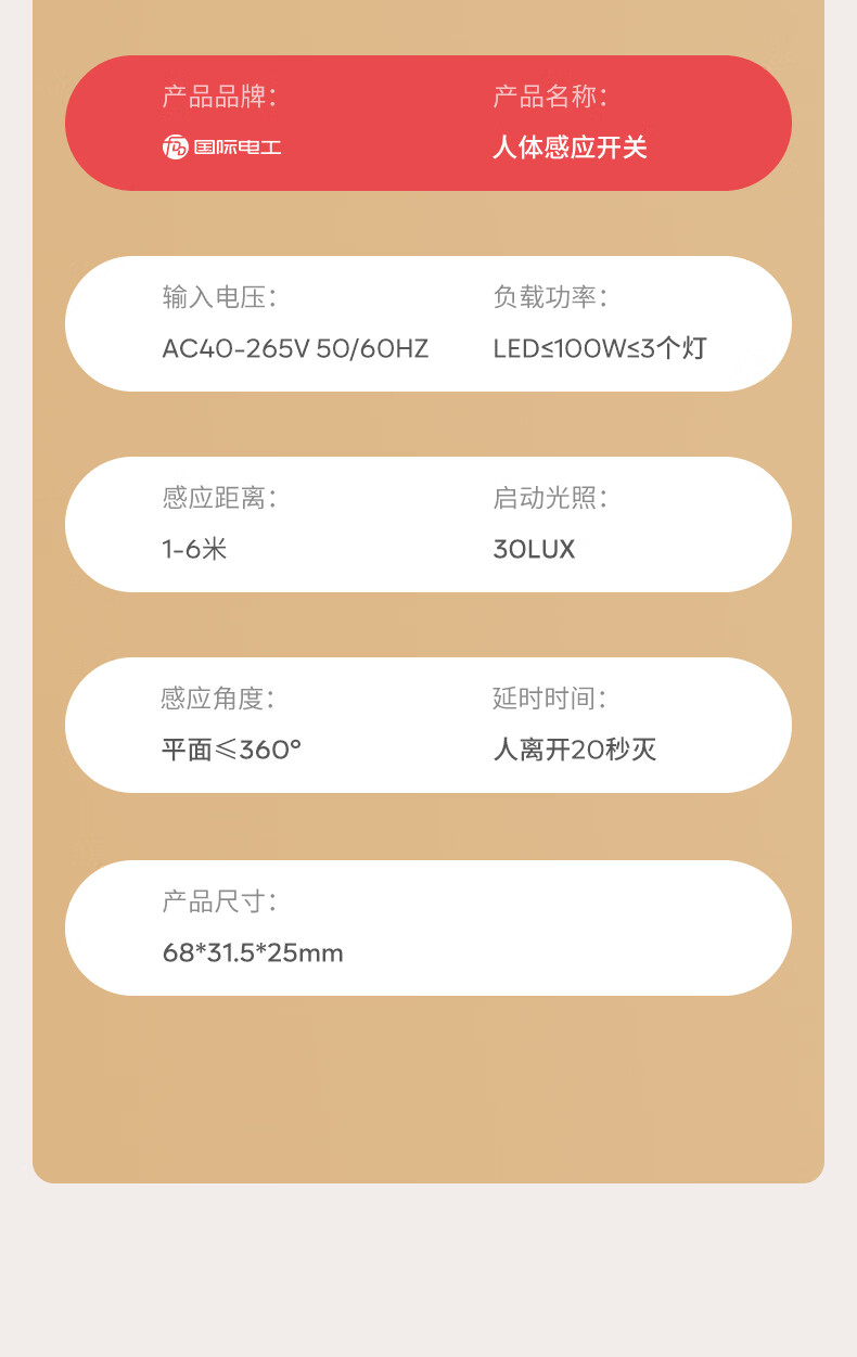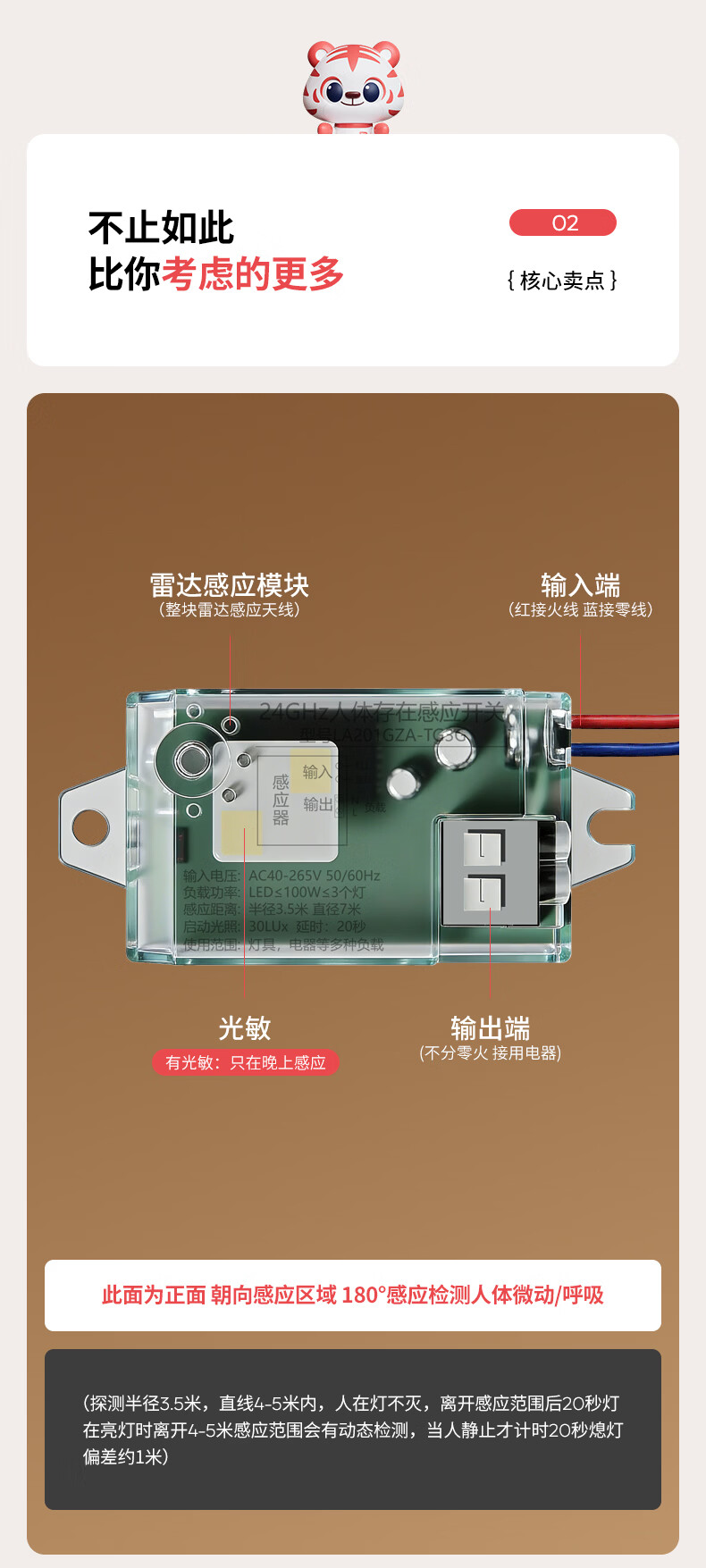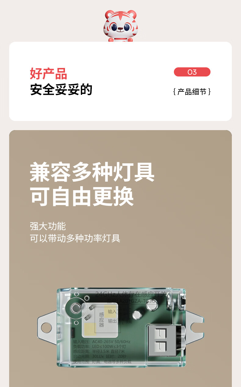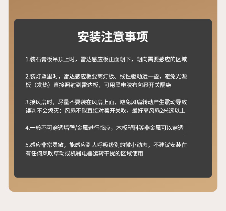 国际电工人体存在感应开关LED灯具吸顶内置延时开关灯楼道雷达控制器模块 人体存在感应模块【1只装】