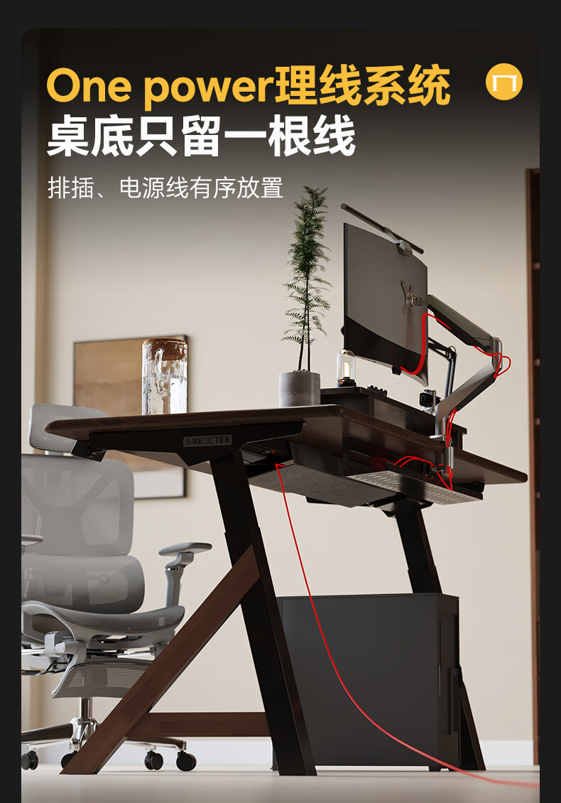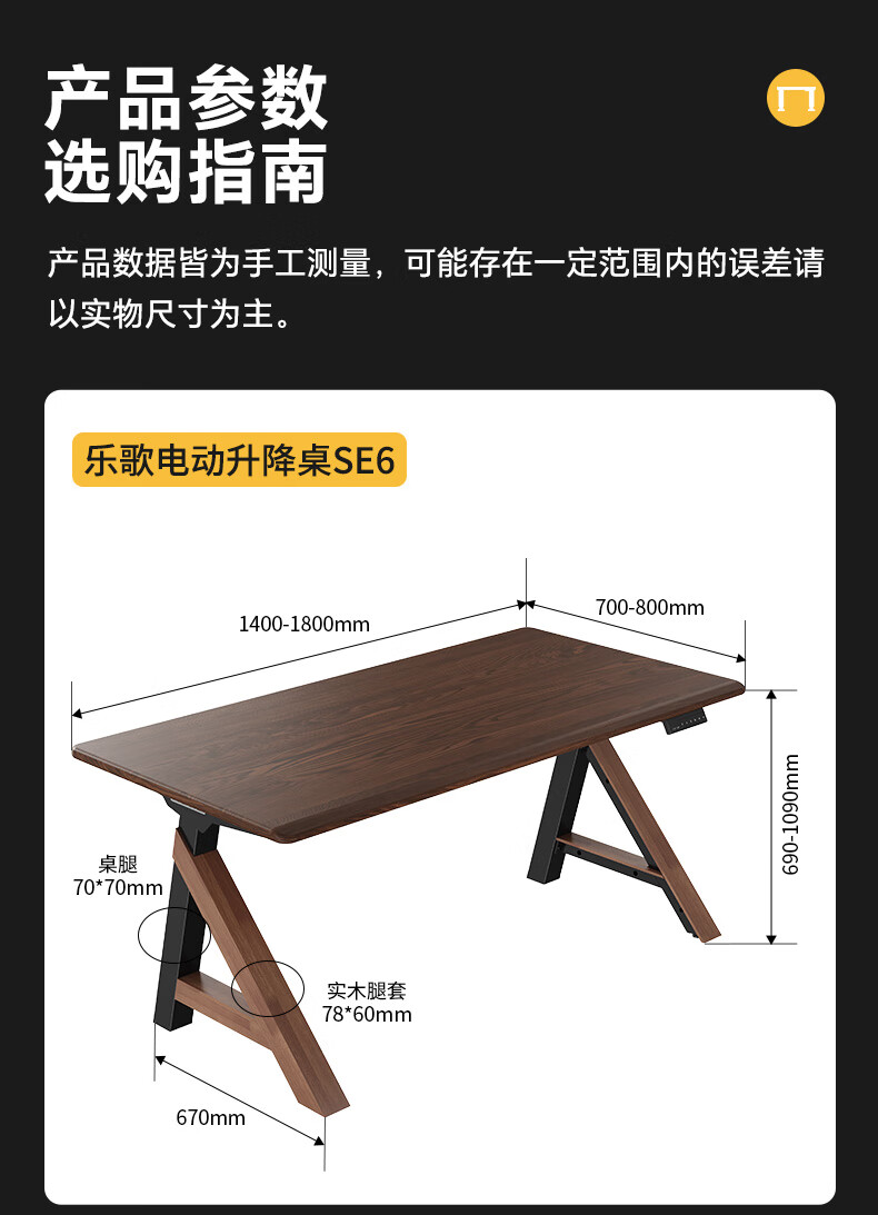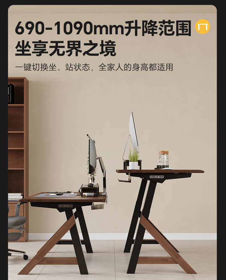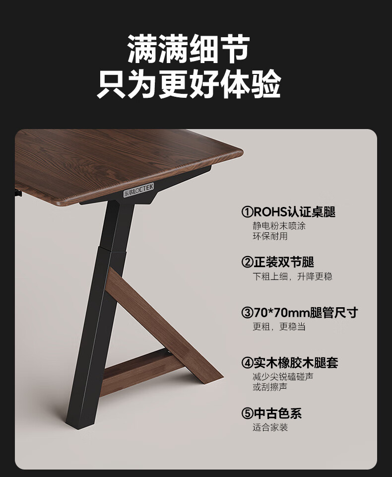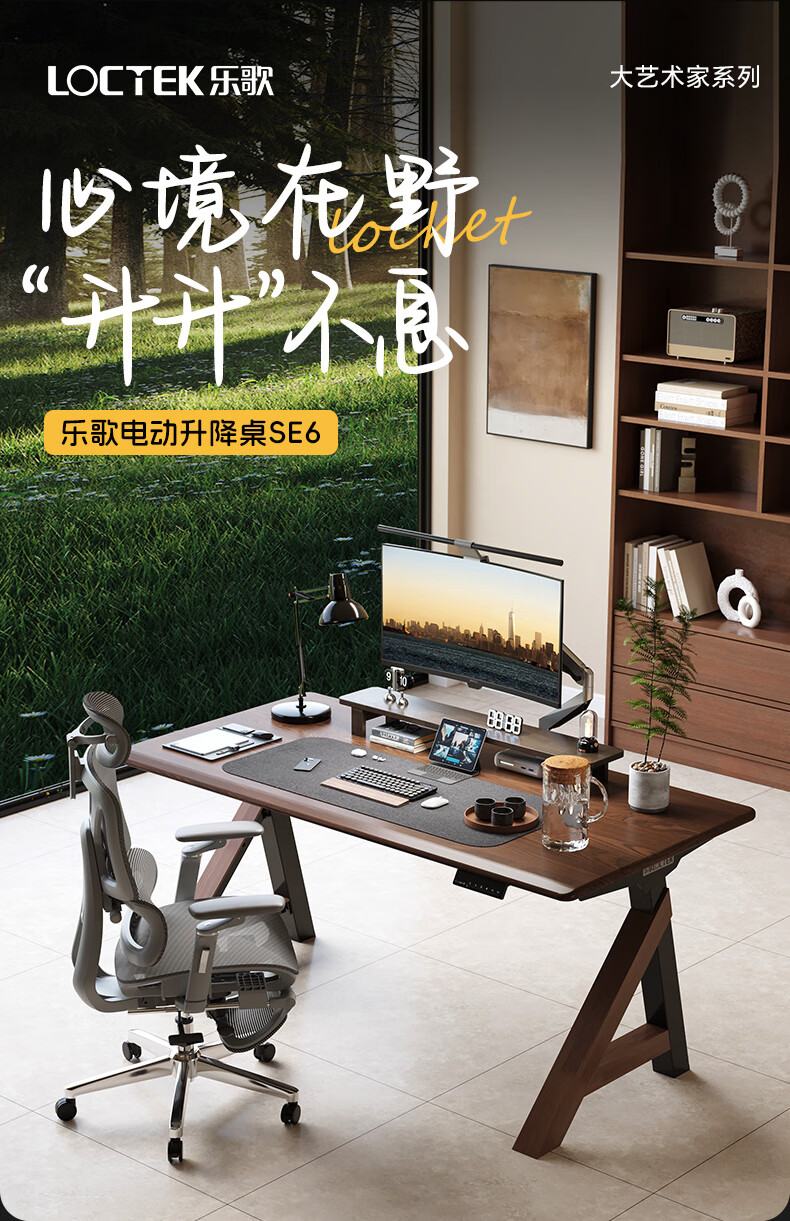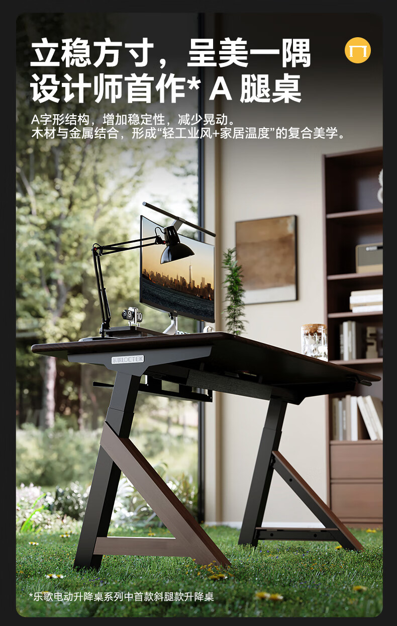 乐歌(Loctek)新品电动升降桌电脑桌双人桌子实木书房书法餐桌设计师款A腿桌 实木板|SE6+白蜡木桌板 桌板尺寸:1.8*0.8m