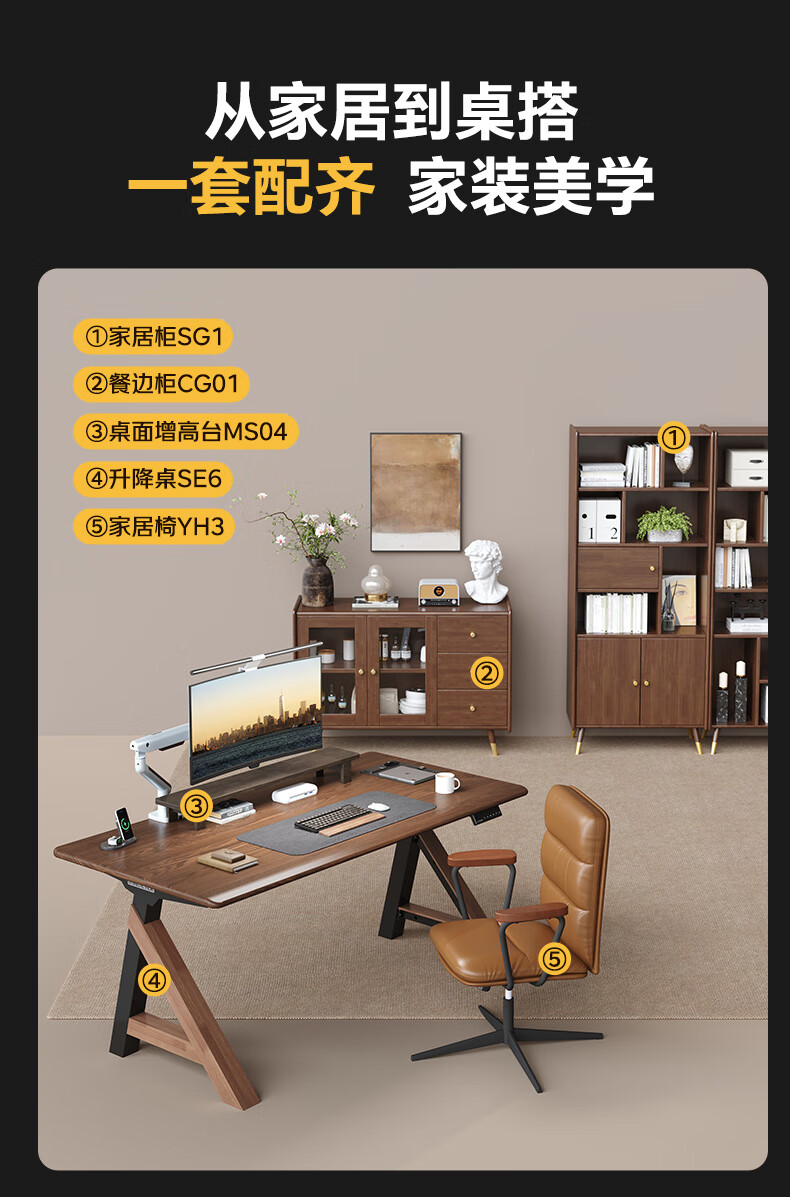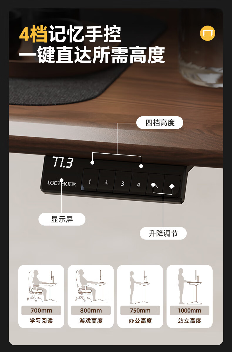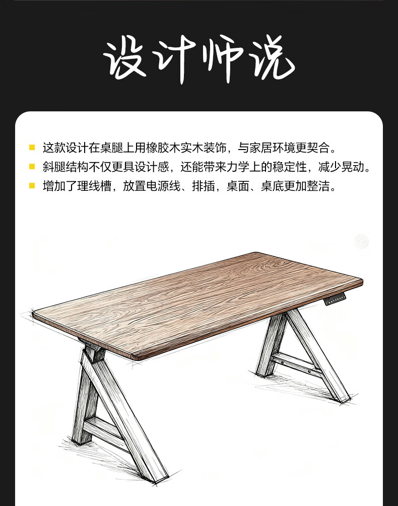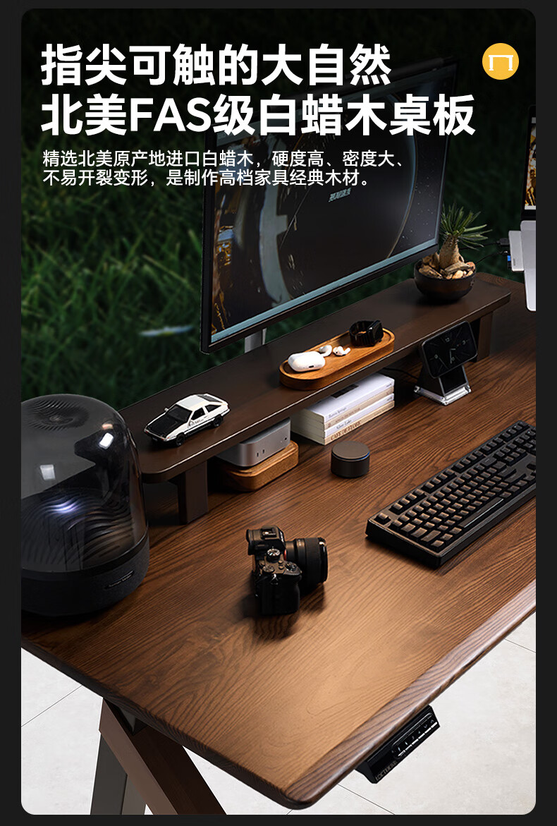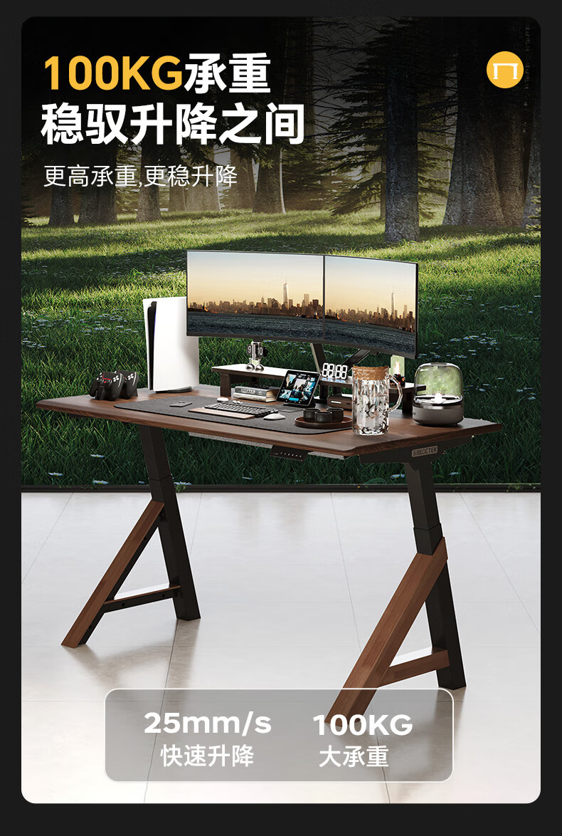 乐歌(Loctek)新品电动升降桌电脑桌双人桌子实木书房书法餐桌设计师款A腿桌 实木板|SE6+白蜡木桌板 桌板尺寸:1.8*0.8m