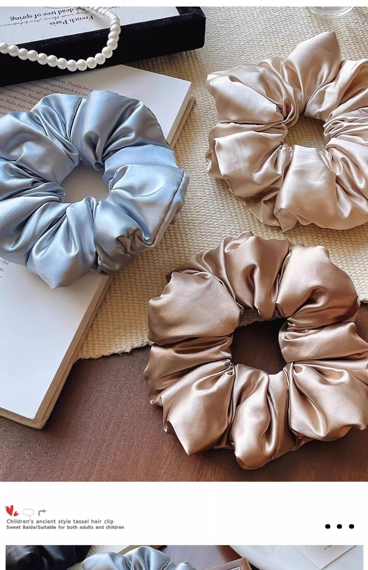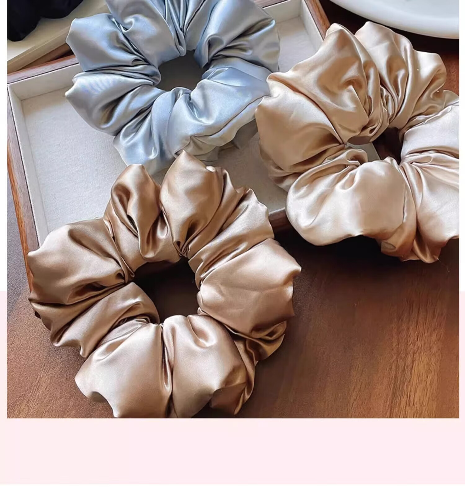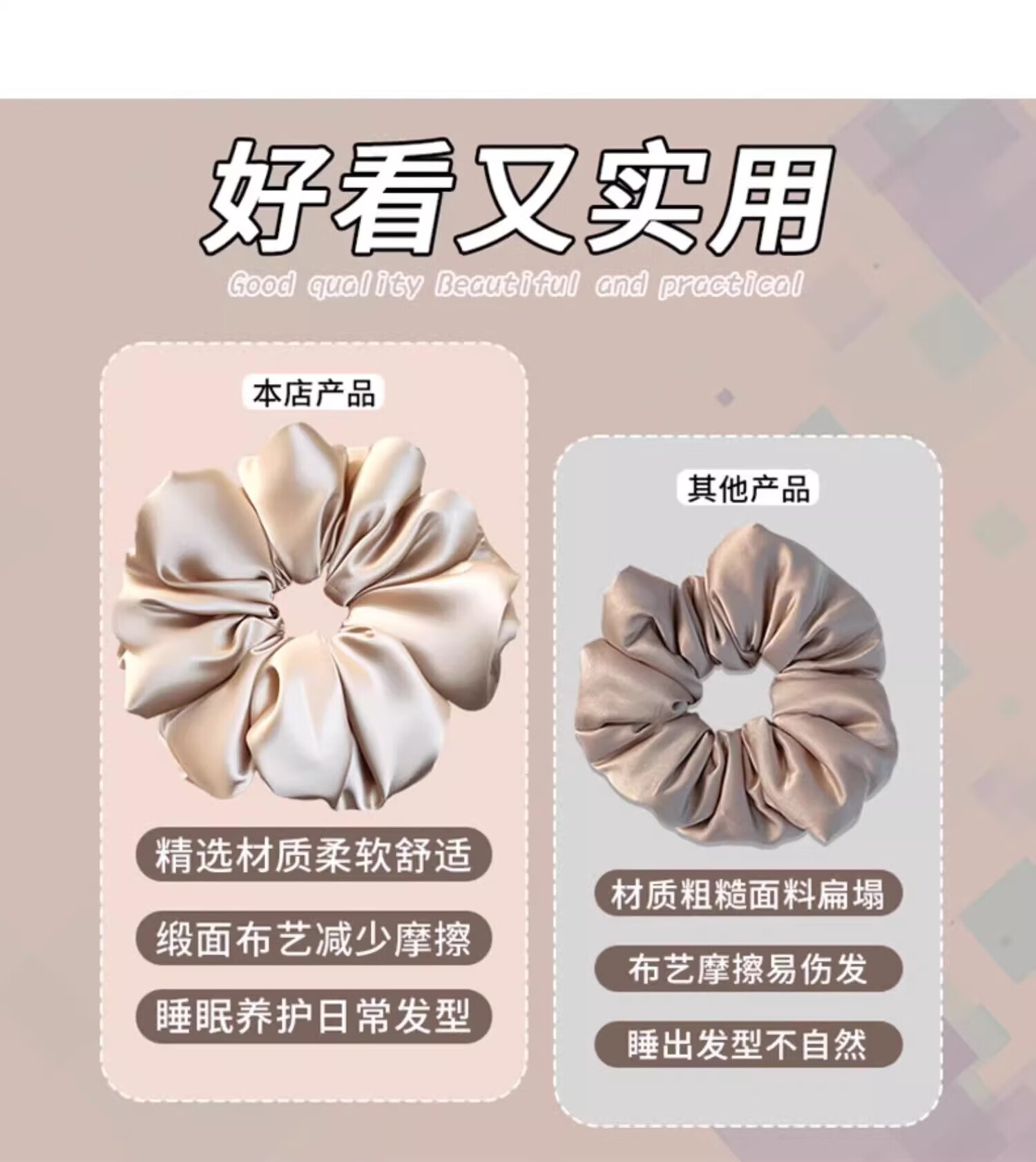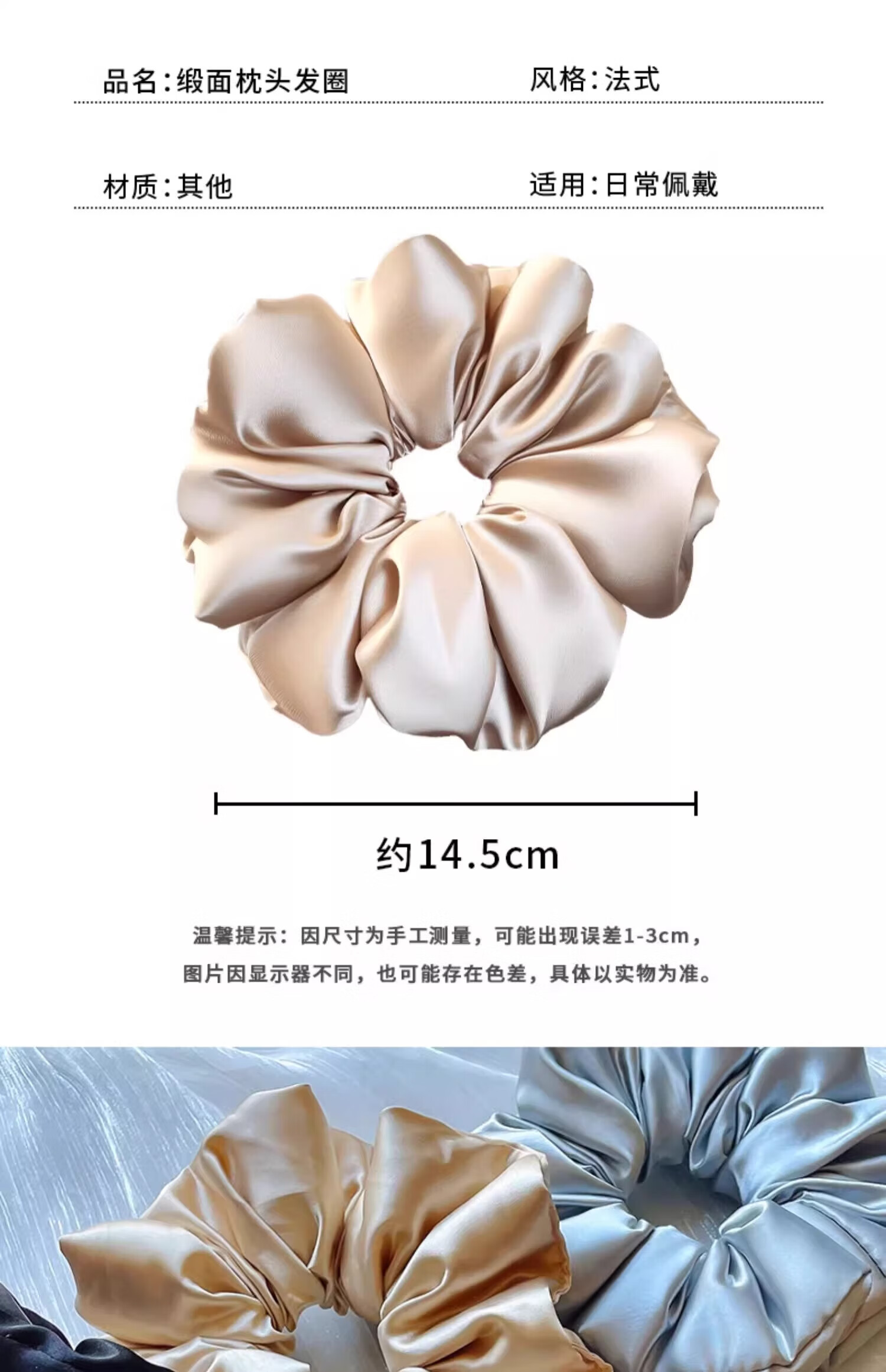 朋意韩式缎面高级感纯色大肠发圈高弹力丸子头头绳无痕护发头饰发饰品 大肠发圈-带内胆-黑色-1个