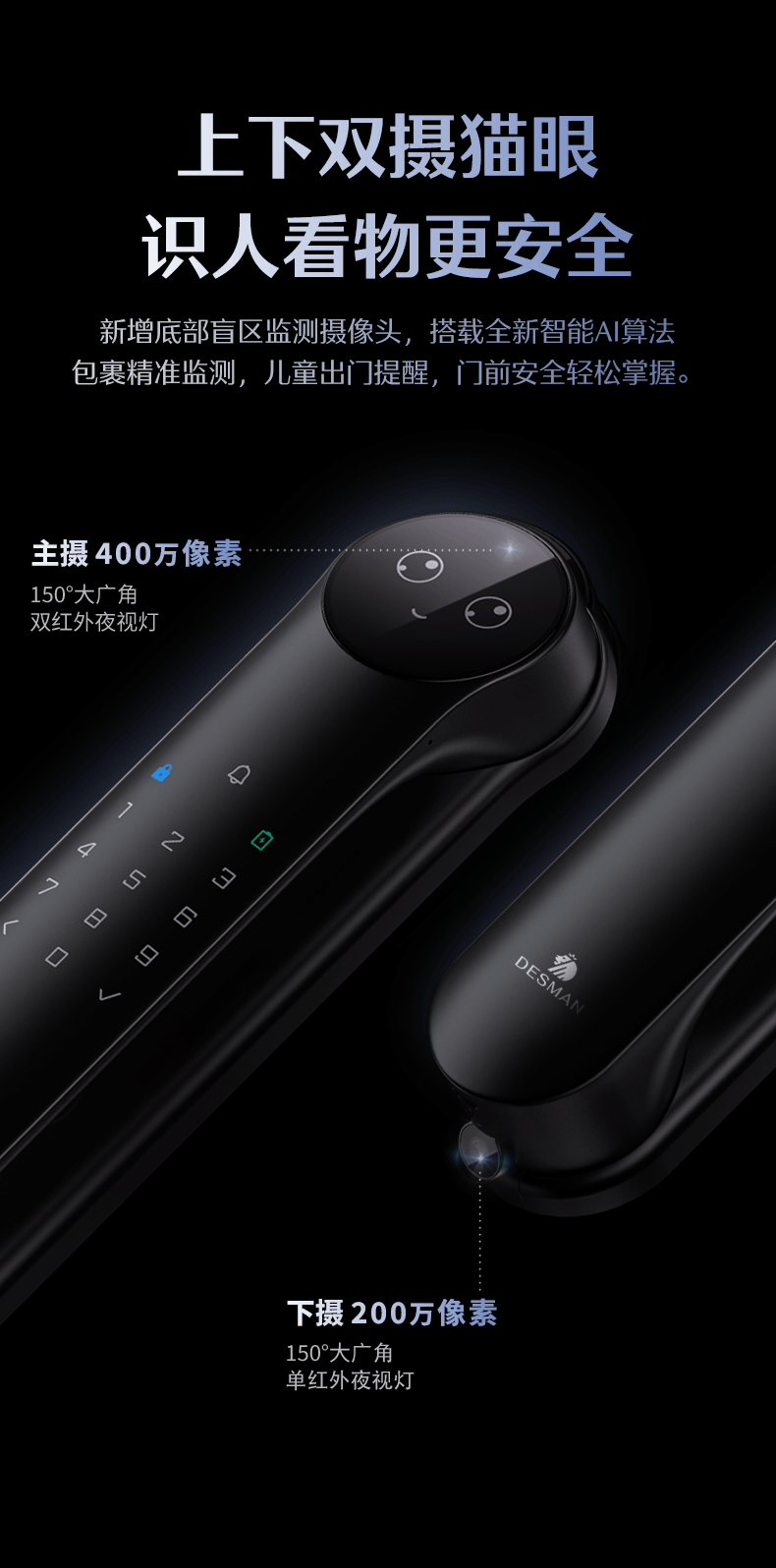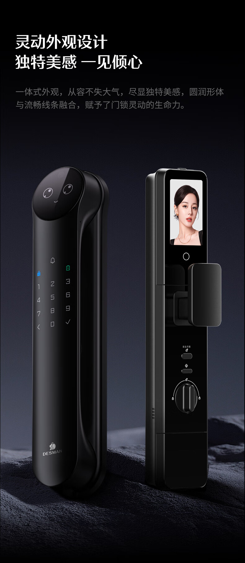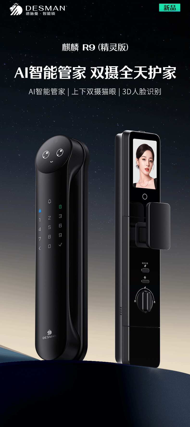 德施曼(DESMAN)Ai智能门锁3D人脸识别可视猫眼双摄双屏小圆脸麒麟R9精灵版