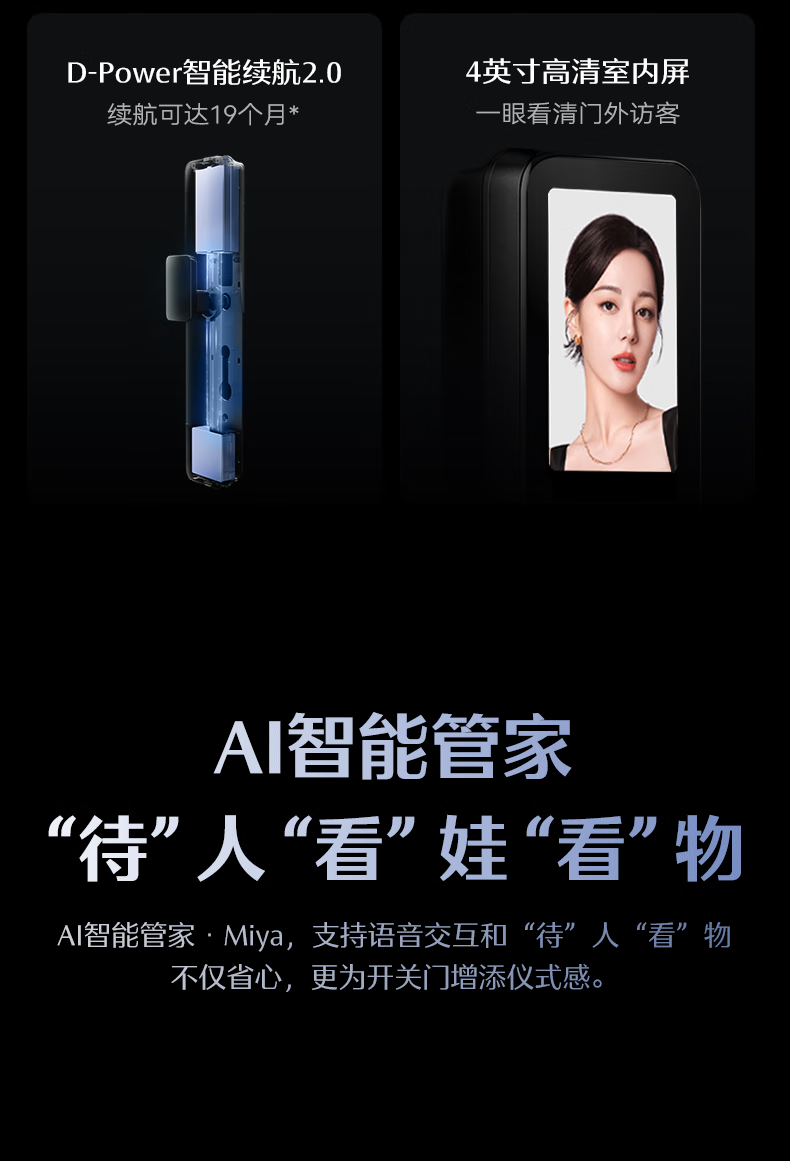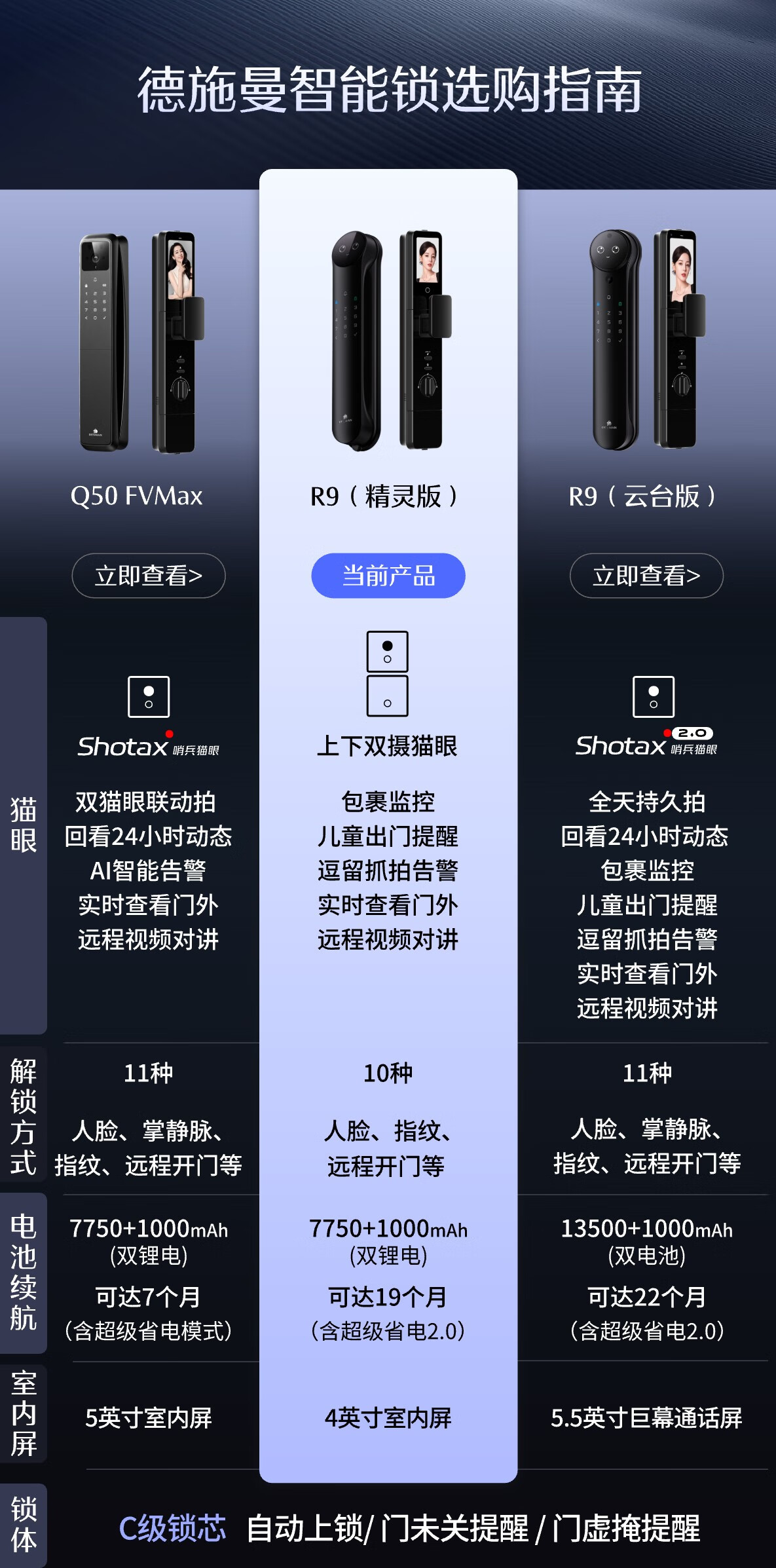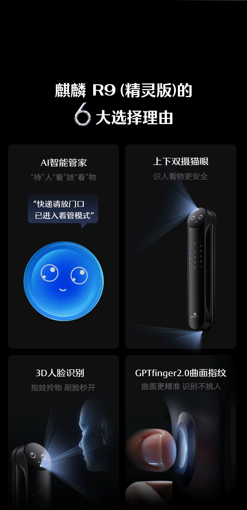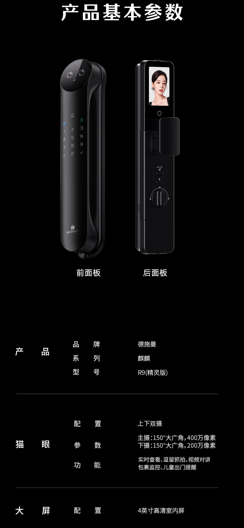 德施曼(DESMAN)Ai智能门锁3D人脸识别可视猫眼双摄双屏小圆脸麒麟R9精灵版