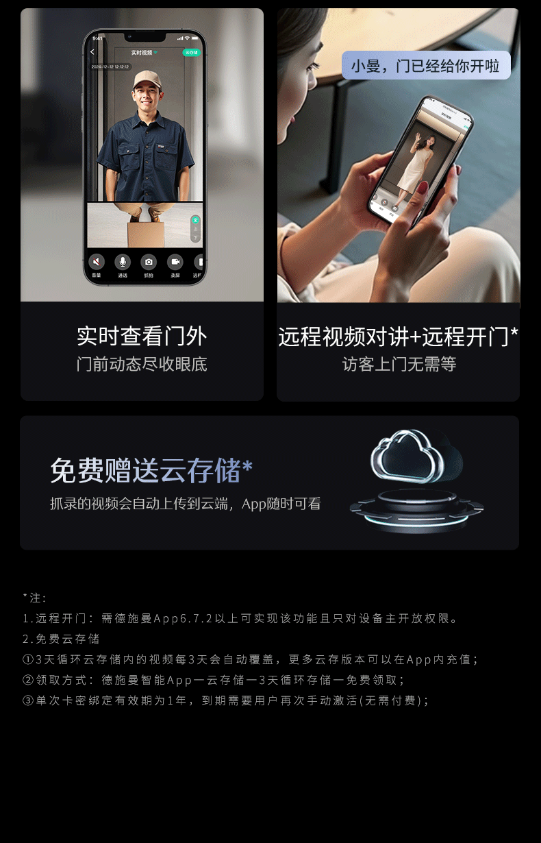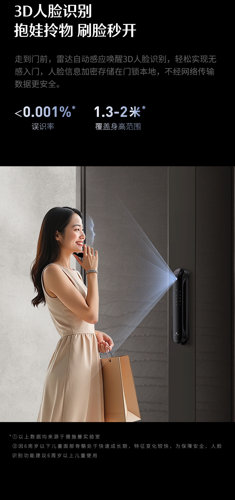 德施曼(DESMAN)智能门锁3D人脸识别掌静脉可视猫眼大屏指纹密码电子锁 小嘀 Q2FV