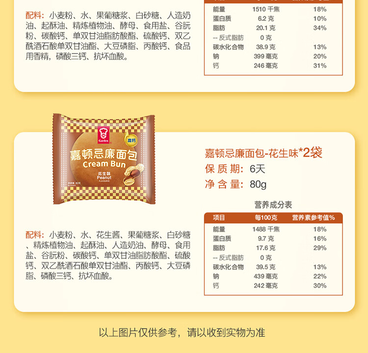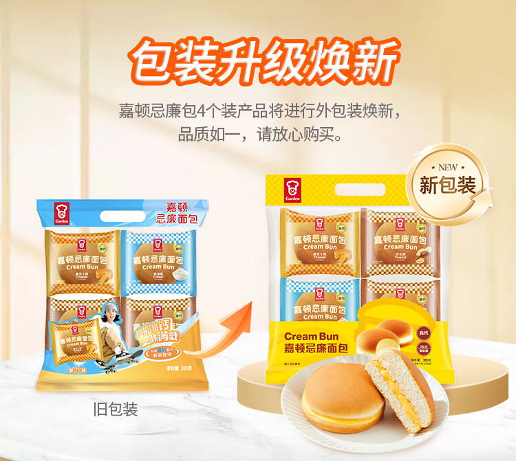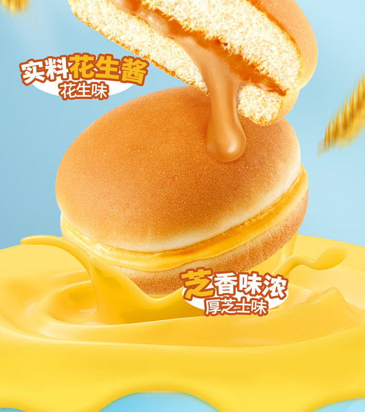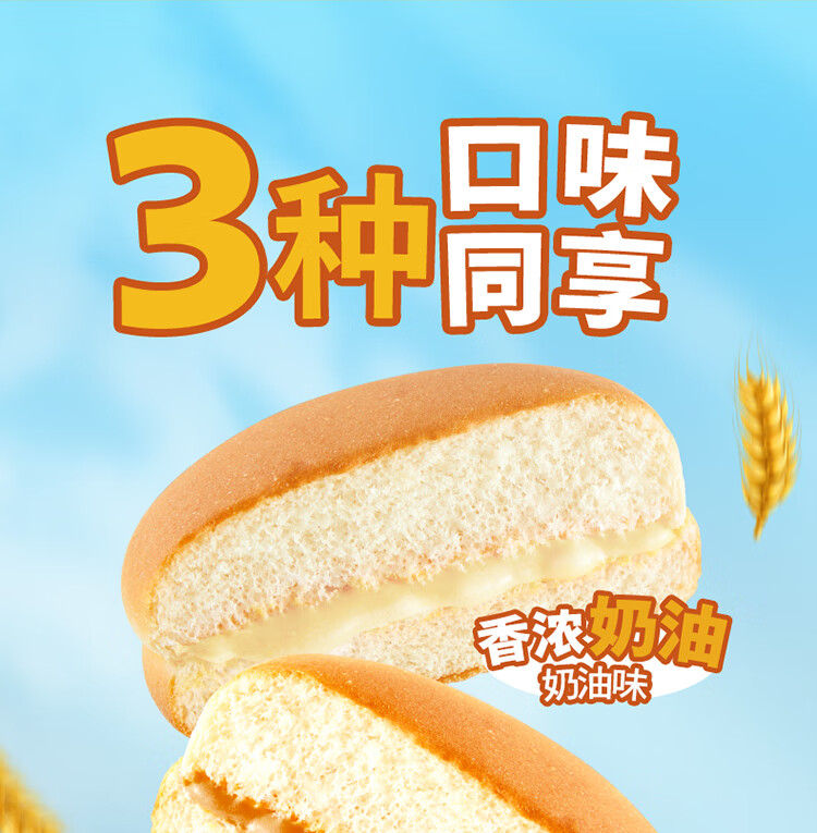 嘉顿忌廉包305g夹心营养早餐新鲜面包零食蛋糕食品休闲代餐混合口味 厚芝士*1奶油味*1花生味*2 305g