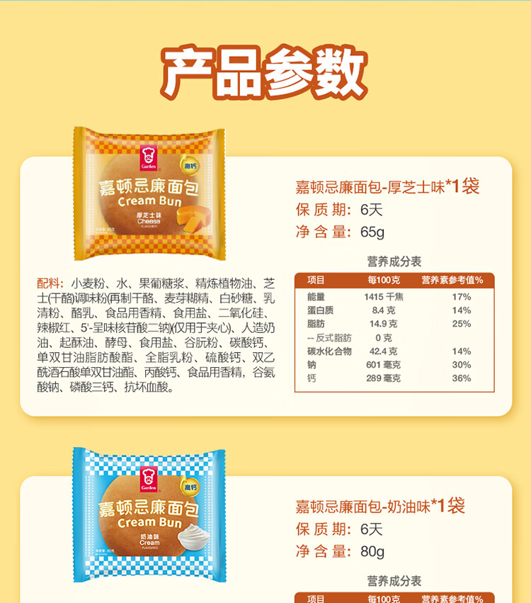 嘉顿(Garden)排包两袋装共420g 新鲜奶味面包营养早餐饱腹面包网红零食点心