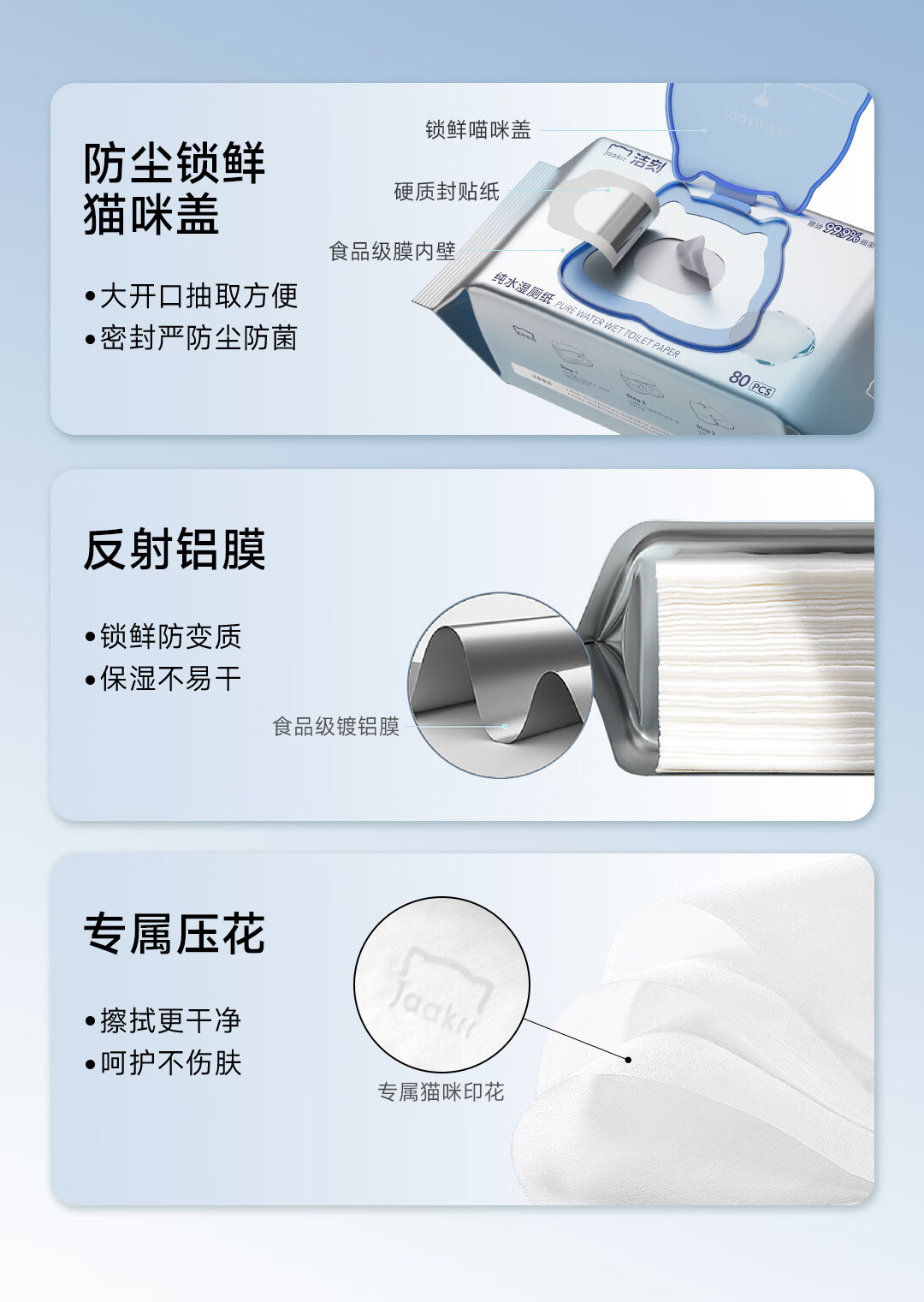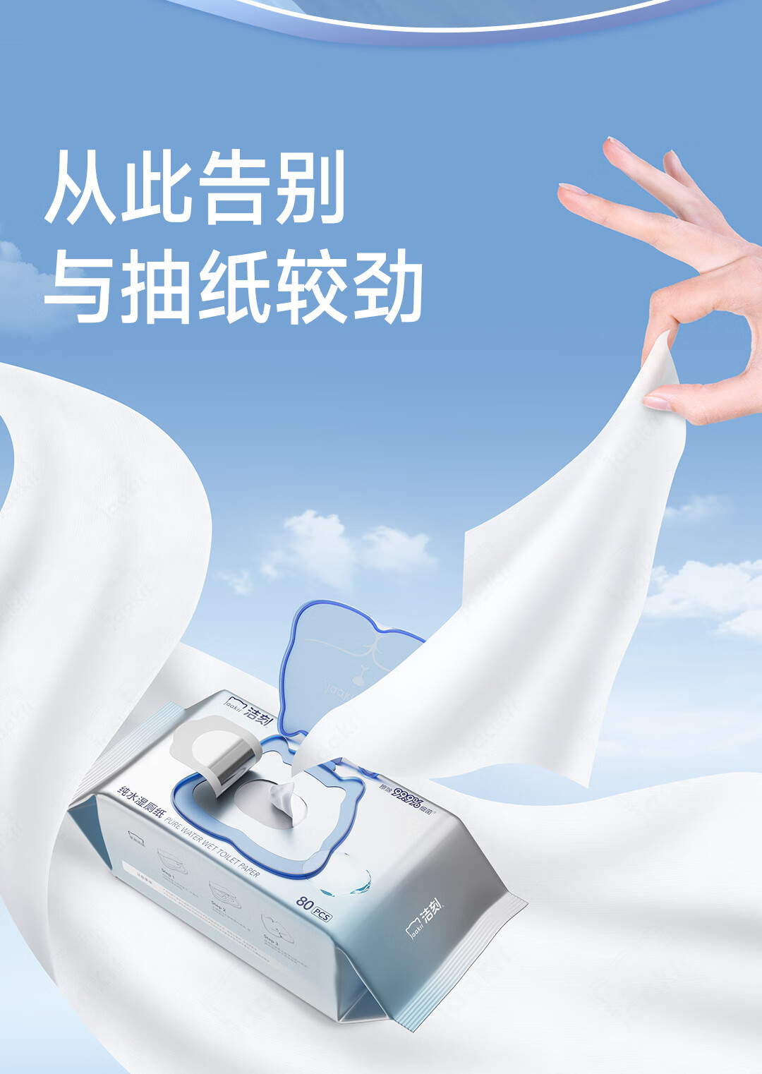 洁刻湿厕纸 纯水款80抽x4包湿纸巾 厕所湿巾可冲马桶厕纸【临期清仓】
