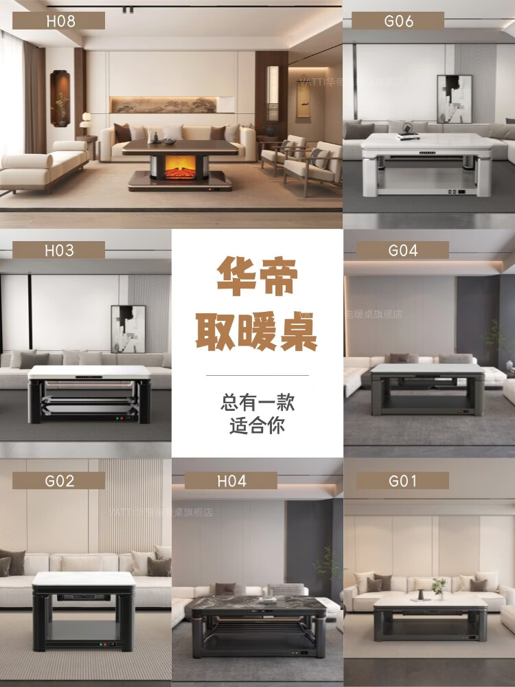 华帝(VATTI)取暖桌 电暖桌 烤火桌电烤桌取暖语音升降轻移动家用电烤炉桌子烤火电暖炉烤火炉正方形餐桌 G02灰900*900mm智能升降移动滑轮轨道桌罩