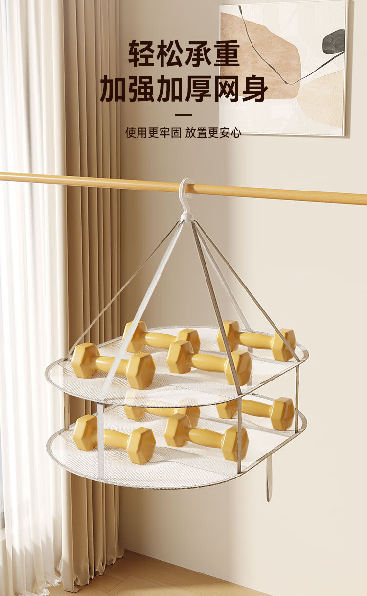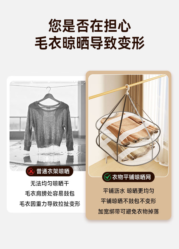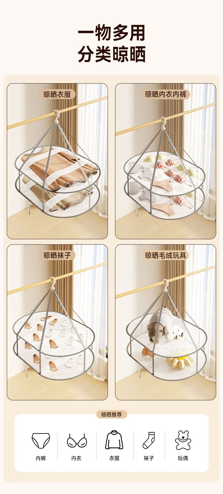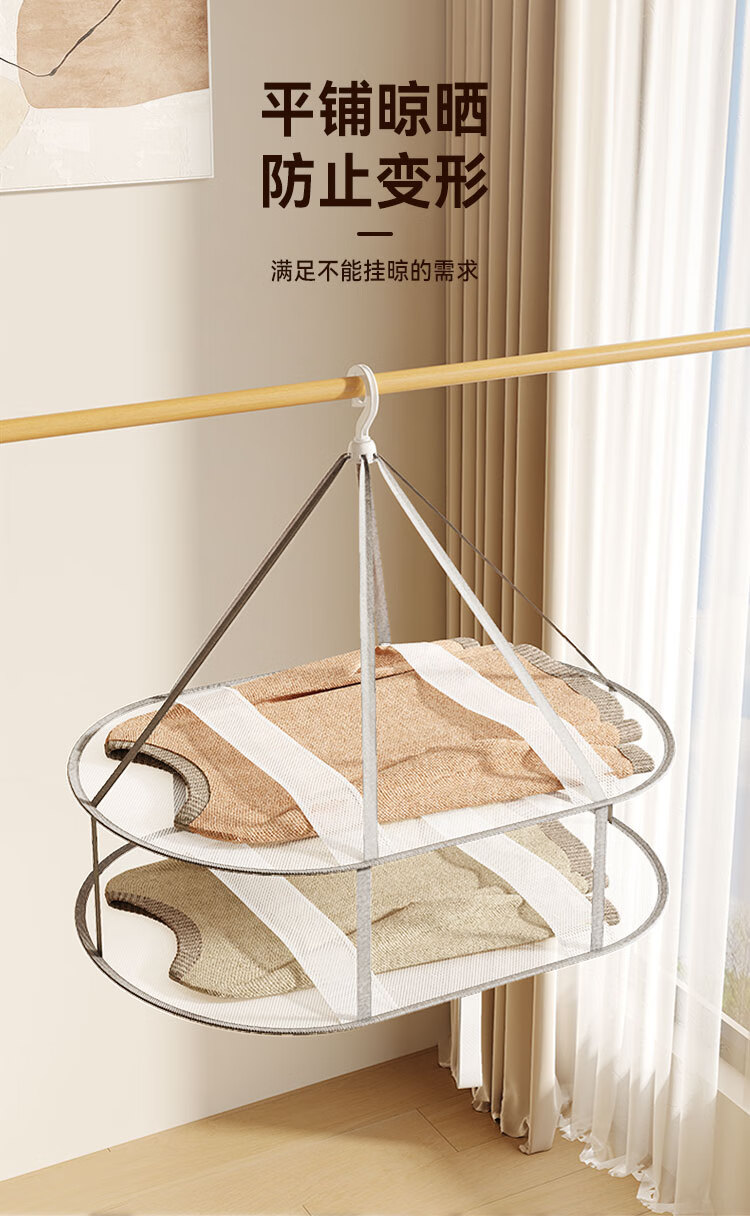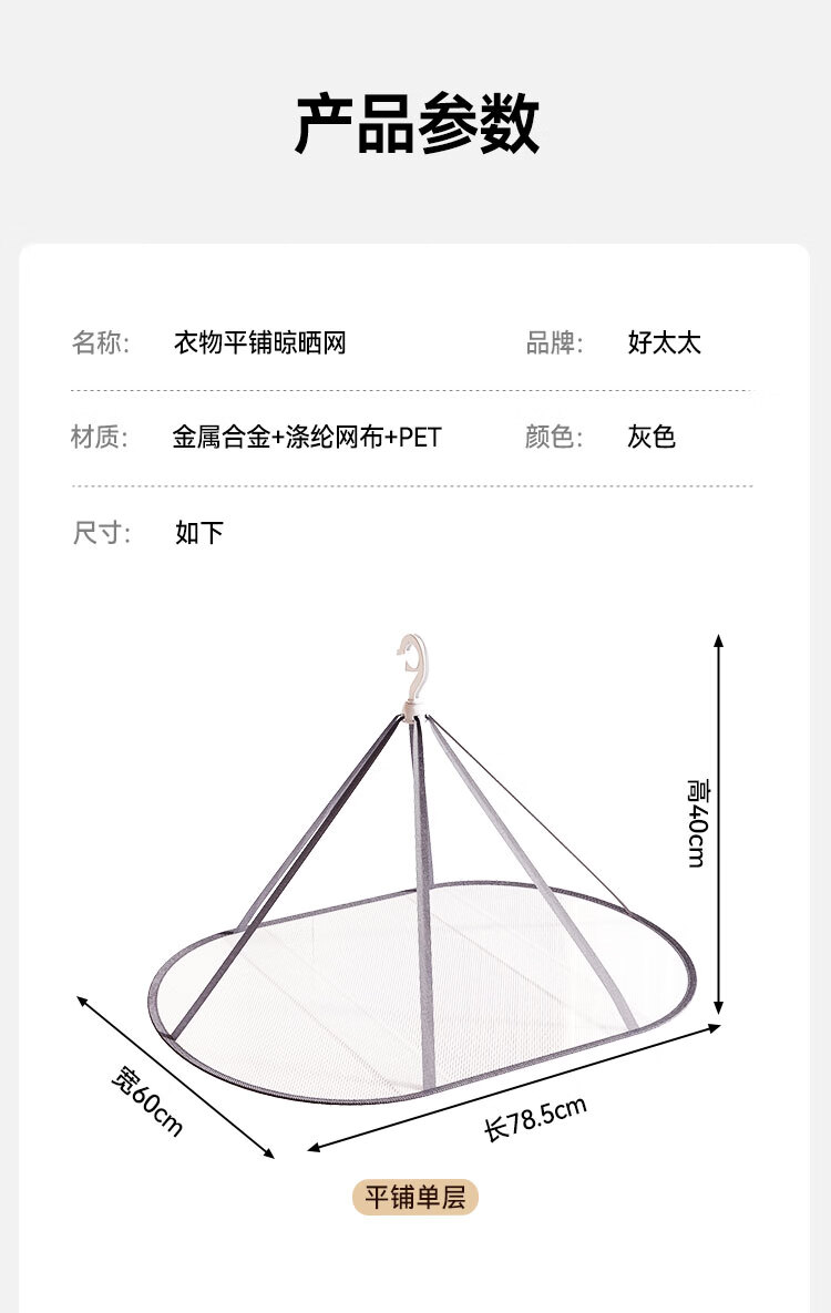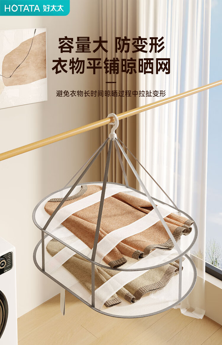 好太太(Hotata)晾衣网防变形家用羊毛衫平铺晾晒无痕透气晾晒网防掉落衣物固定带 【双层款】78.5cm*60cm*55.5cm