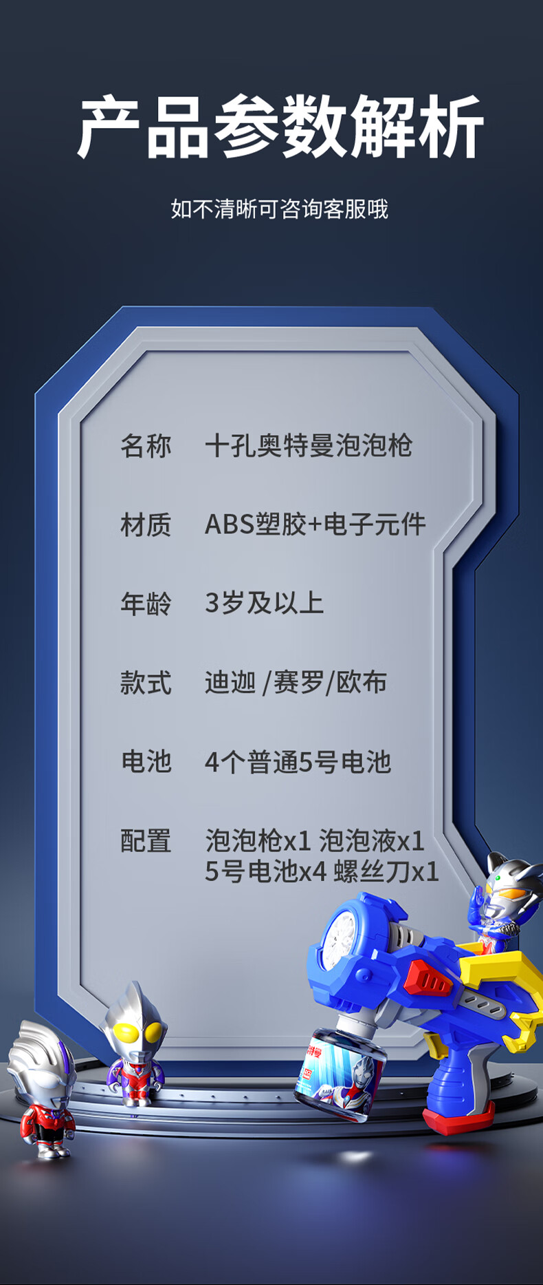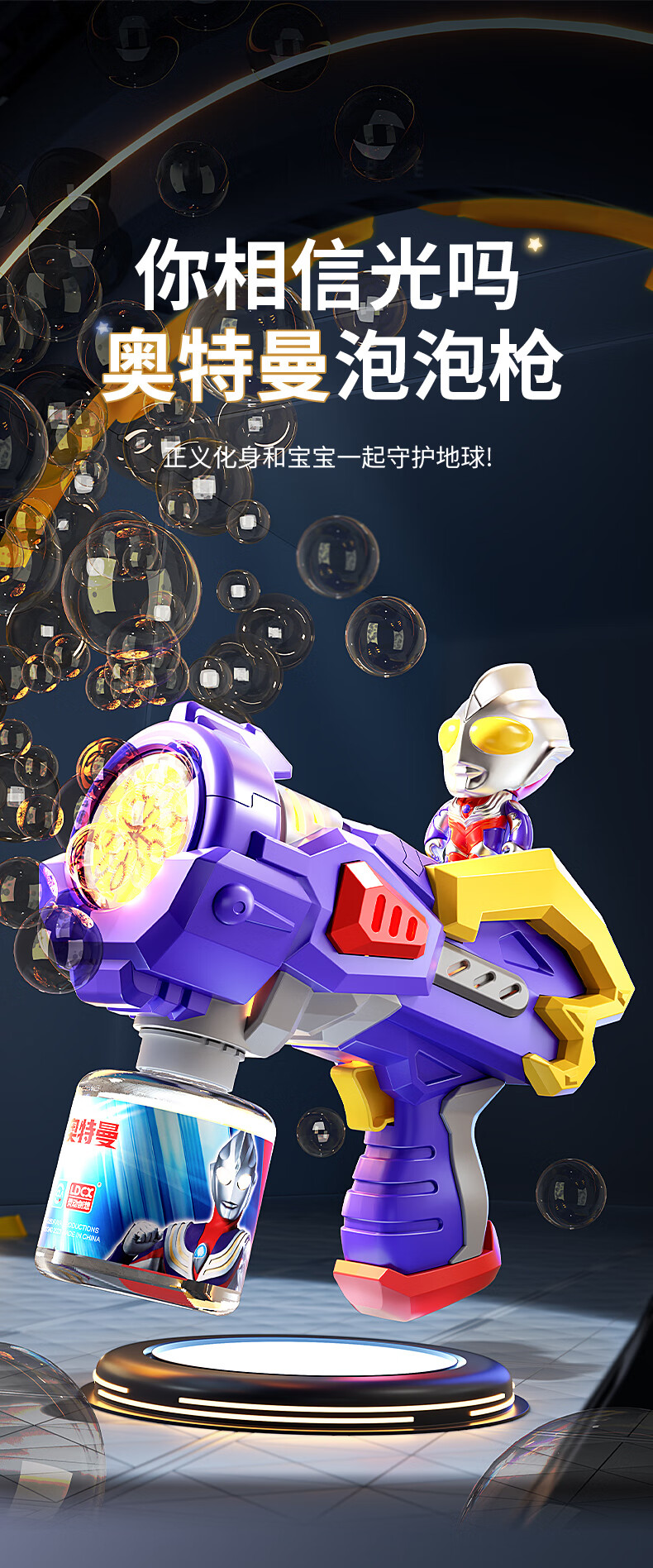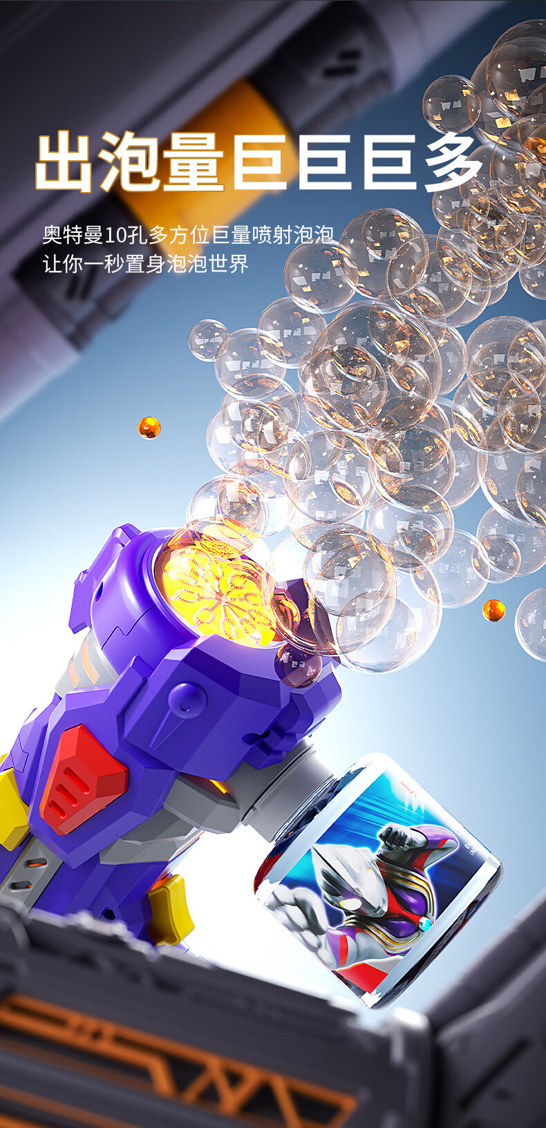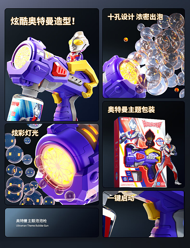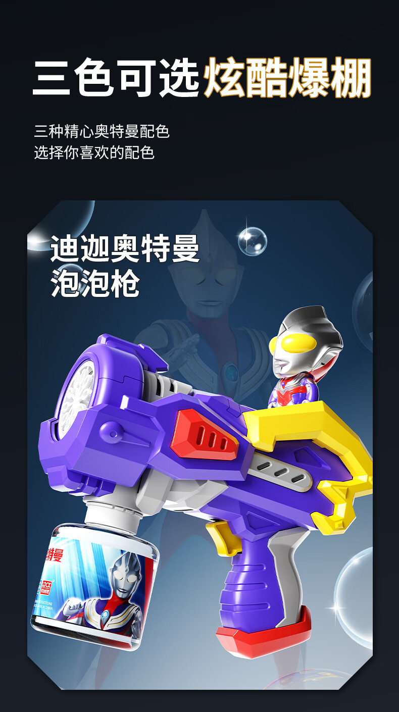 蜜乐糖奥特曼泡泡机泡泡液多孔泡泡枪电动吹泡泡儿童玩具迪迦儿童节礼物