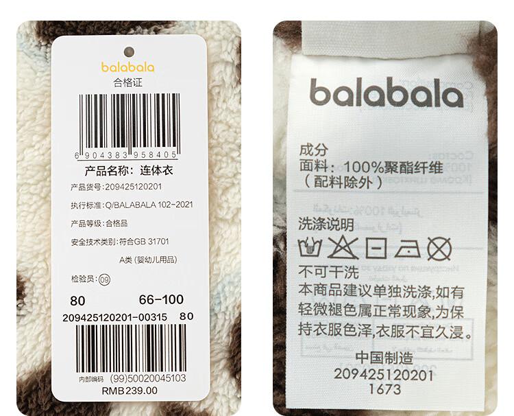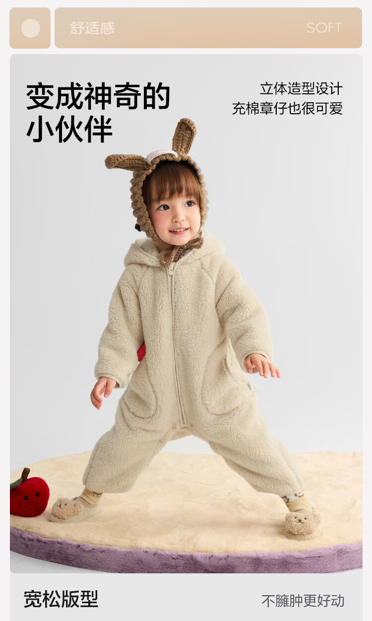 巴拉巴拉童装婴儿连体衣秋冬宝宝外出抱衣哈衣爬服珊瑚绒男童女童婴童衣服