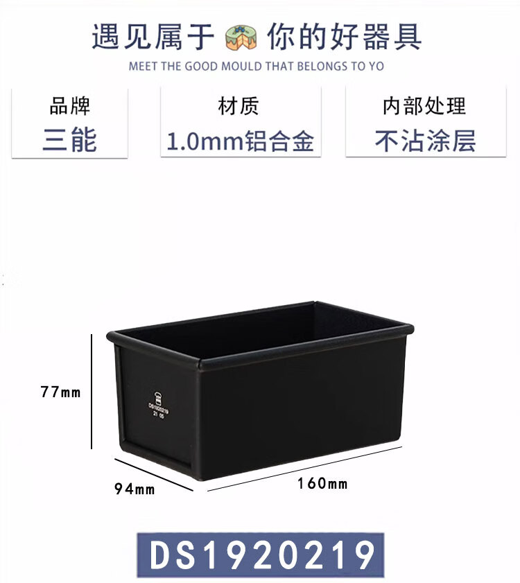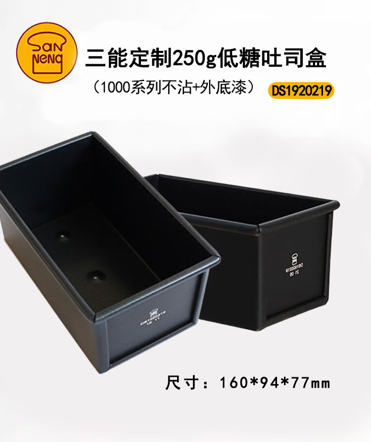 三能250g低糖吐司盒无盖长方形土司盒面包盒子黑色生吐司盒DS1920219