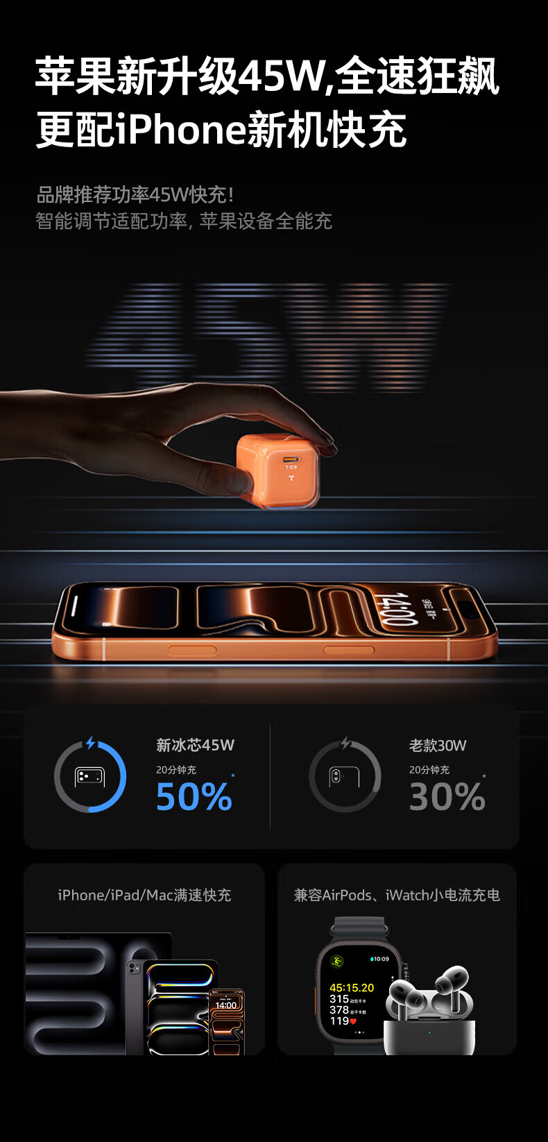 图拉斯小冰块新款【17新机首选|不伤电池】苹果17promax充电器iphone17pro充电头17Air氮化镓16套装45W 【17顶配套装】45W星宇橙+1.68米双C线 最新升级款丨苹果快充不伤机