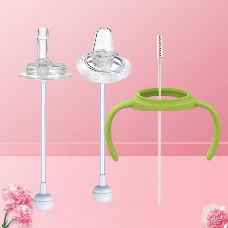 优爱心用于贝吸嘴鸭嘴奶瓶配件学饮杯吸嘴吸管重力球手柄配件 3代绿色手柄吸嘴鸭嘴吸管刷