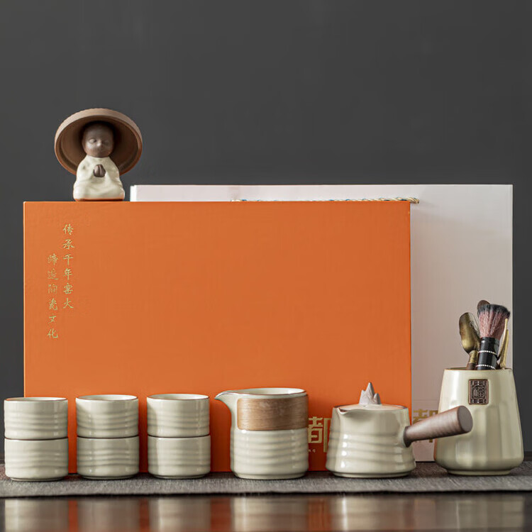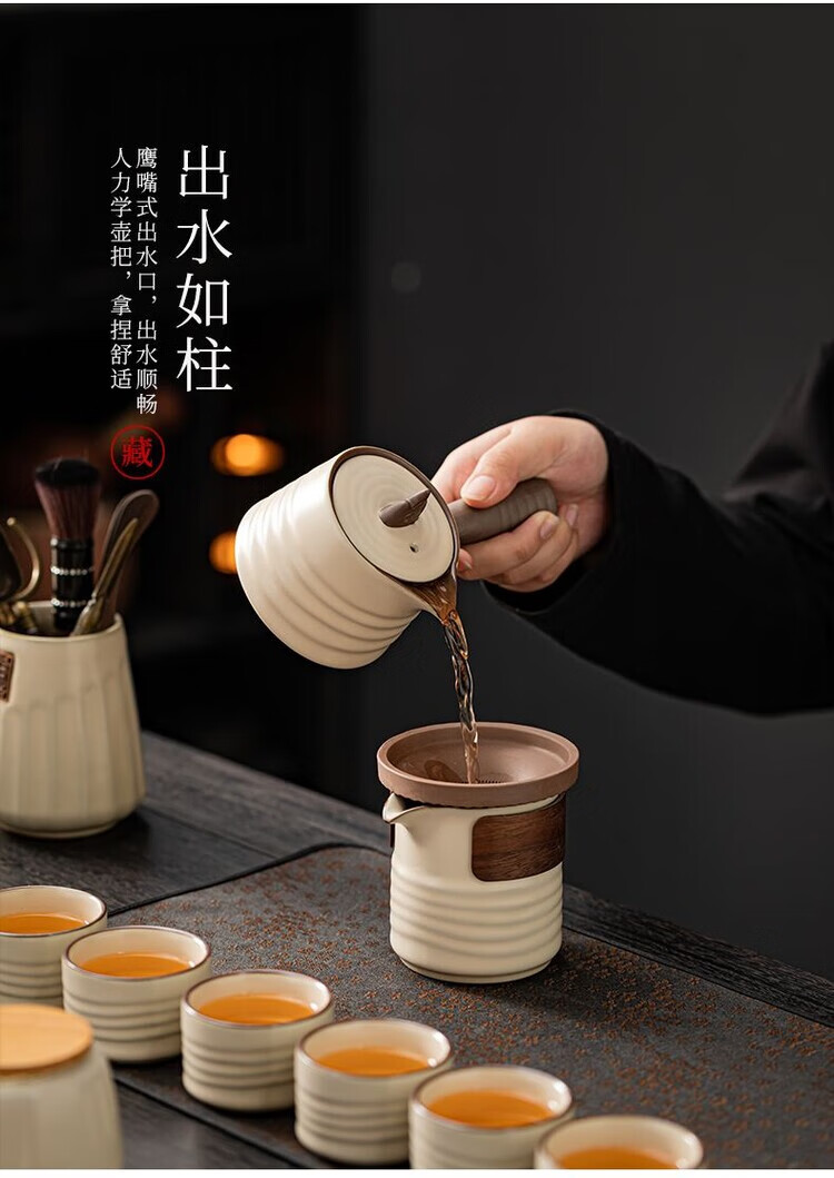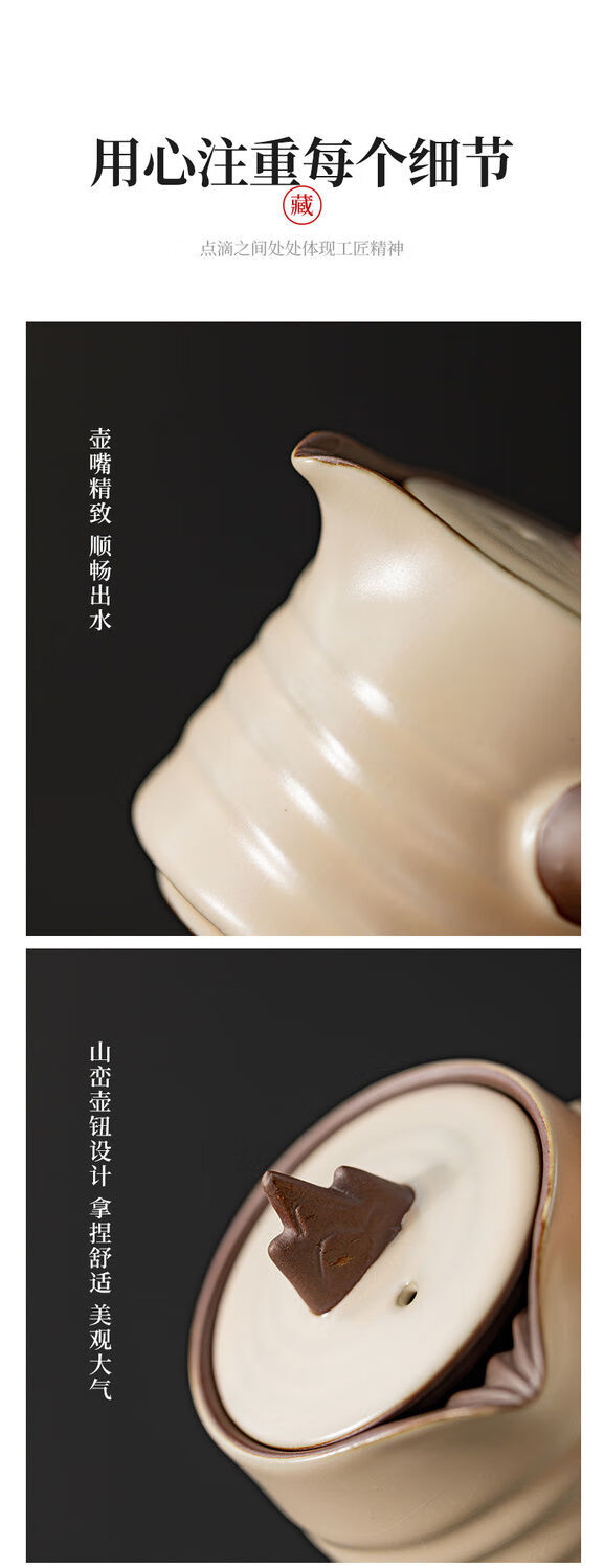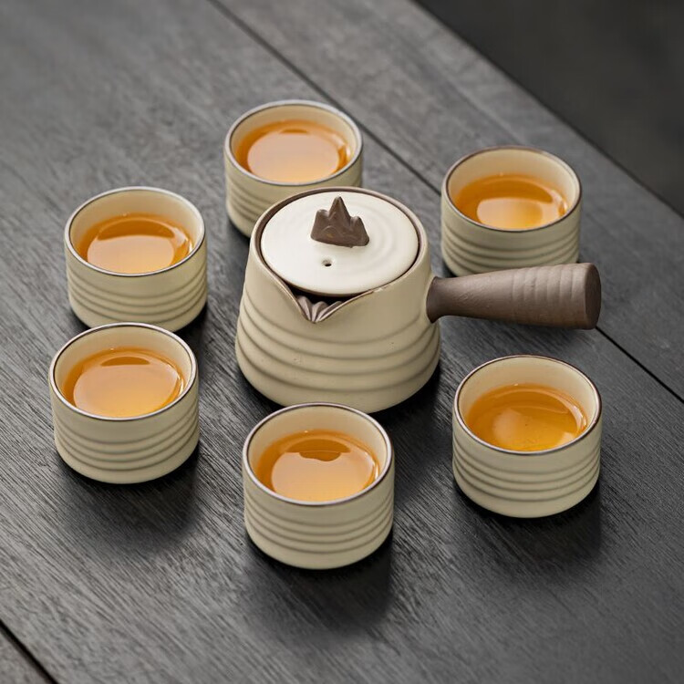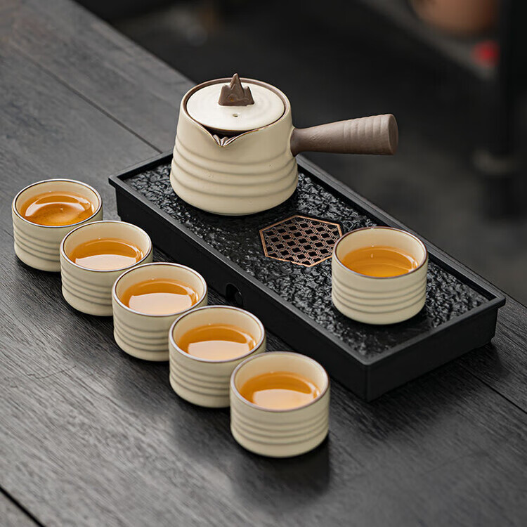 简漾米黄汝窑功夫茶具套装轻奢办公室会客陶瓷家用高端泡侧把茶壶礼盒 7头米黄侧把壶茶具套装