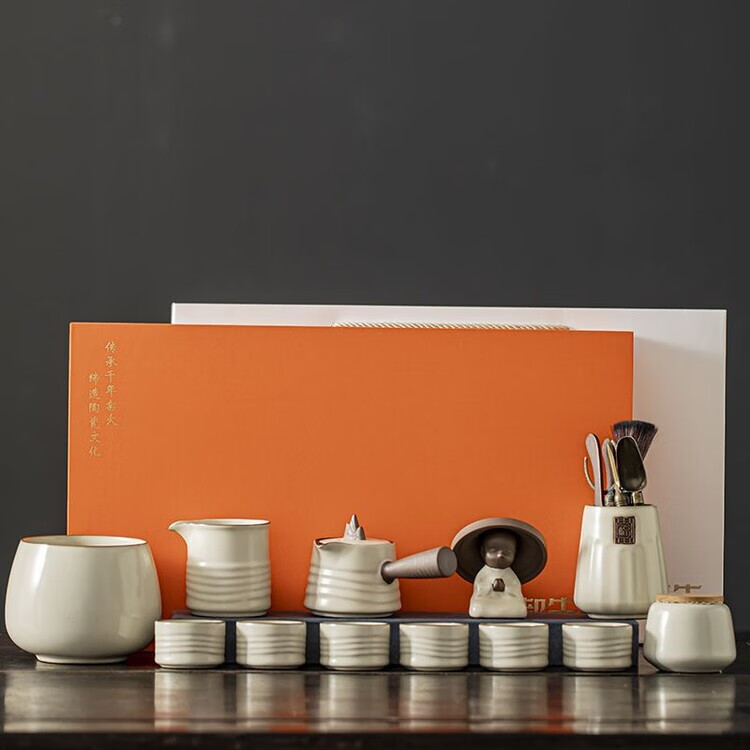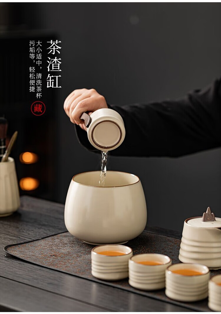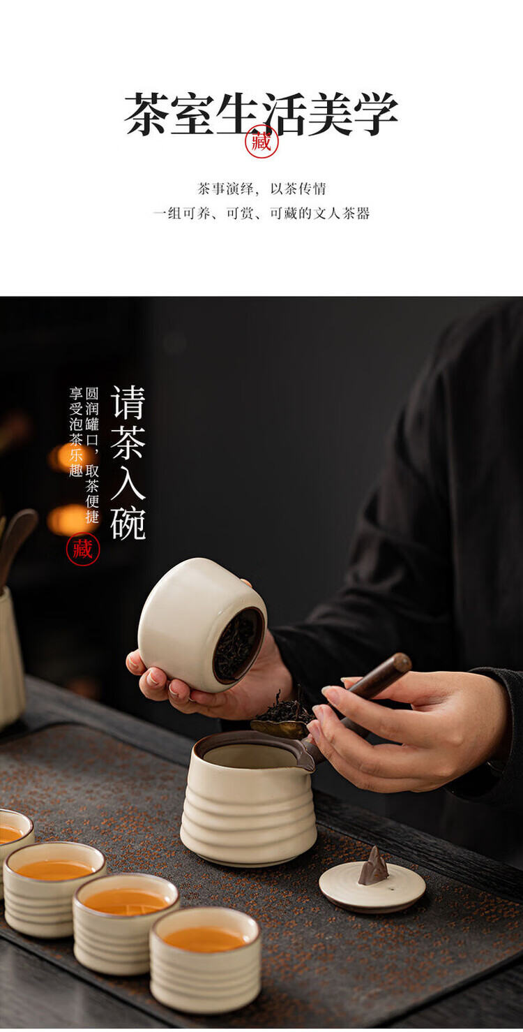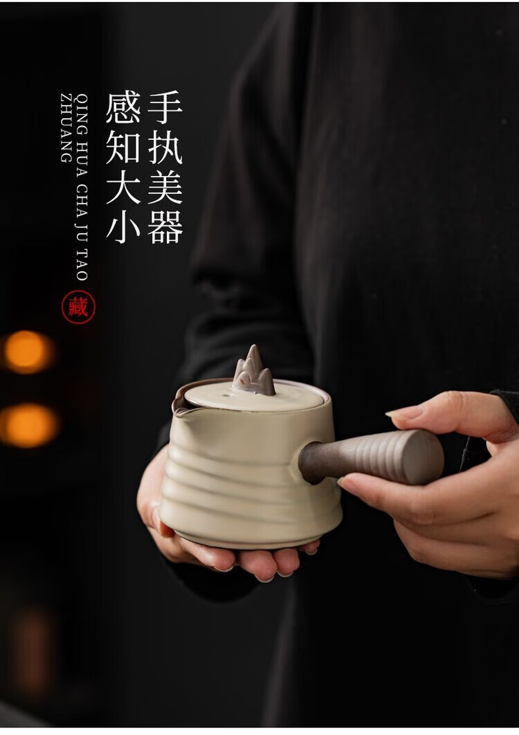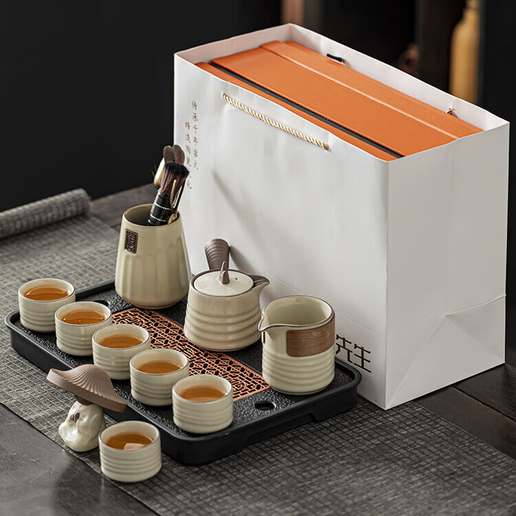 简漾米黄汝窑功夫茶具套装轻奢办公室会客陶瓷家用高端泡侧把茶壶礼盒 7头米黄侧把壶茶具套装