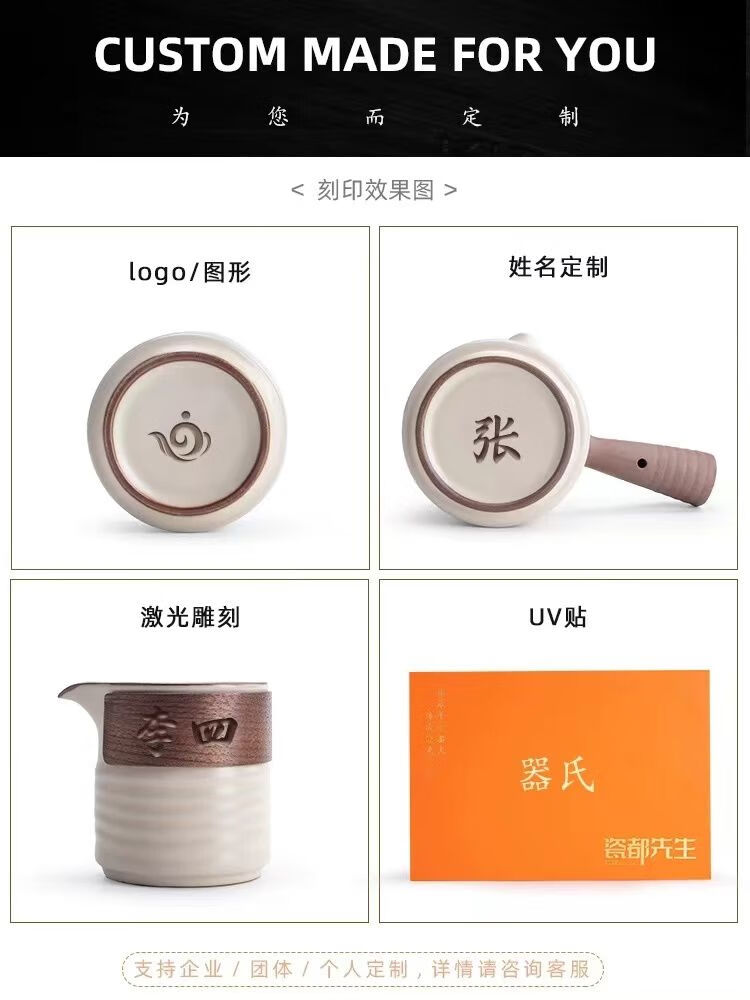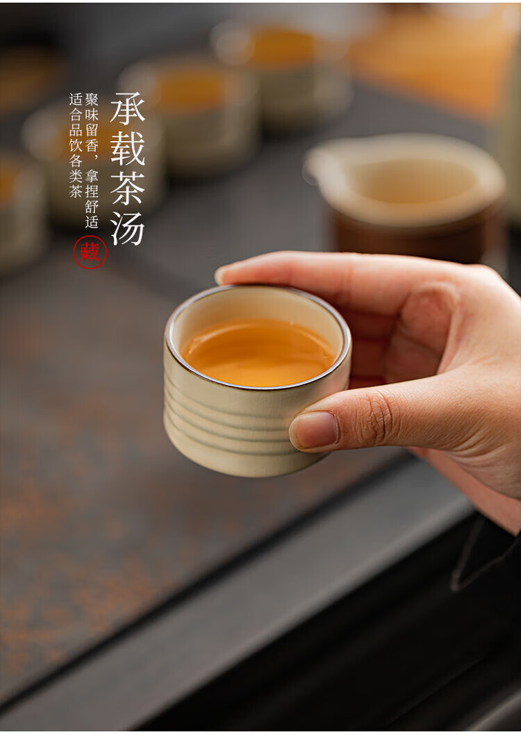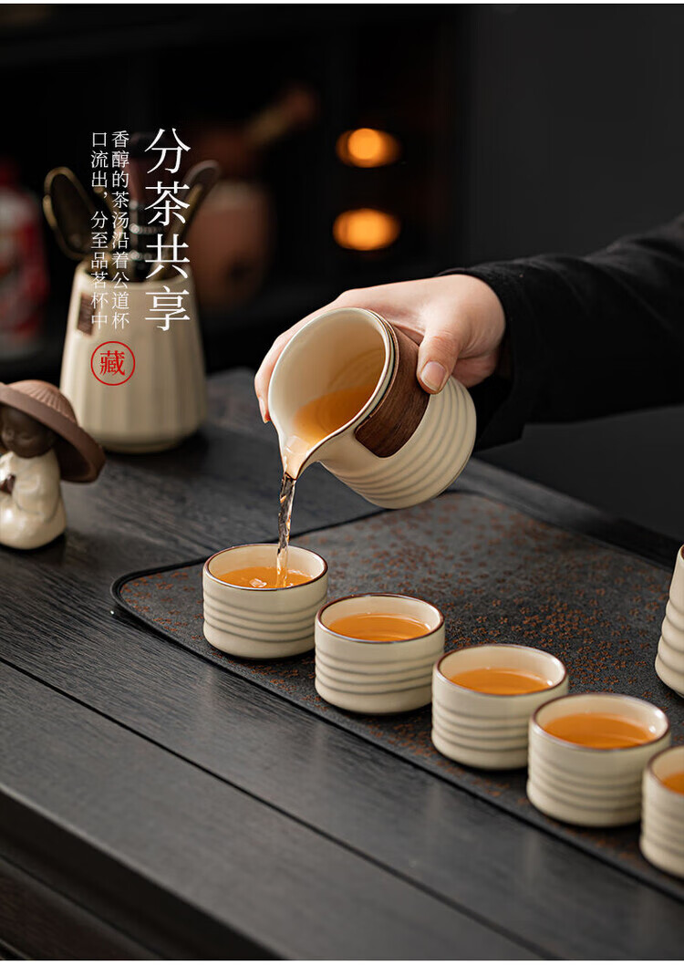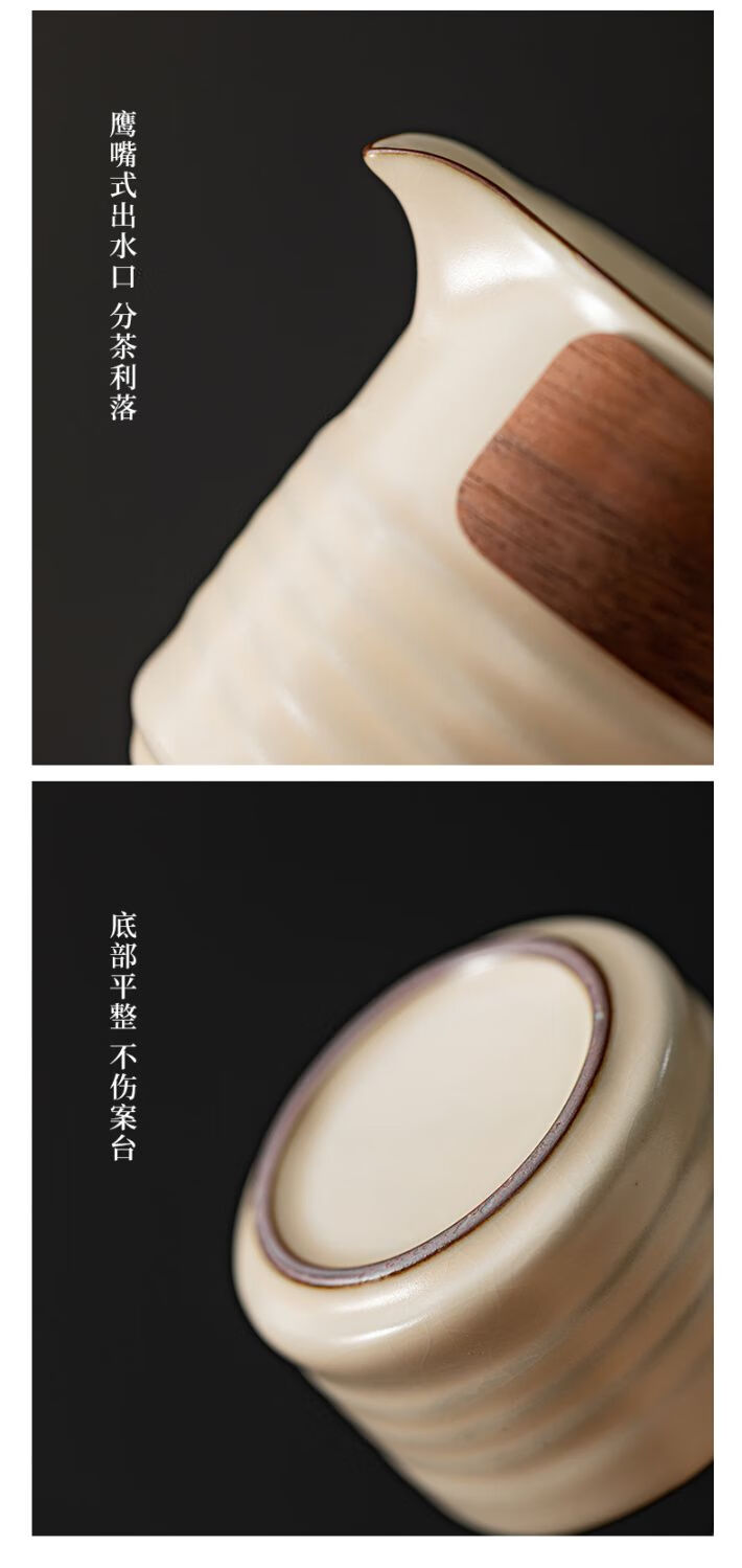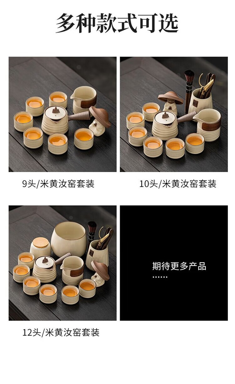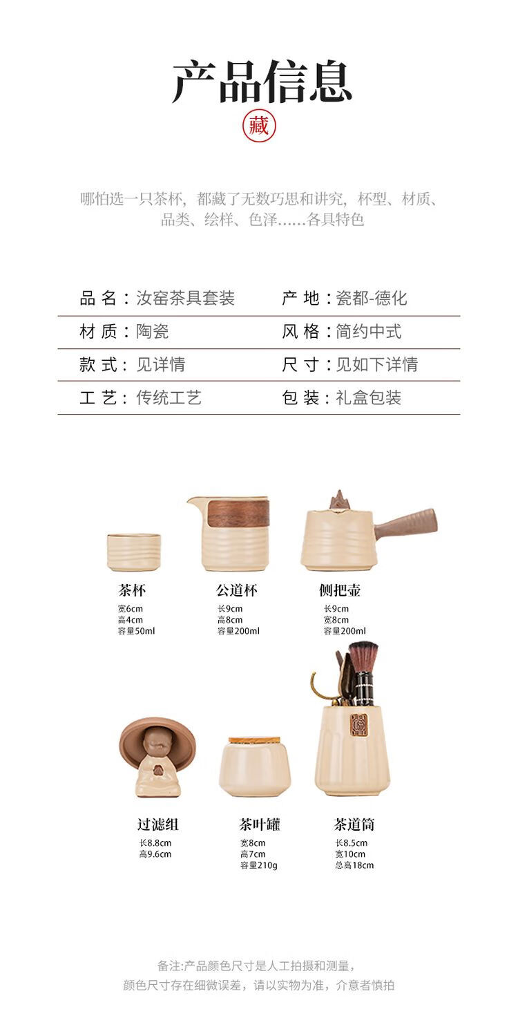 咏夏米黄汝窑功夫茶具套装轻奢办公室会客陶瓷家用高端泡侧把茶壶礼盒 米黄侧把壶茶具套装 7头