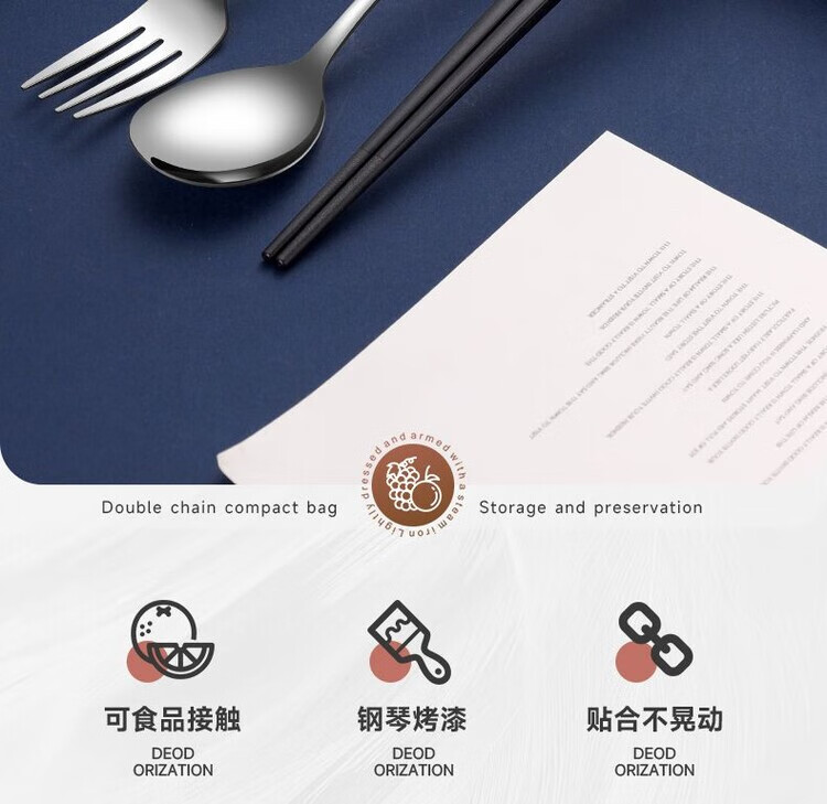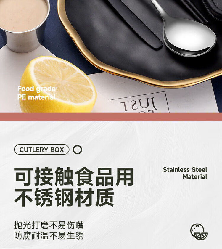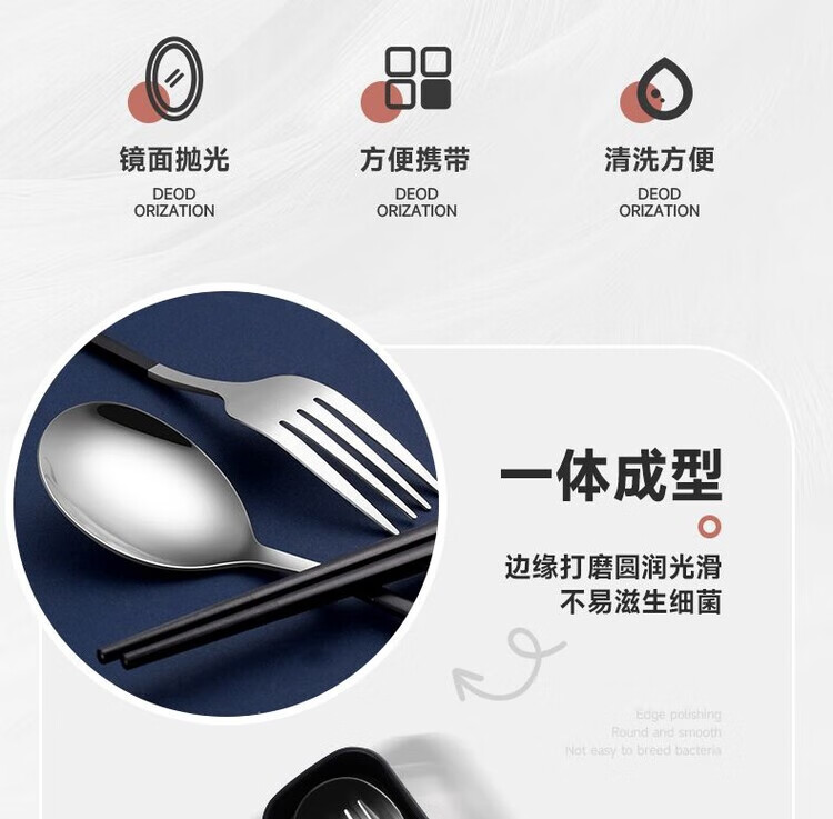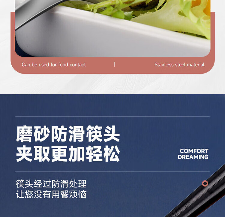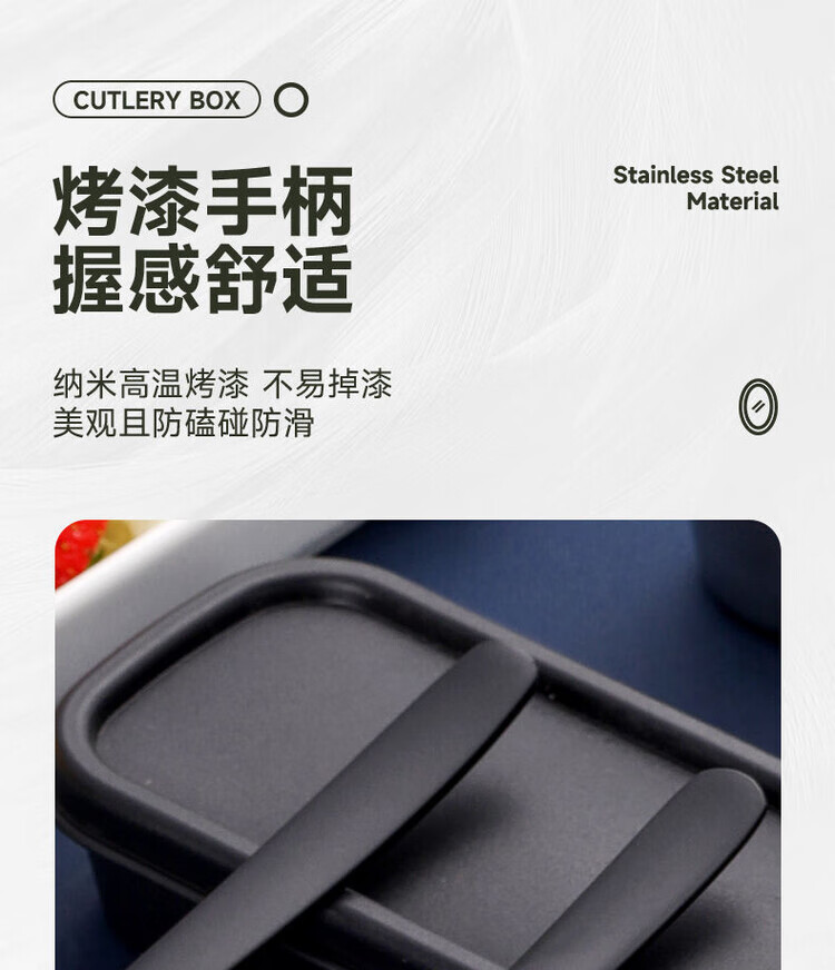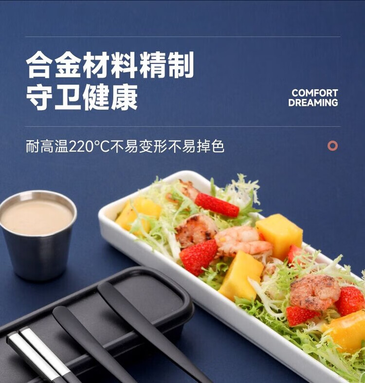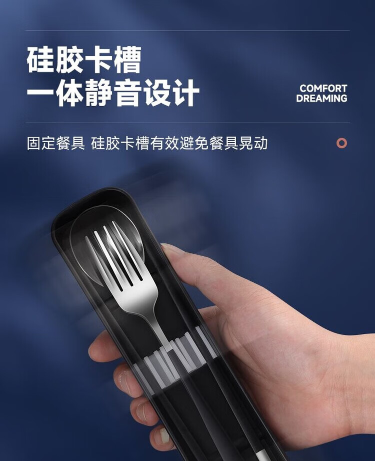 泰禧阁不锈钢学生餐具套装筷子勺子叉子便携三件套上班族成人餐具旅行装 黑色便捷筷子+勺子+盒子 暗黑色系