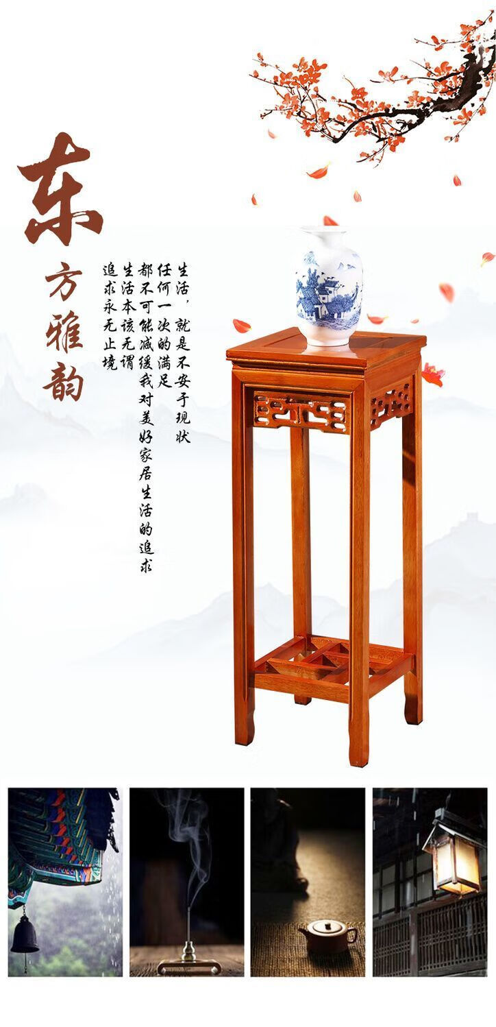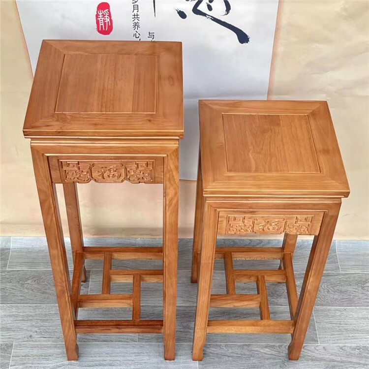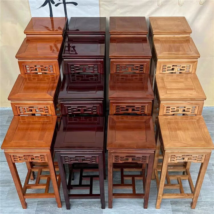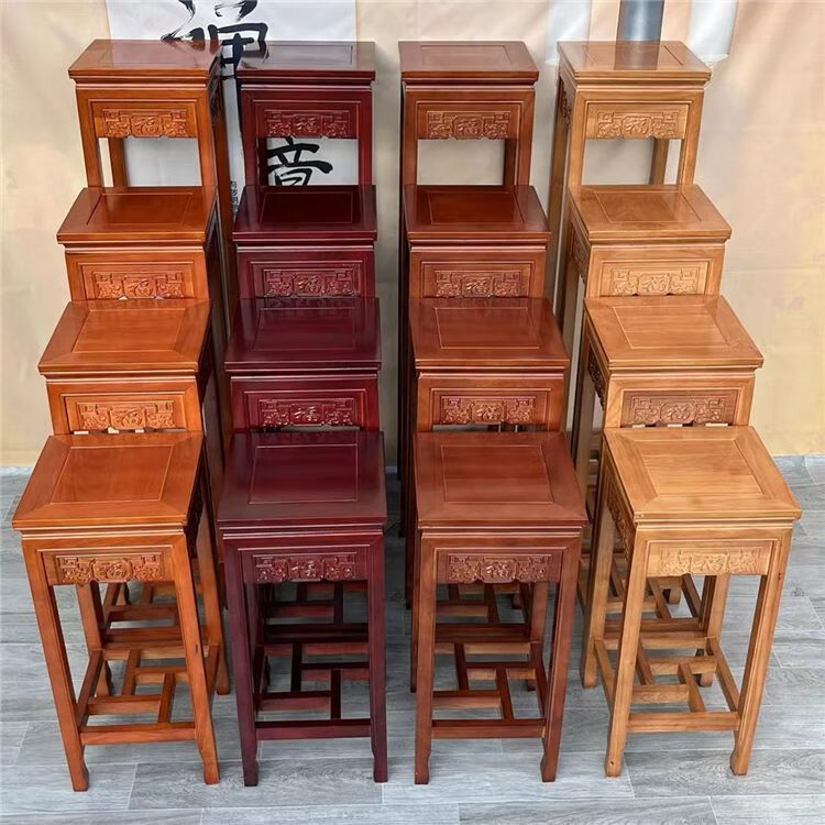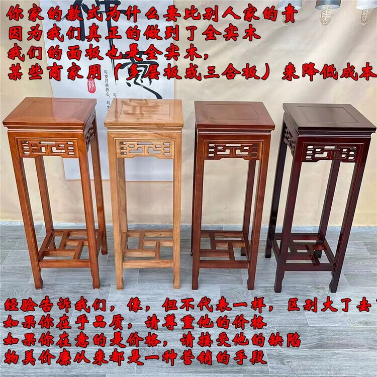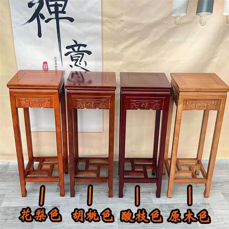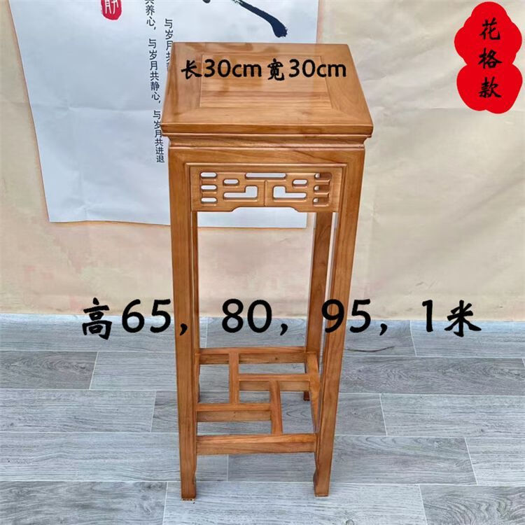 欣慕雅实木花架客厅中式仿古多层绿萝四方木质家用阳台室内盆景架 胡桃色 花格款-面30高65 橡胶木材质