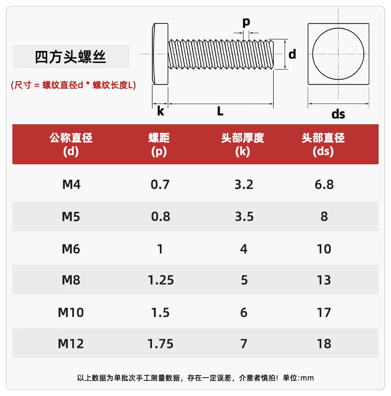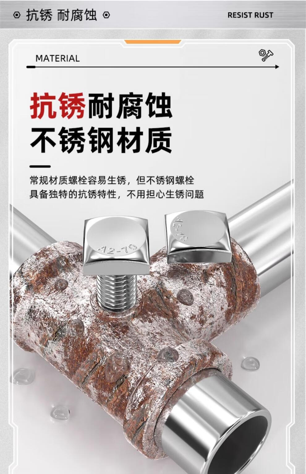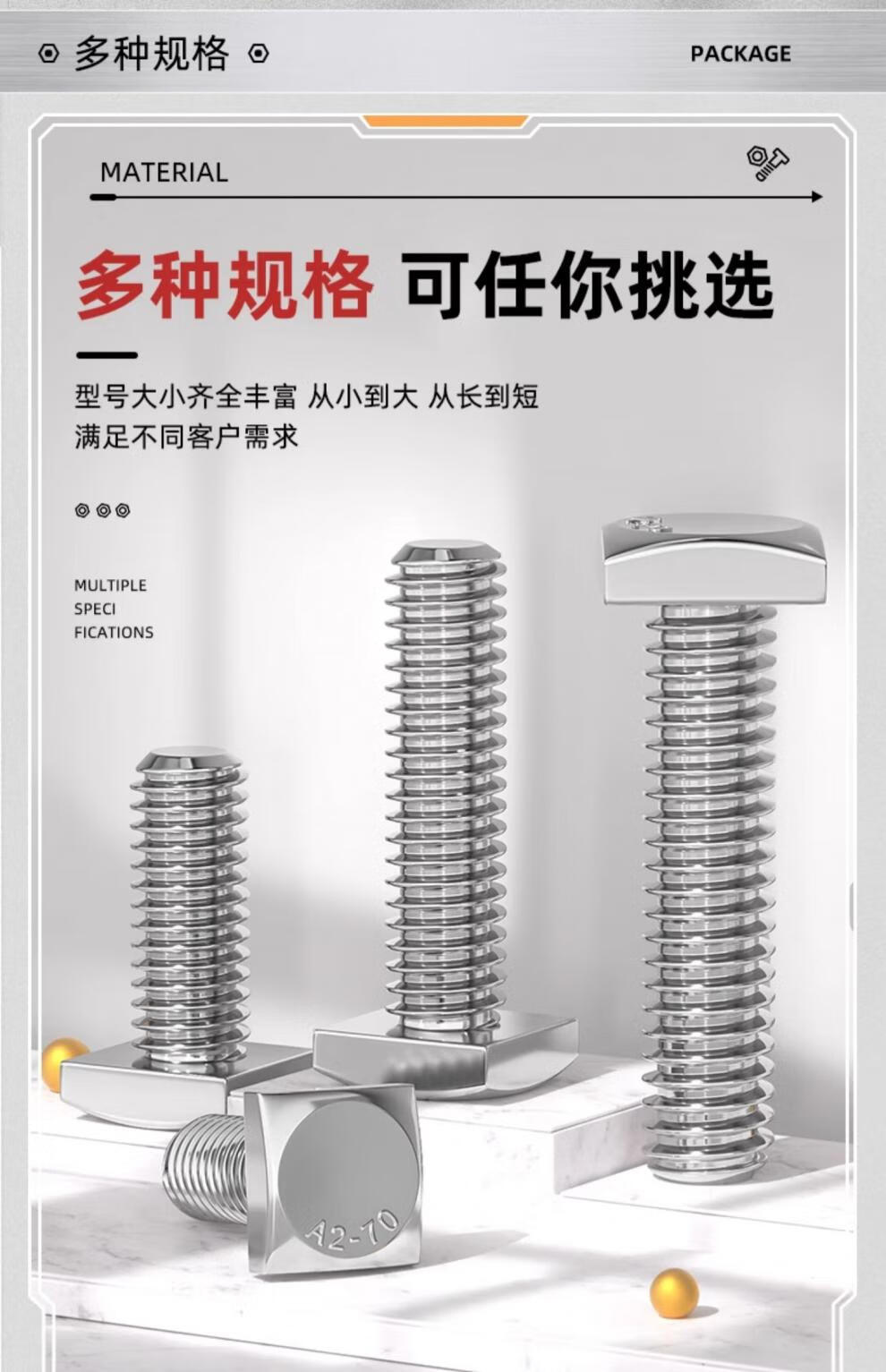 天卓五金304不锈钢GB35四方头螺栓小方头螺丝四角螺杆方型螺钉M5M6M8M10mm M4*12-50个