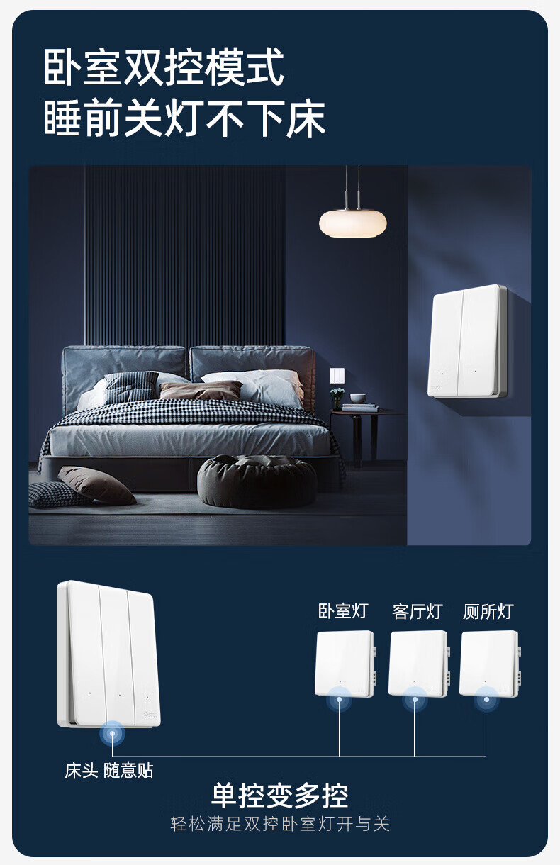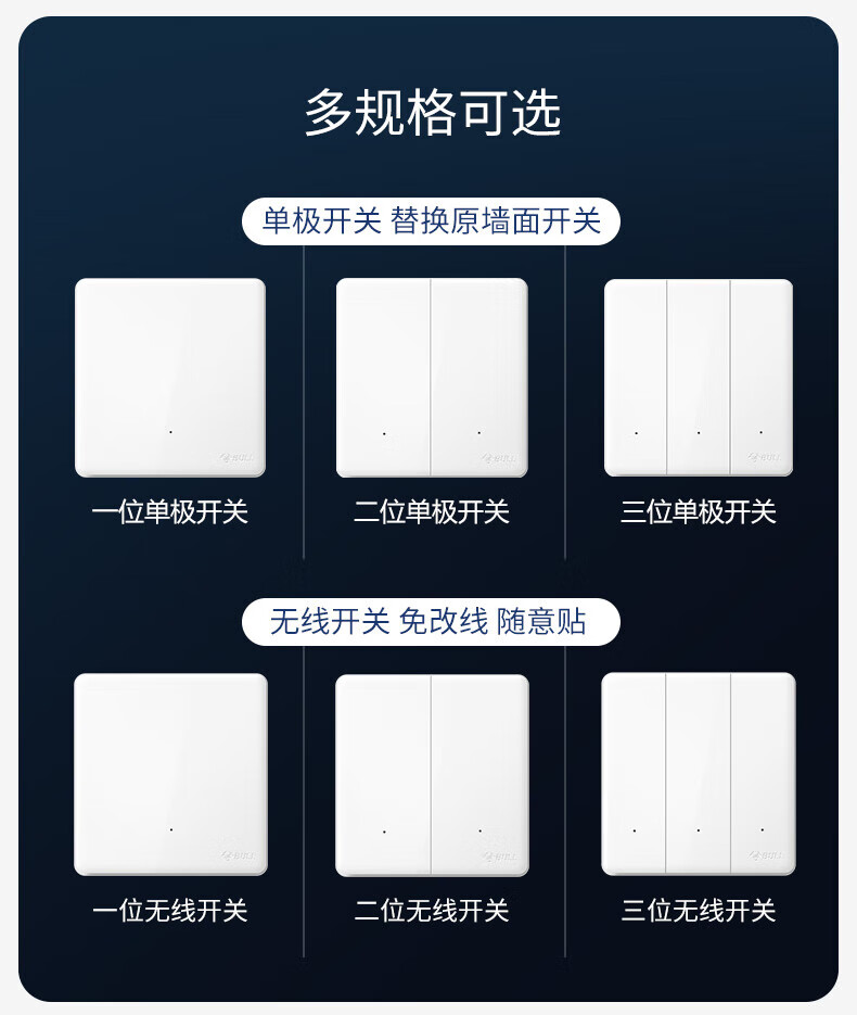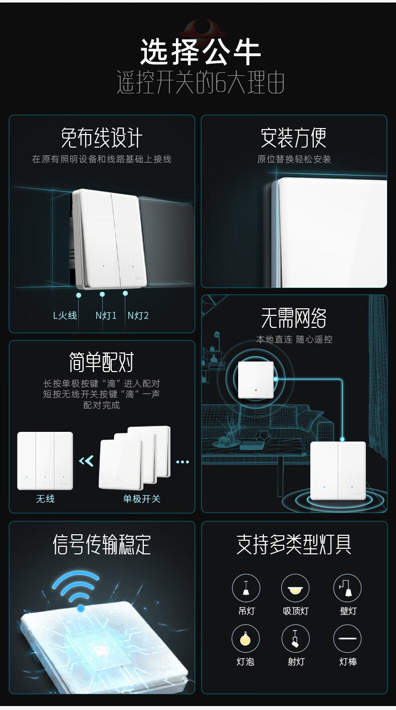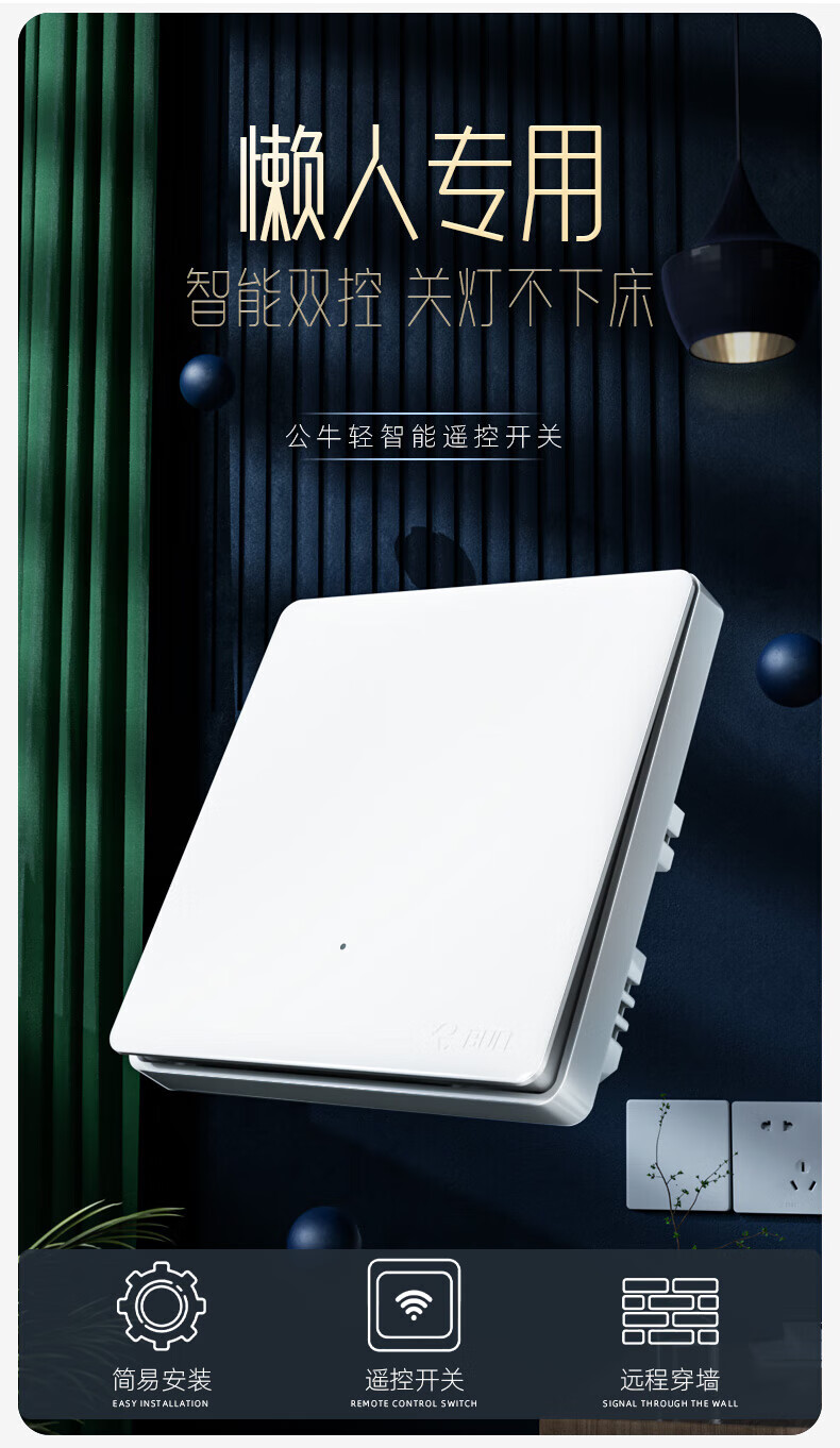 公牛(BULL)无线开关面板免布线 智能无线子母开关 家用远程遥控开关控制器 白色 二开 一拖二【主开关*1 无线开关*2】
