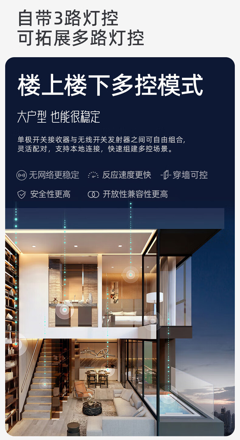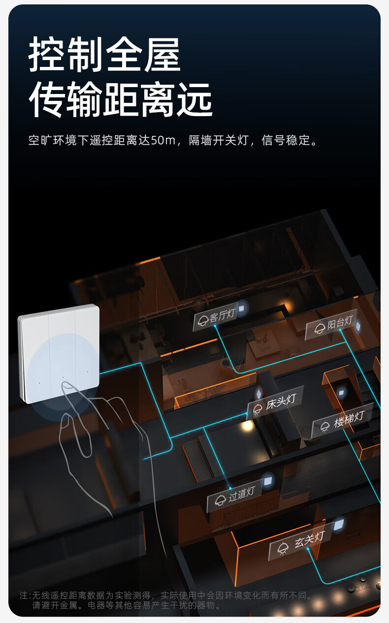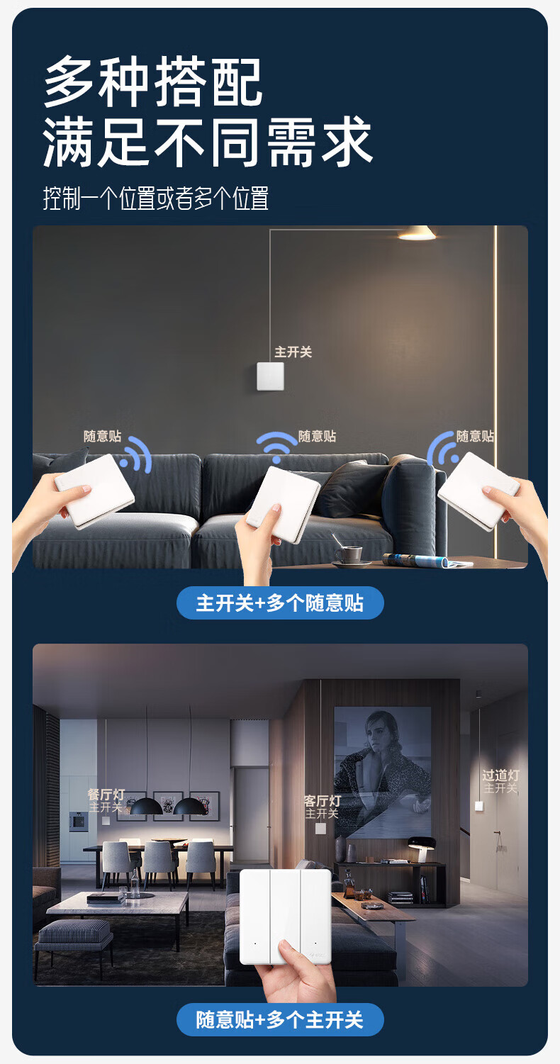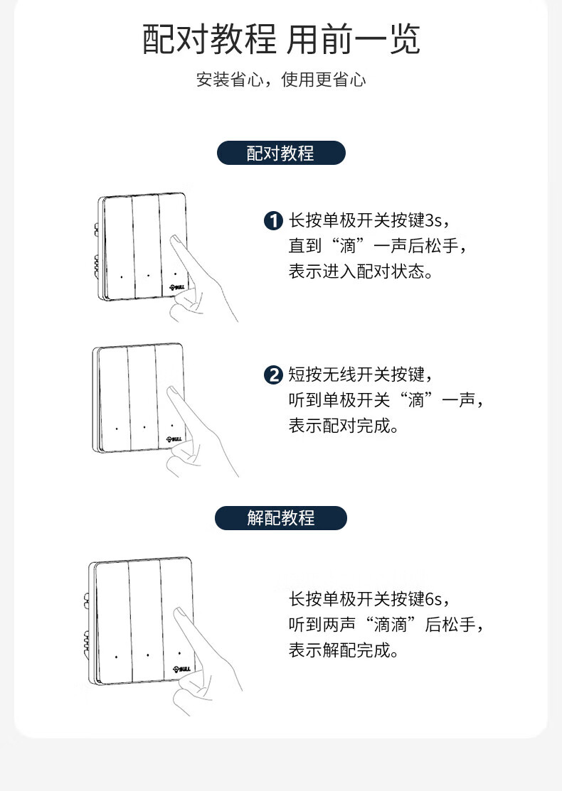 公牛(BULL)无线开关面板免布线 智能无线子母开关 家用远程遥控开关控制器 白色 二开 一拖二【主开关*1 无线开关*2】