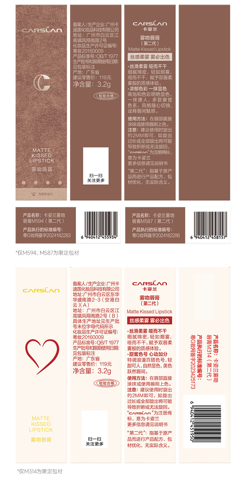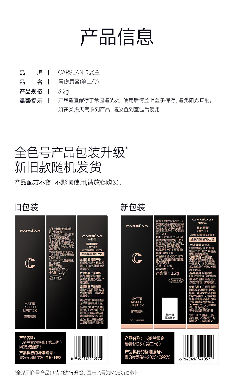 卡姿兰(Carslan)雾吻口红唇膏不易沾杯哑光显白M05(奶油萝卜)3.2g 生日礼物送女生