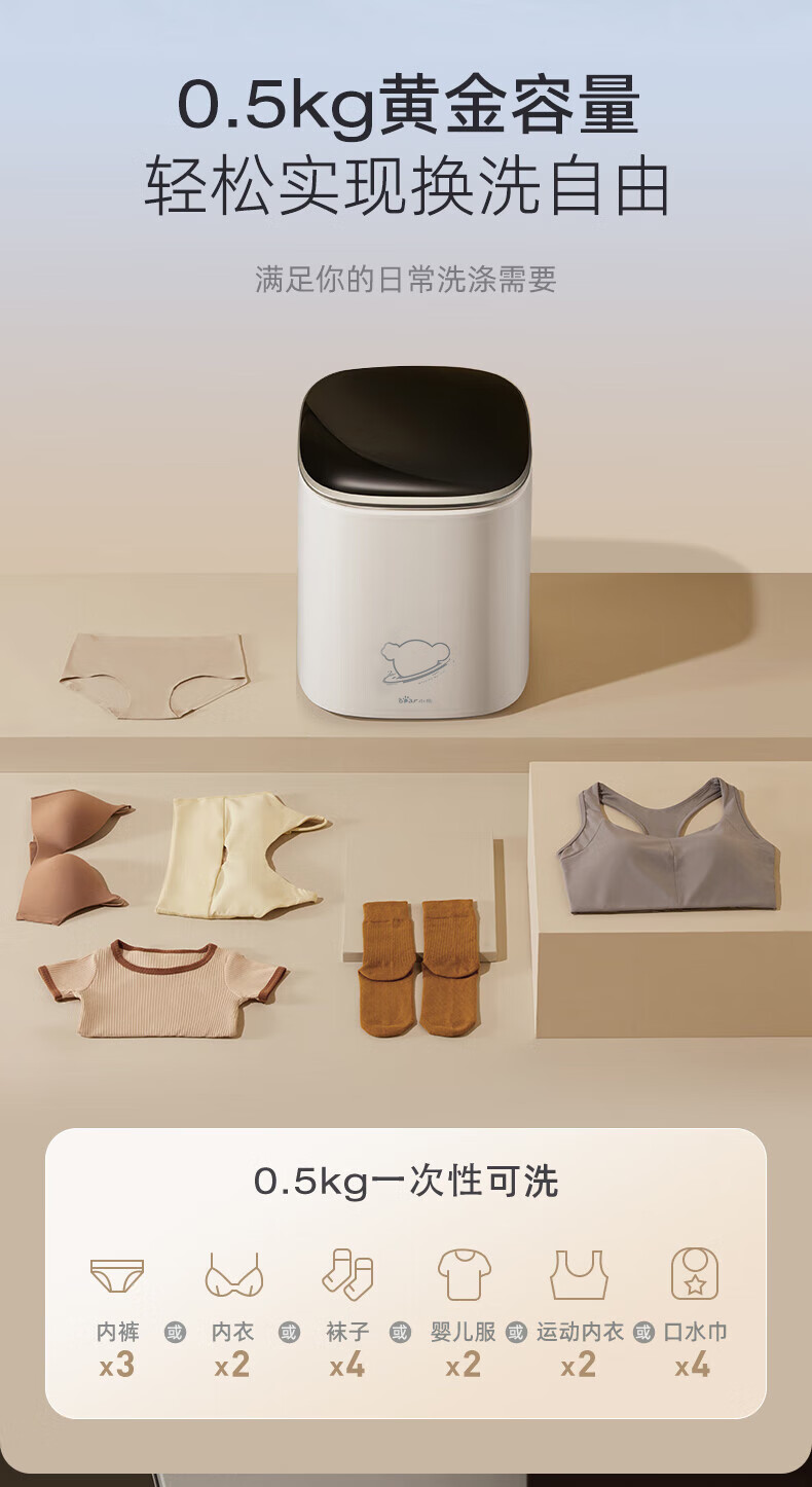 小熊(Bear)迷你洗衣机全自动波轮 家用洗烘一体内衣裤洗衣机 婴儿洗衣机 高温煮洗去血渍 国家补贴 XYJ-S05J1