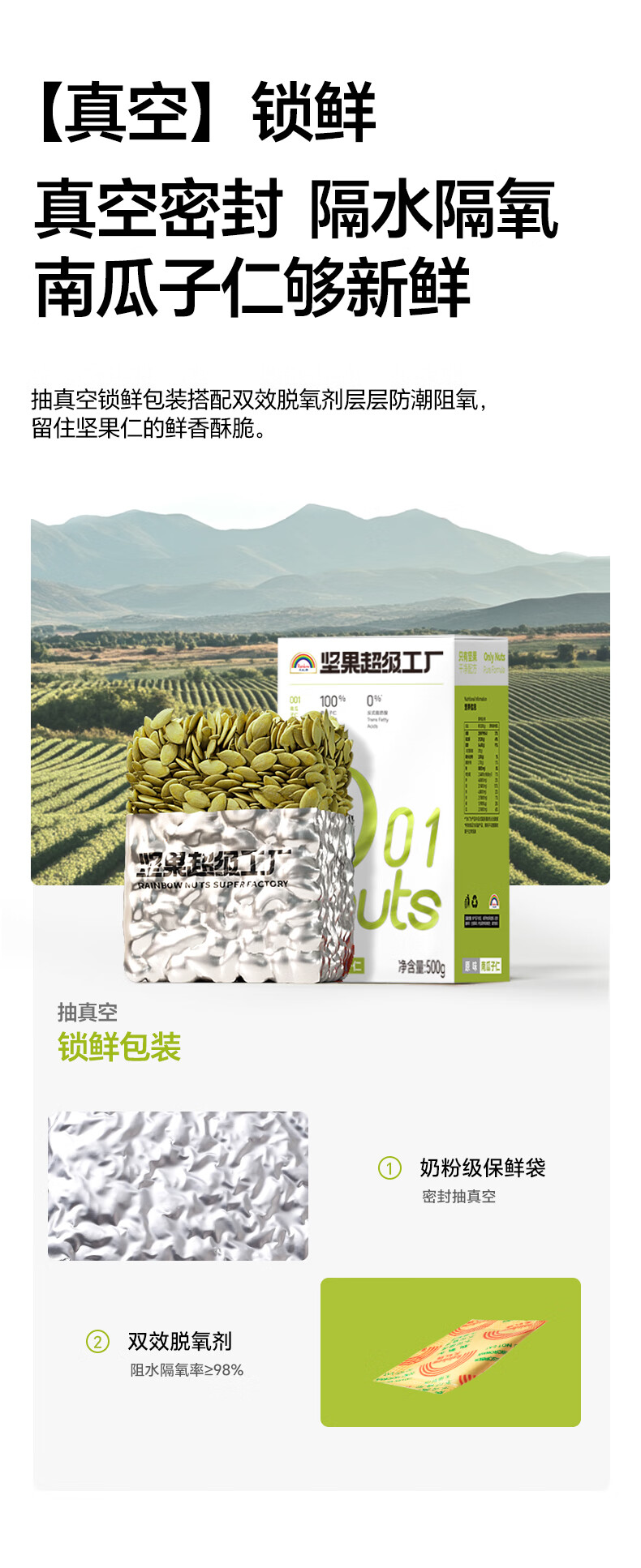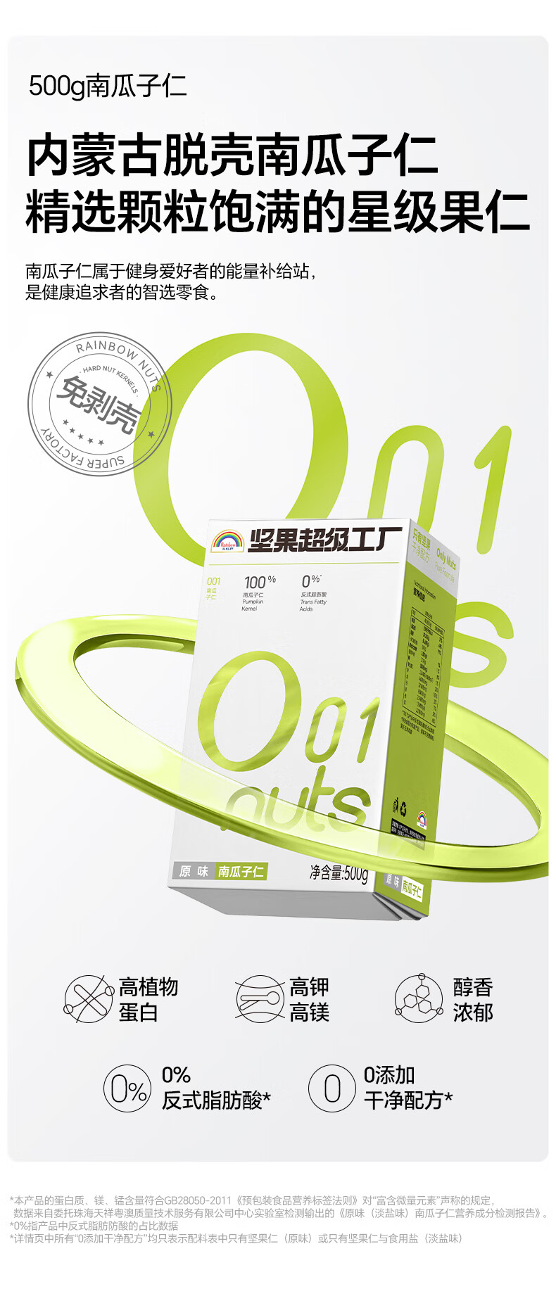 天虹牌南瓜子仁500g真空装内蒙古3A大颗粒籽坚果炒货干果孕妇休闲零食 500g原味3A南瓜子仁