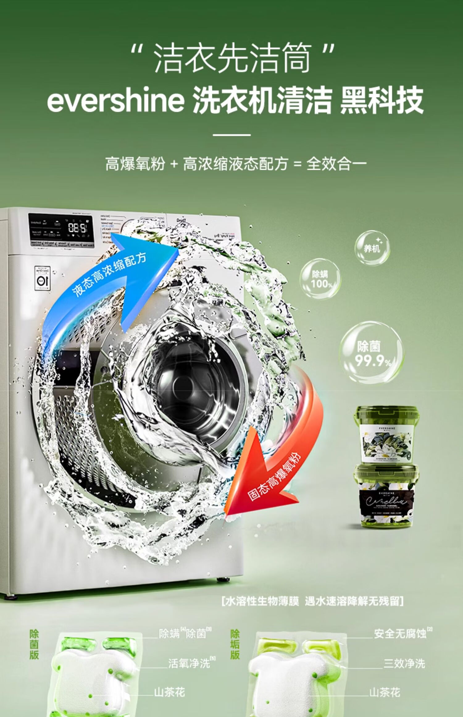 EVERSHINE晴天大白洗衣机清洗剂强力除垢杀菌滚筒洗衣机专用深度清洁剂 【专业洗衣机清洁】除菌版1桶
