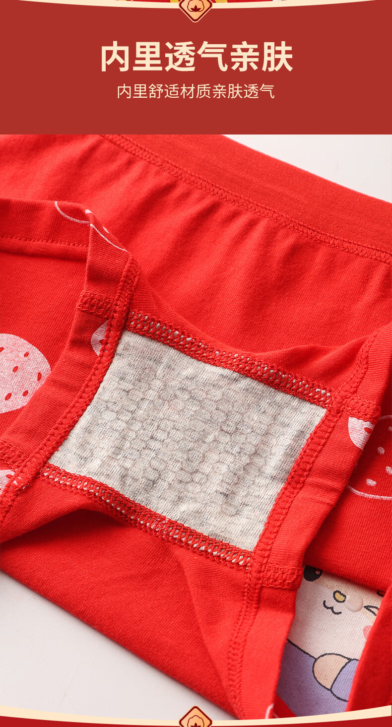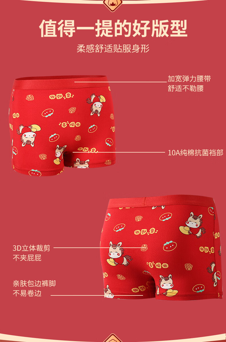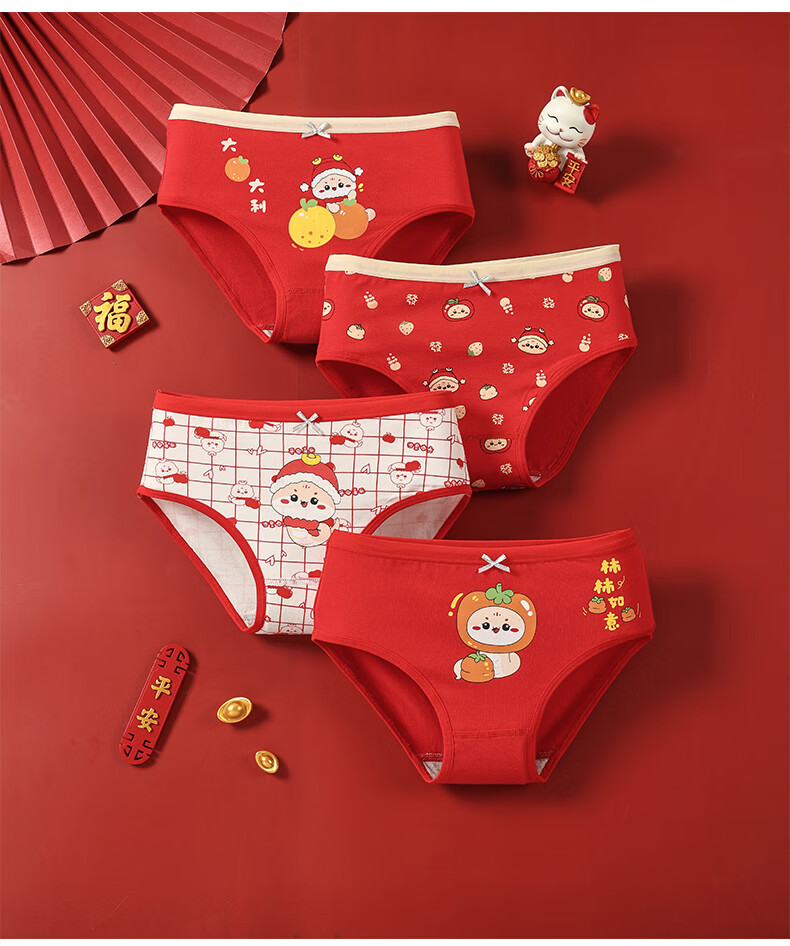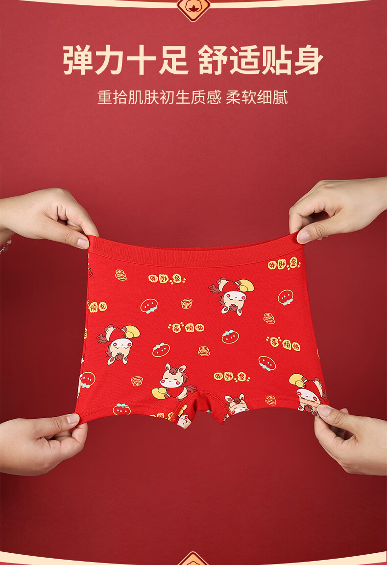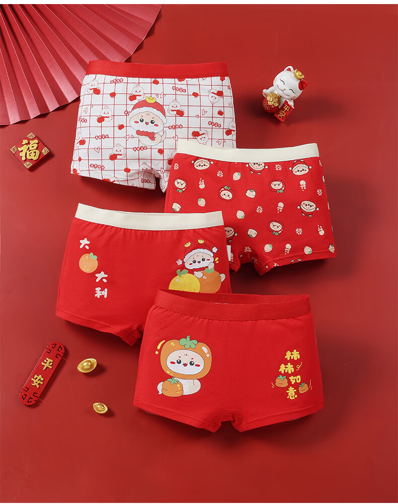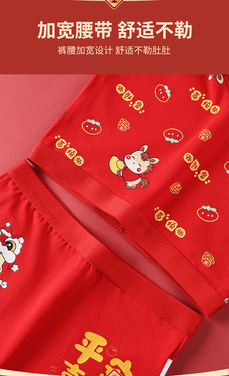 猫人(MiiOW)儿童本命年内裤女童纯棉a类四角女孩马年12岁大红色平角短裤 欢喜小马平角裤 4条 110 推荐高90-105,重20-28斤