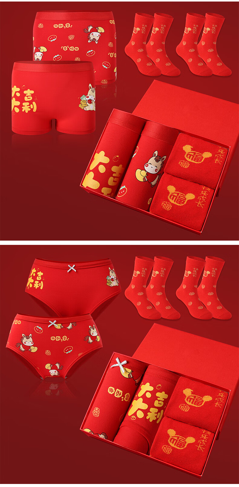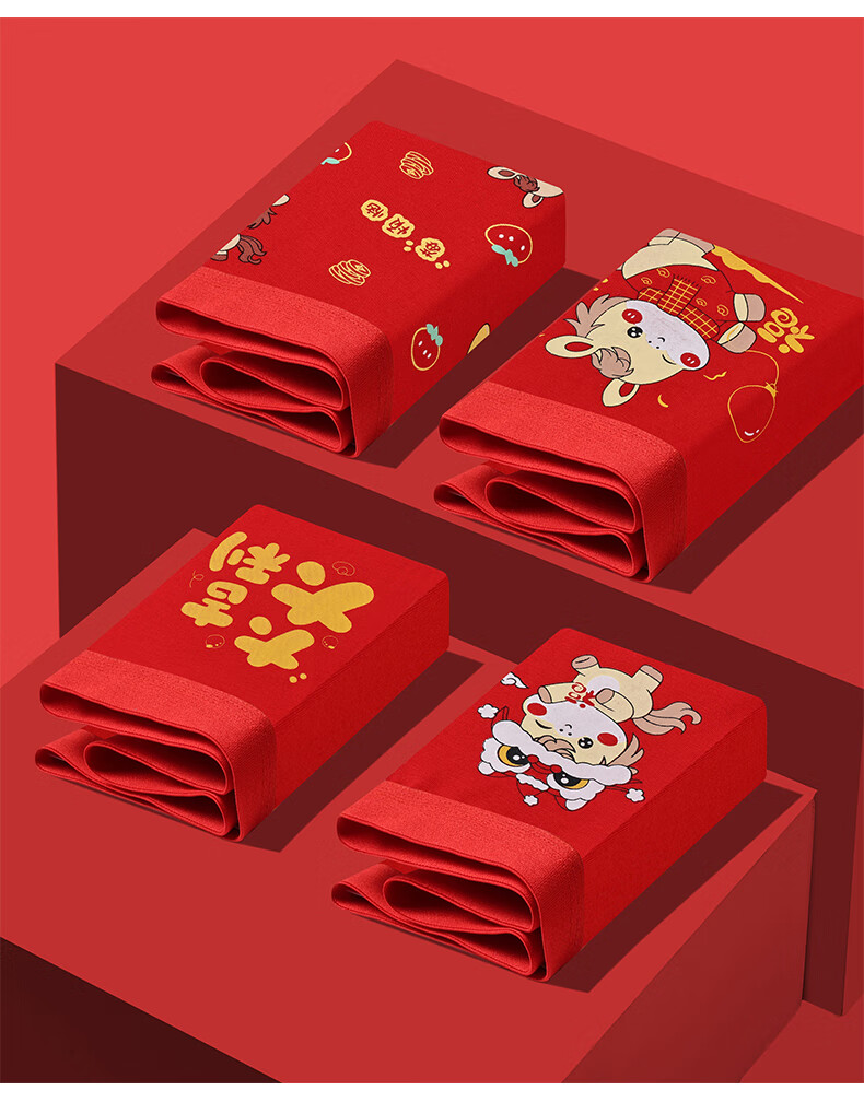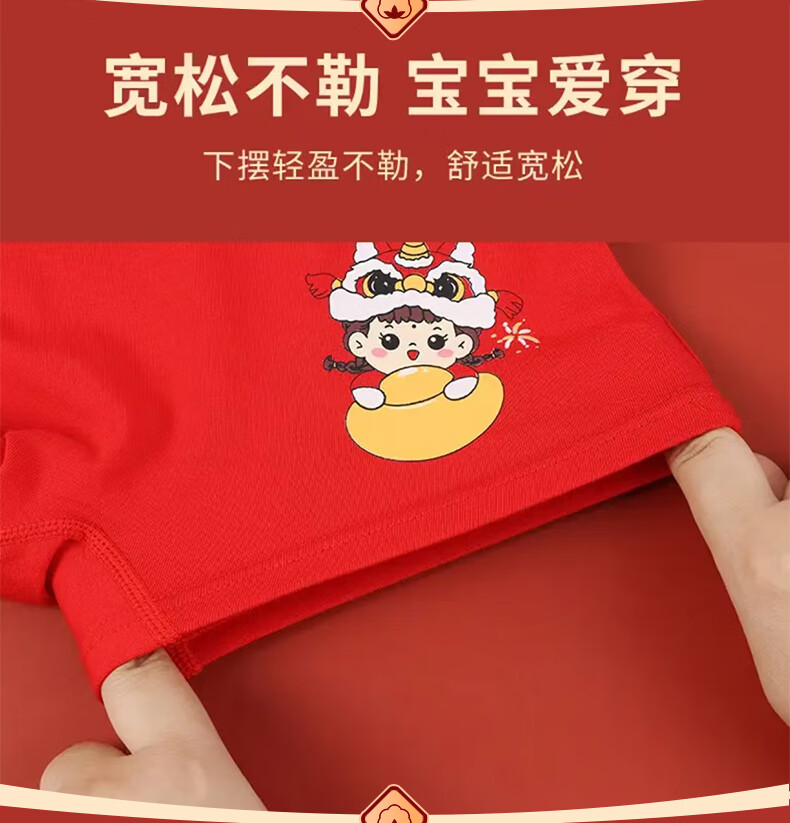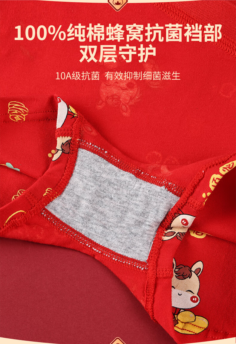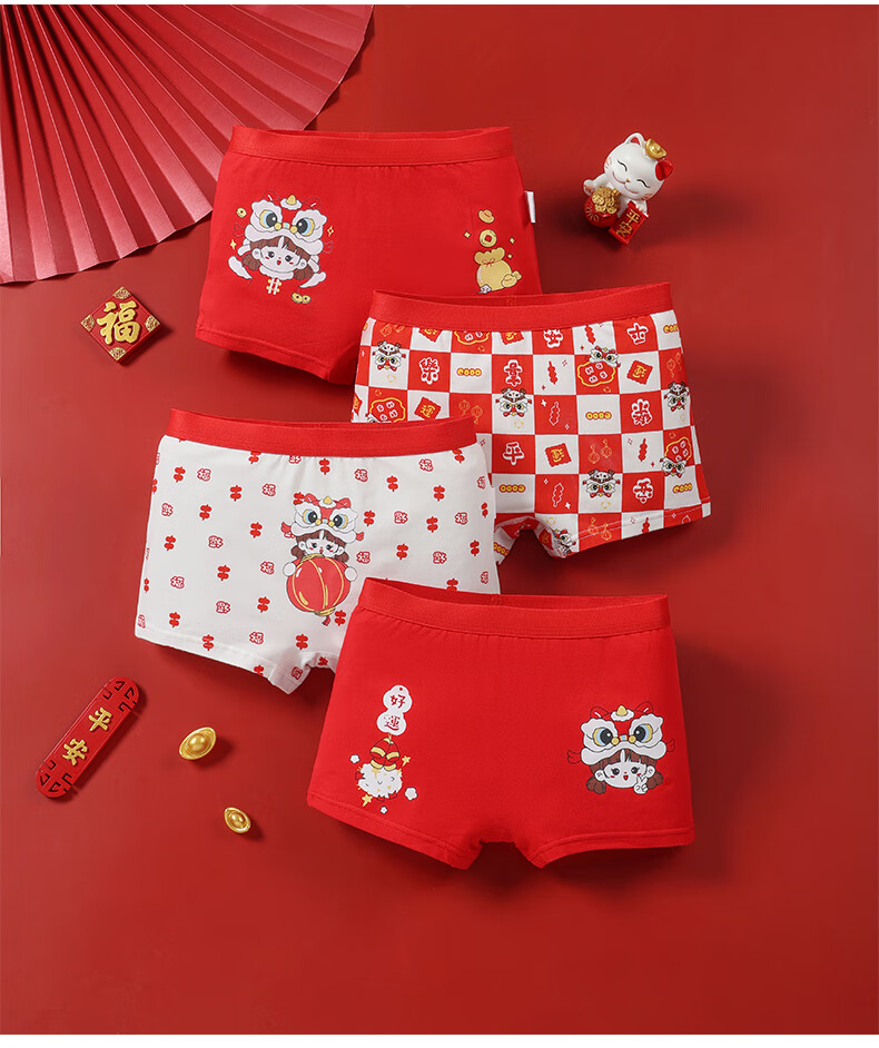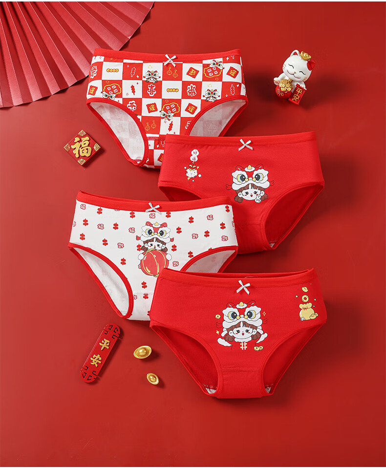 猫人(MiiOW)儿童本命年内裤女童纯棉a类四角女孩马年12岁大红色平角短裤 欢喜小马平角裤 4条 110 推荐高90-105,重20-28斤