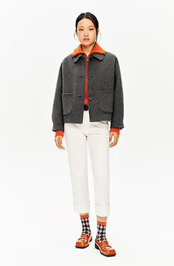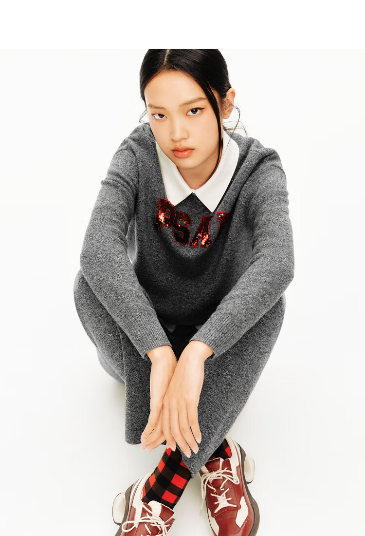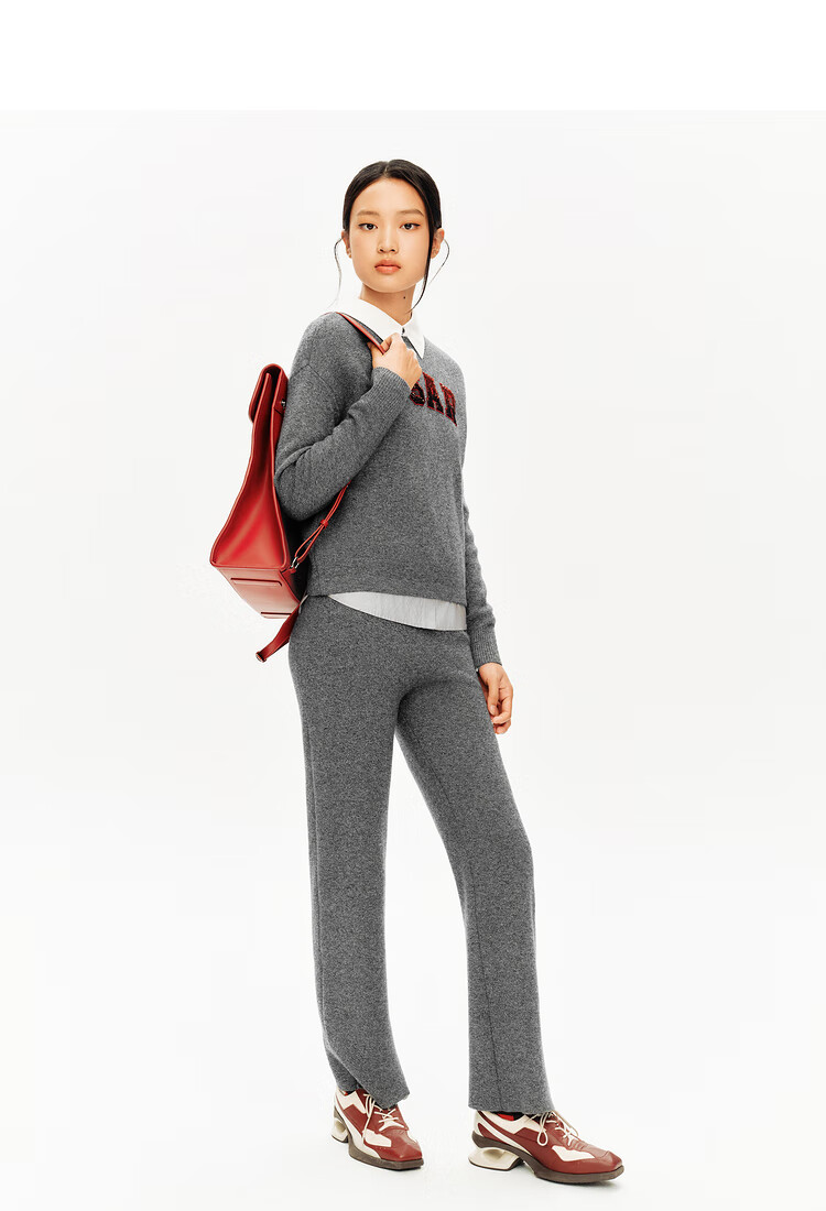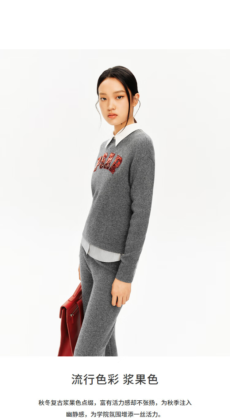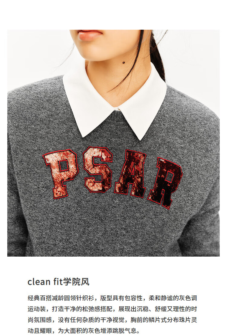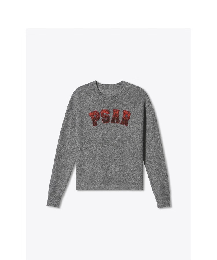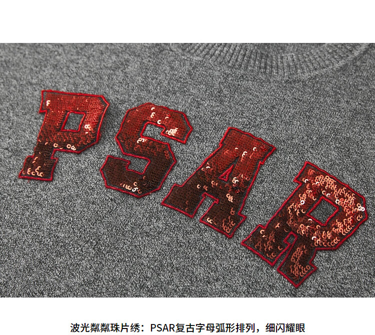 PSALTER诗篇冬季光感绵羊毛学院字母珠片绣花毛衣毛针织衫 烟灰 L 40