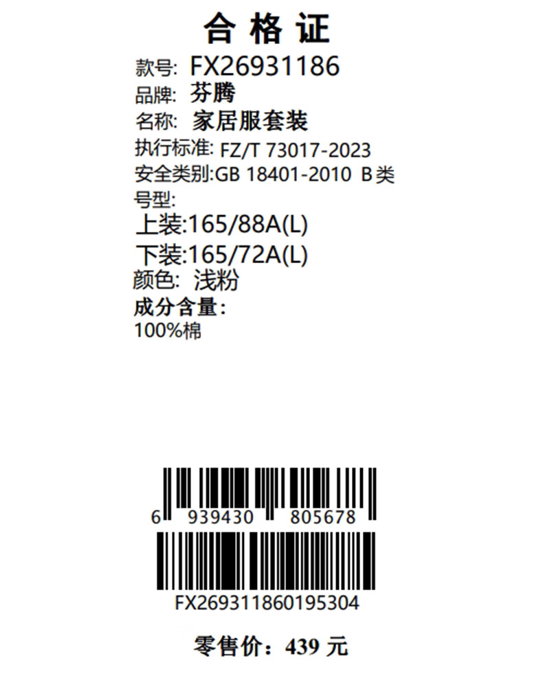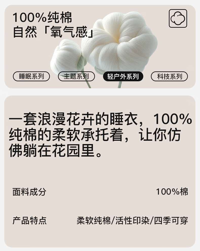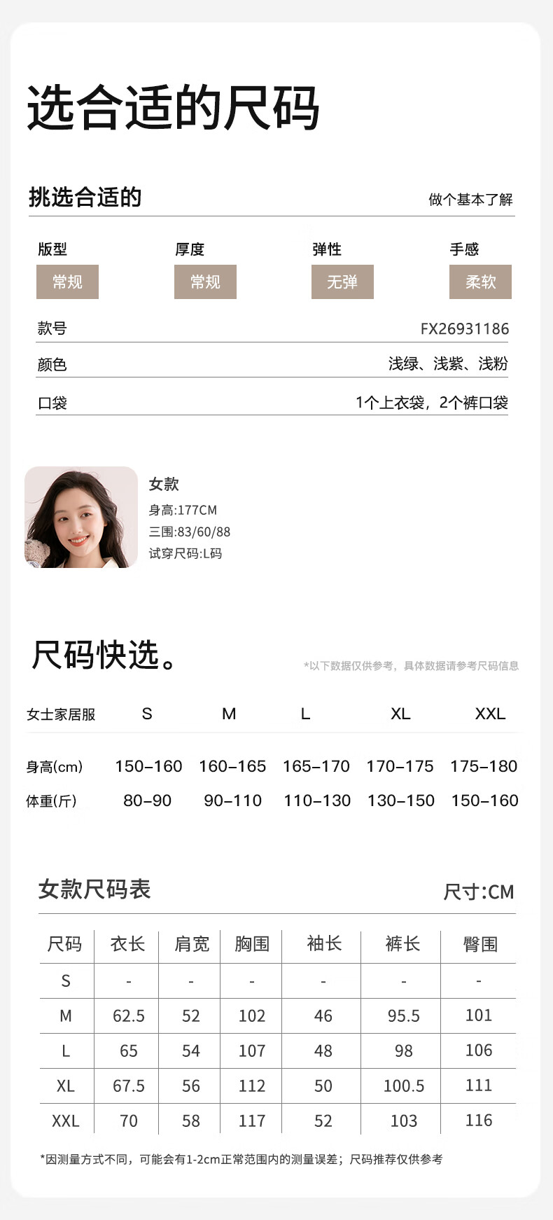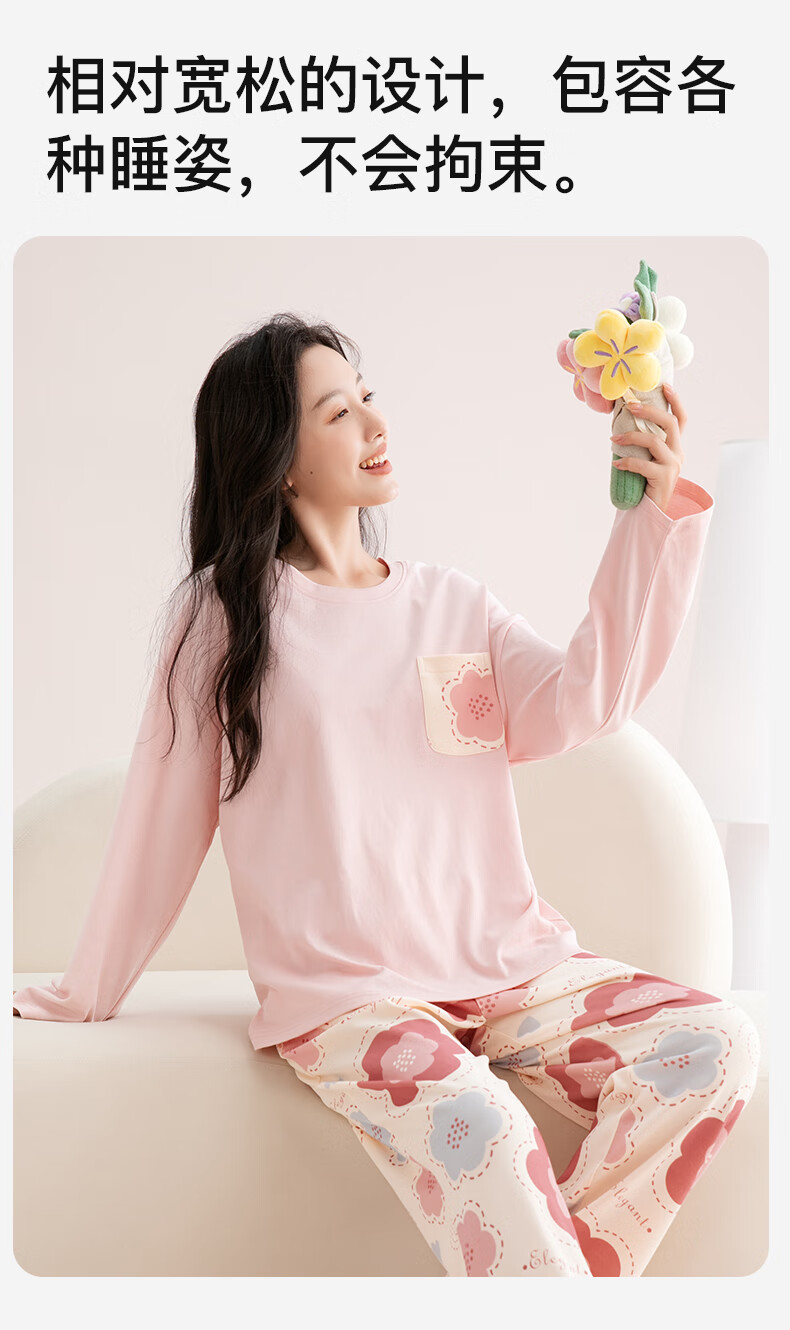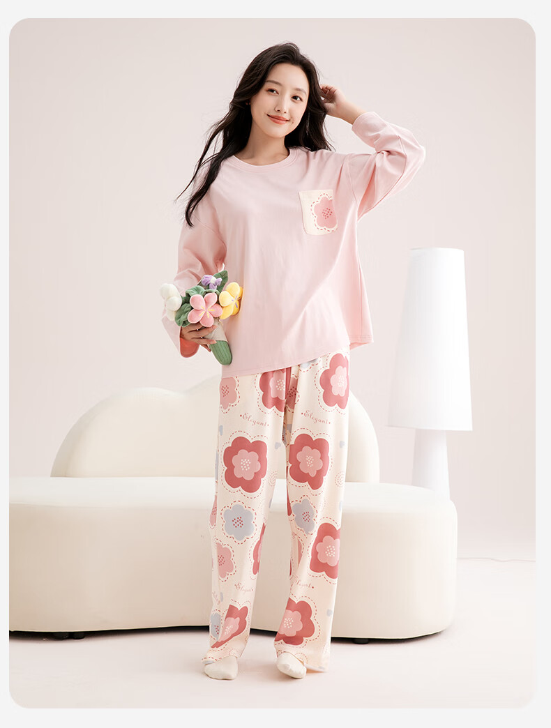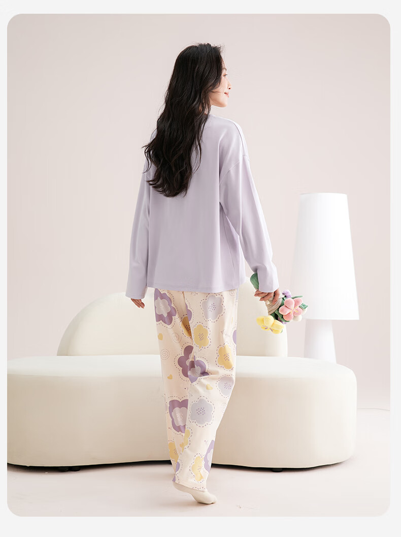 芬腾睡衣女100%纯棉2025秋新款亲肤圆领长袖花卉休闲家居服套装可外穿 浅绿 L