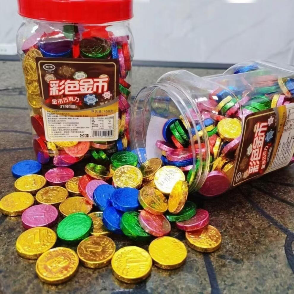 特价小彩币巧克力五彩小金币罐装儿童零食糖果年货婚庆批发桶装 彩色金币一桶约200粒