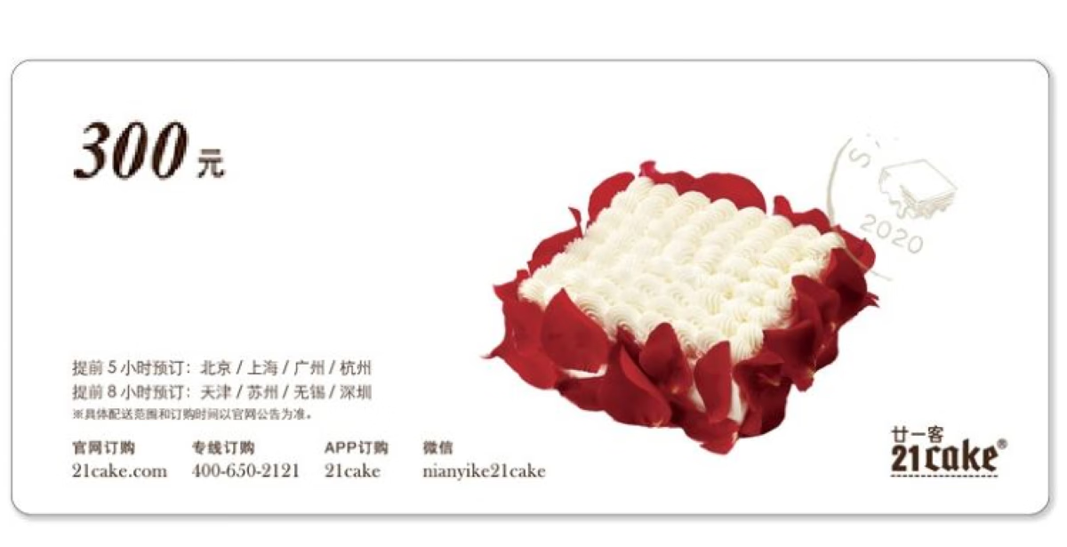 21cake生日蛋糕同城配送北京上海广州深圳杭州苏州无锡天津生日电子卡券 300元电子卡(非实物)