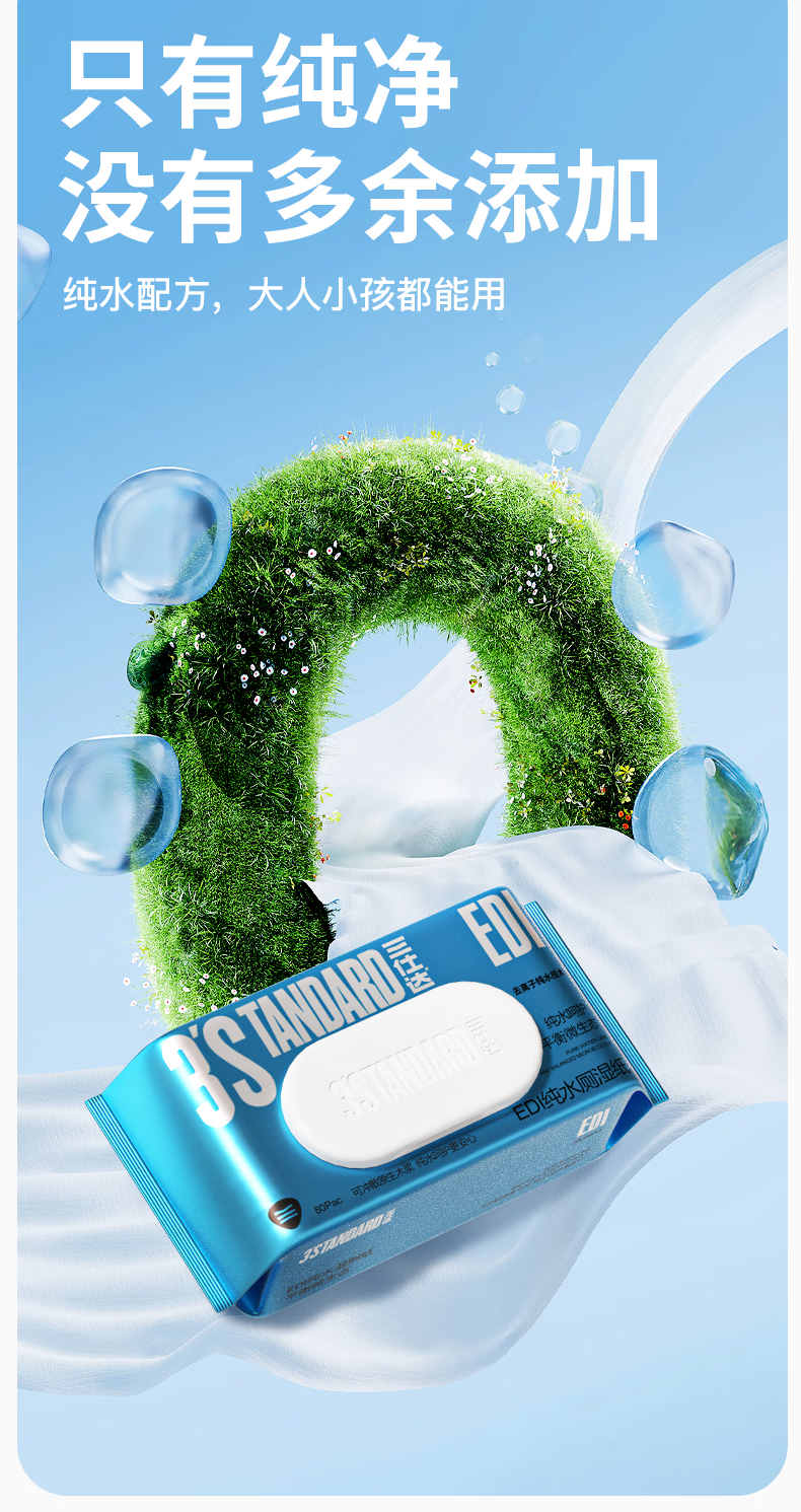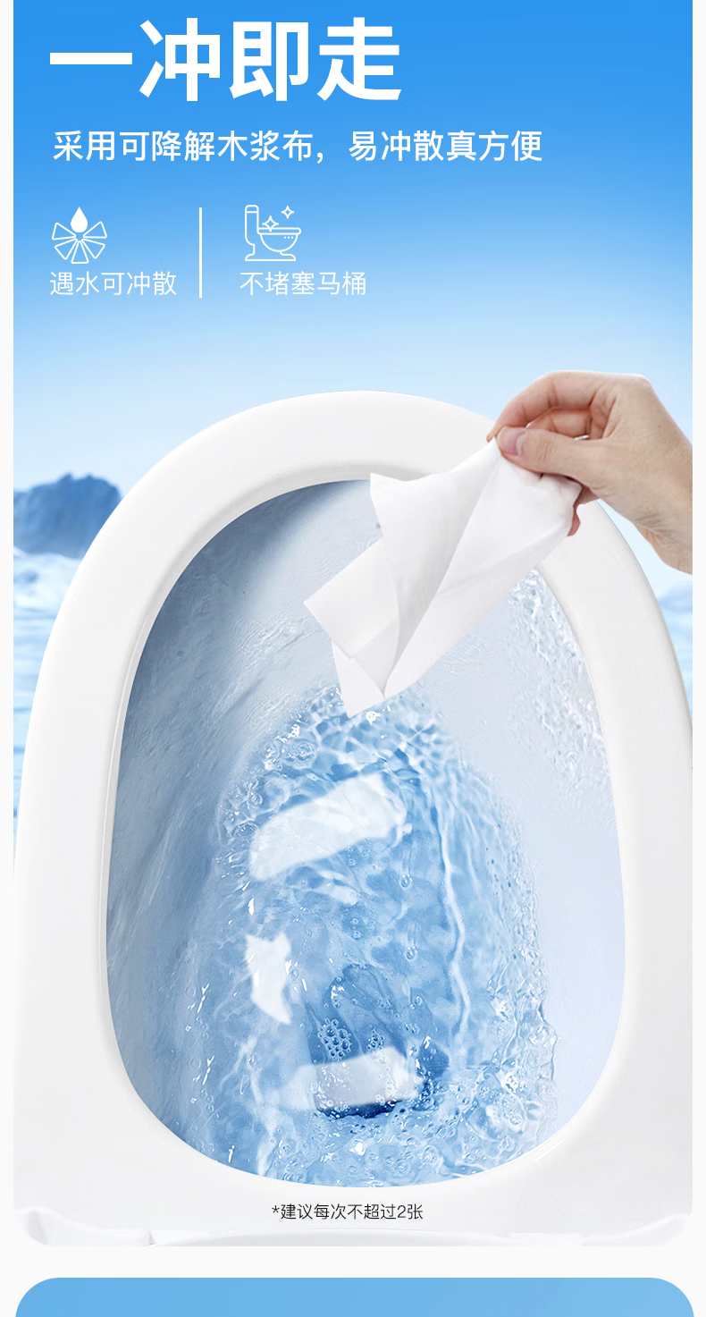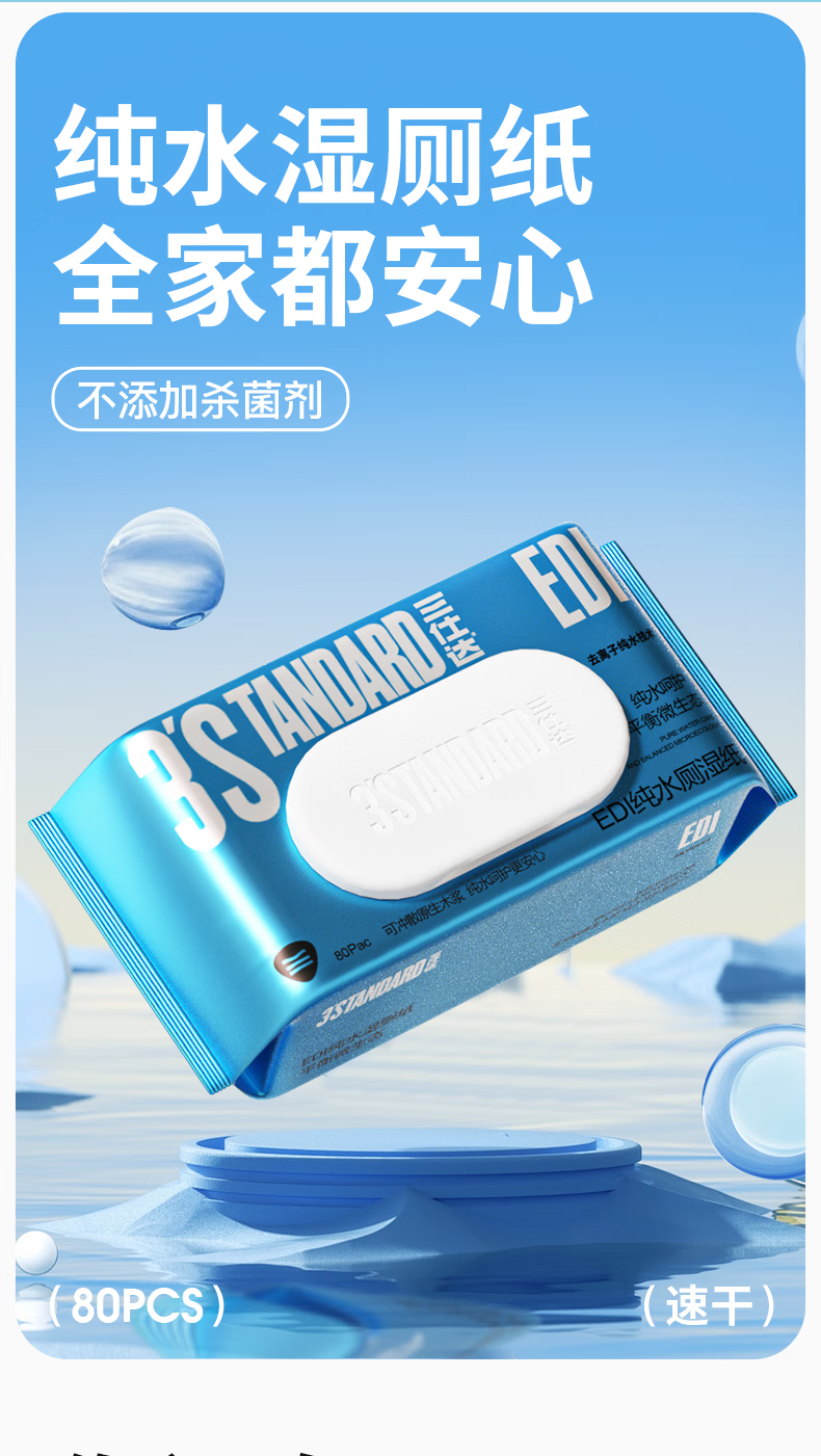 雅思汀娜湿厕纸EDI纯水佛手柑精华温和洁净可冲马桶家庭必备 80抽*3包 【莱赛尔纤维】