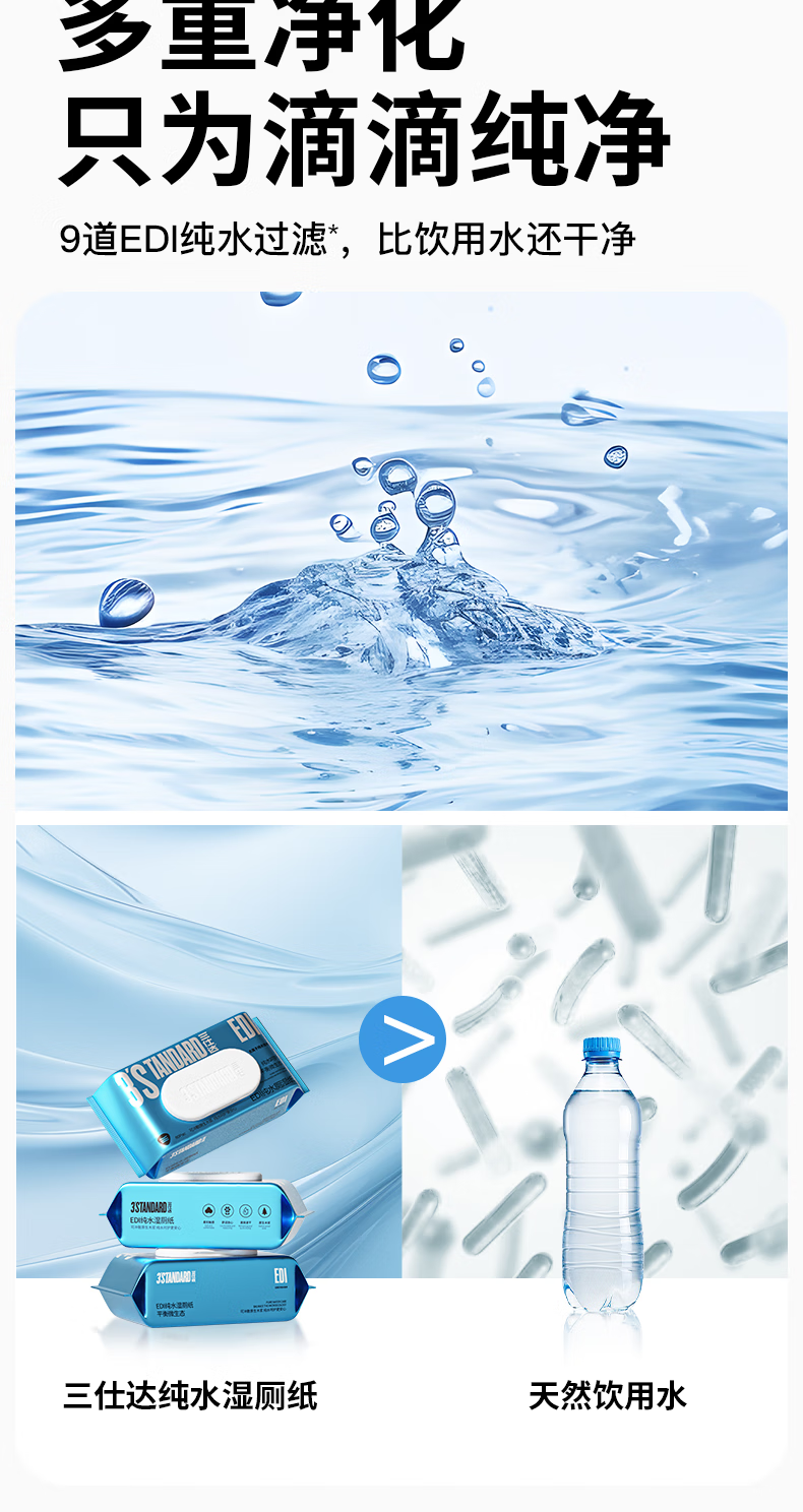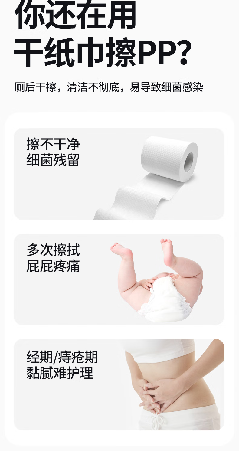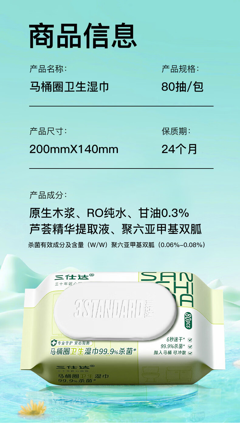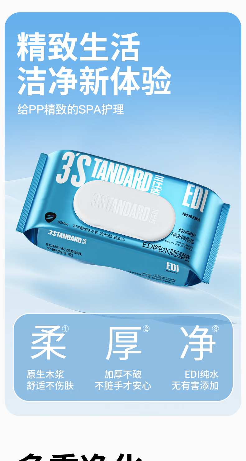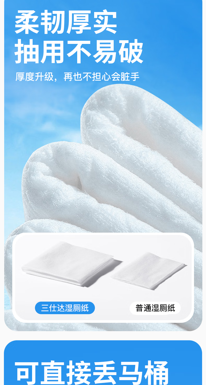 三仕达纯水湿厕纸80片翻盖大包男女士擦屁股家庭实惠装洁厕湿巾经期厕纸 【可丢马桶不堵塞】 80片*3包