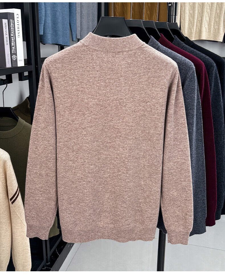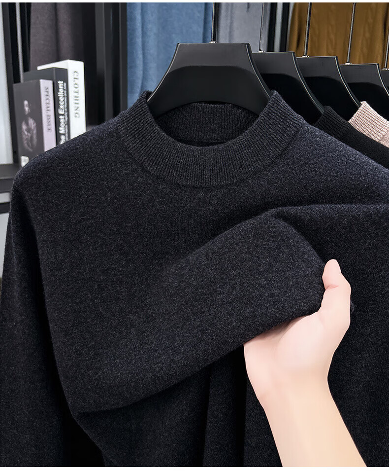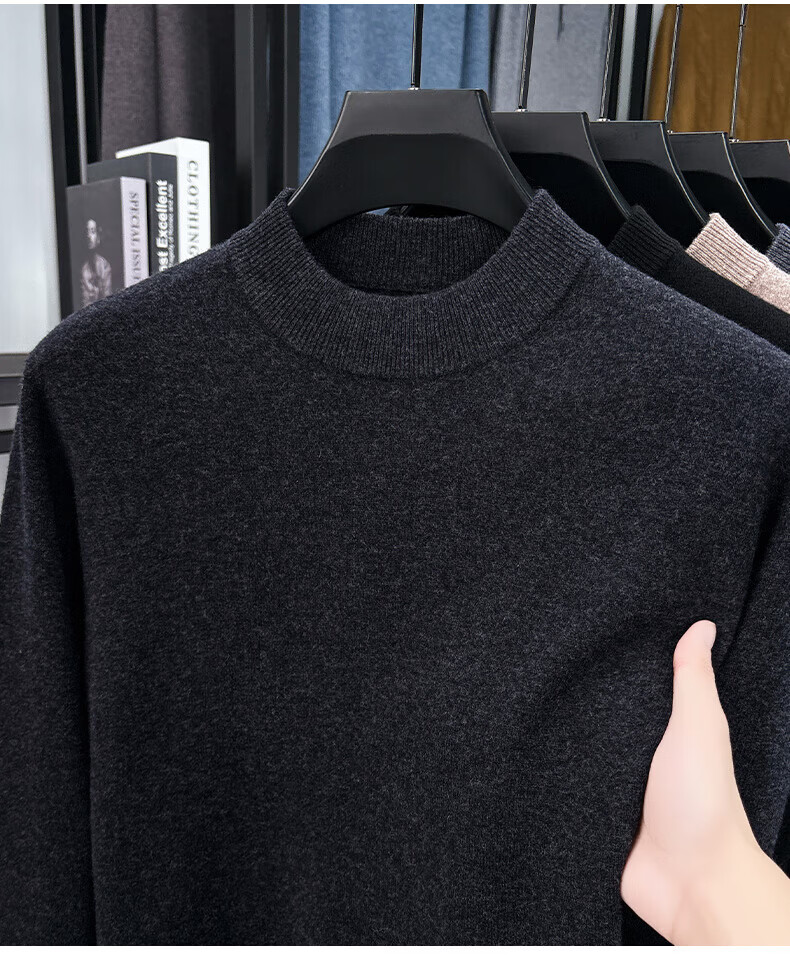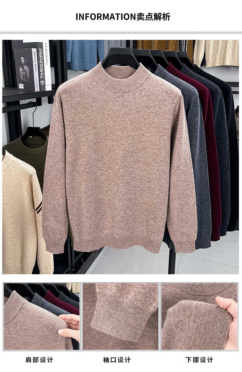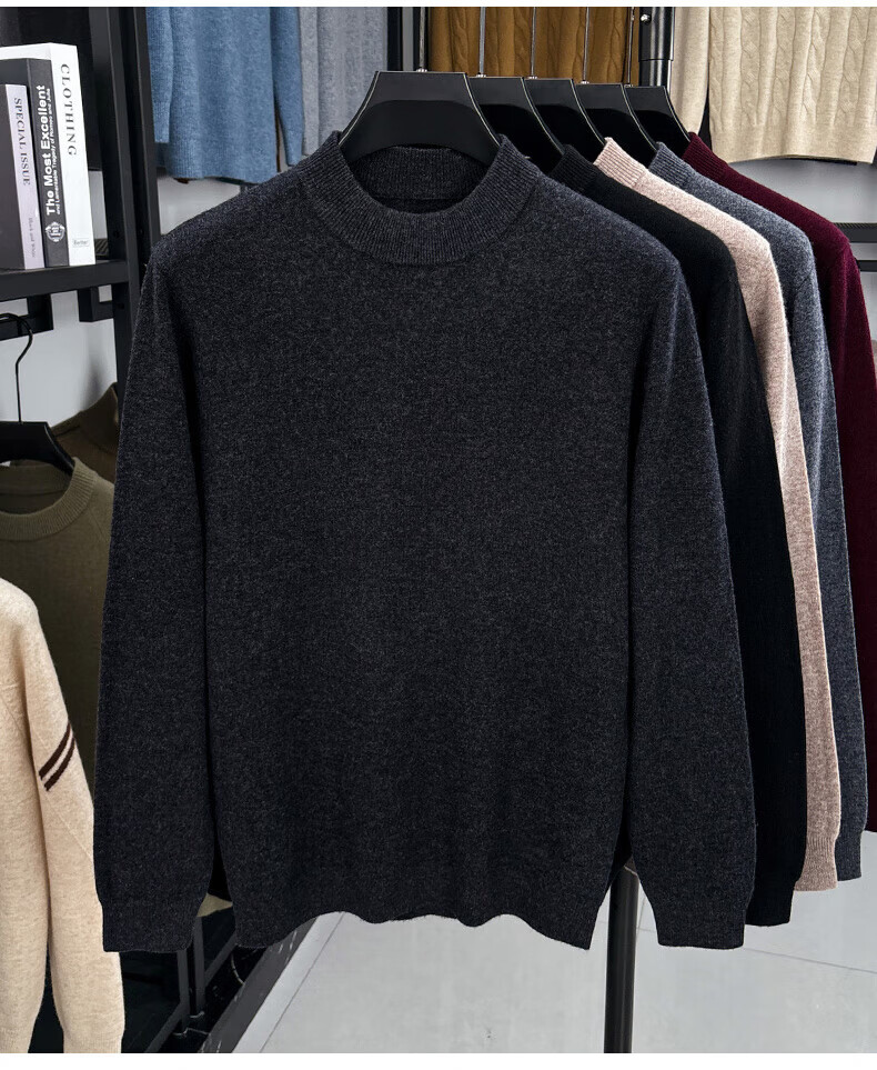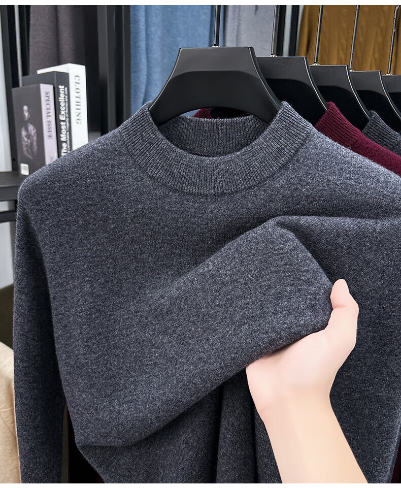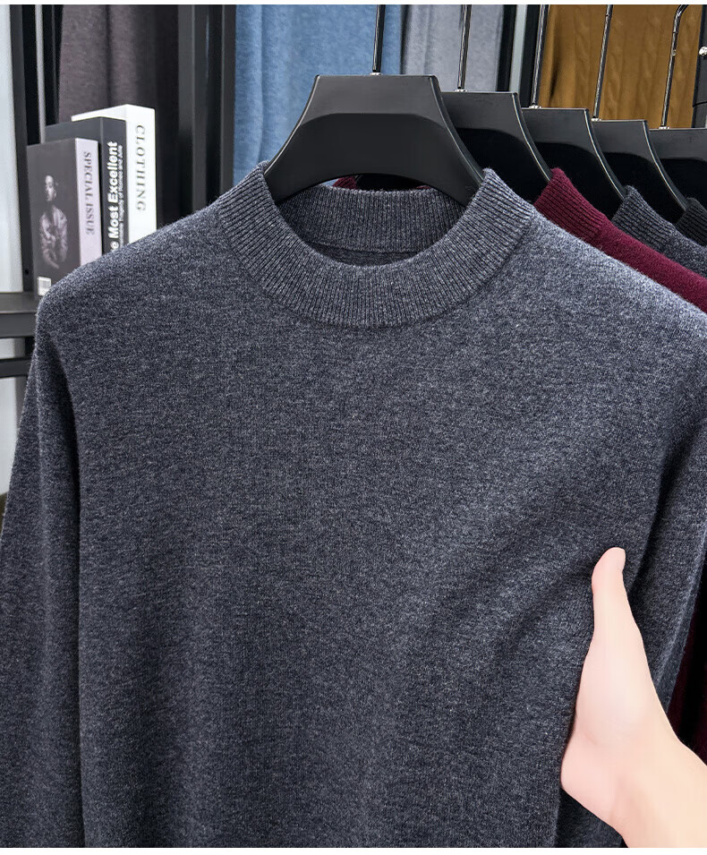 罗蒙圆领100%纯羊毛衫男冬季新款中青年纯色百搭打底针织衫保暖毛衣 浅灰 XL (175) 【建议130-150斤】